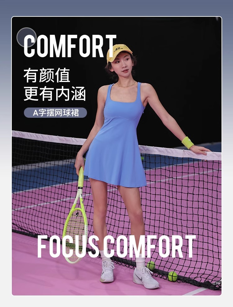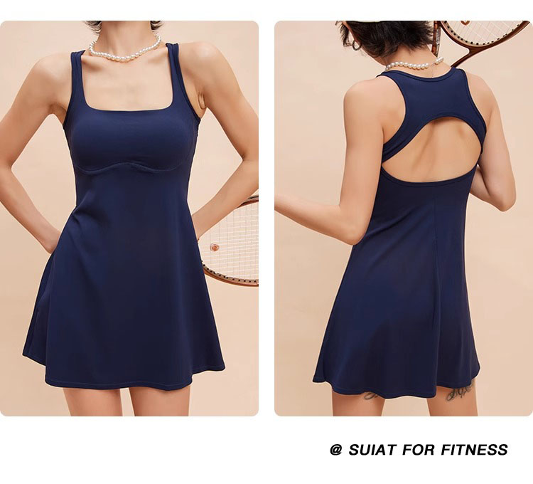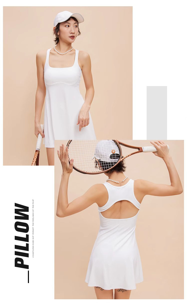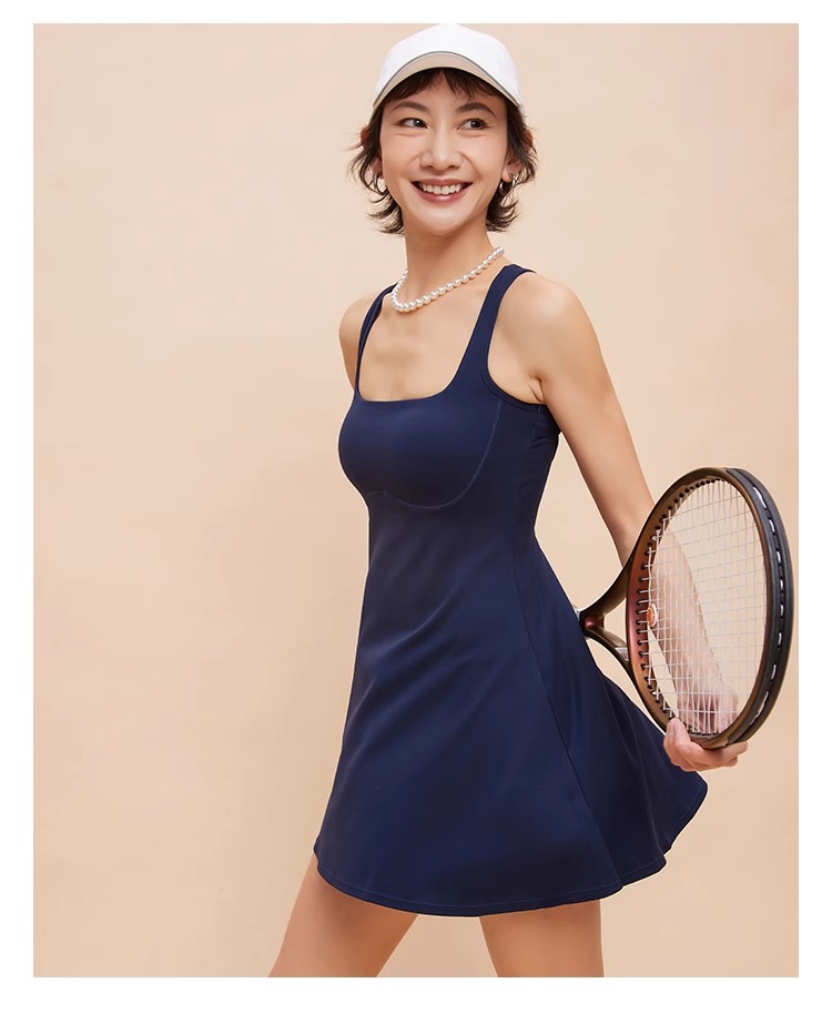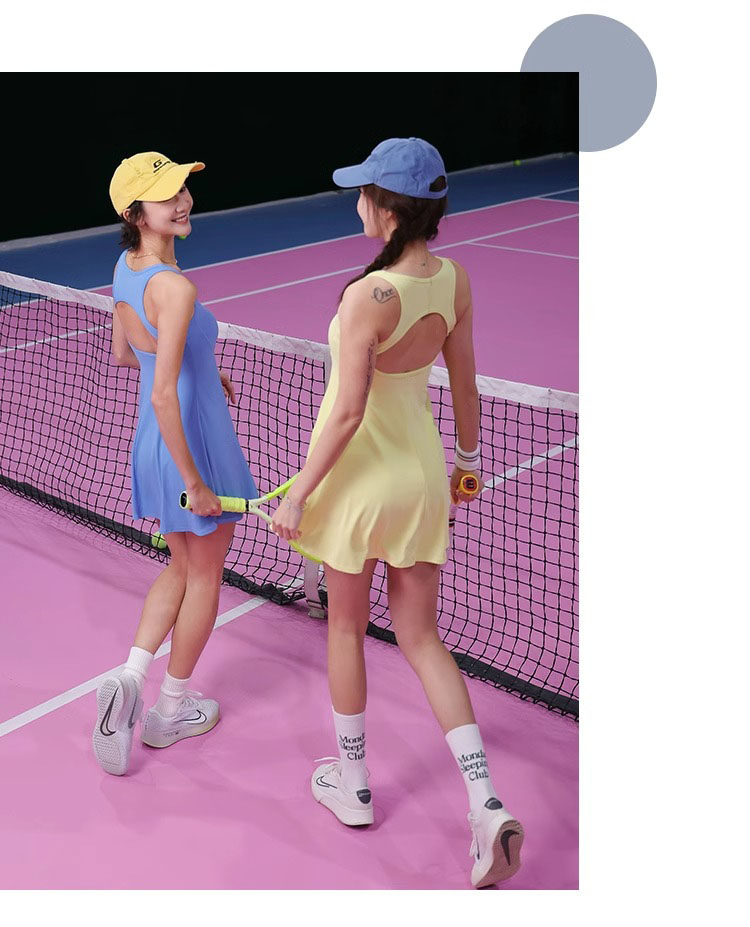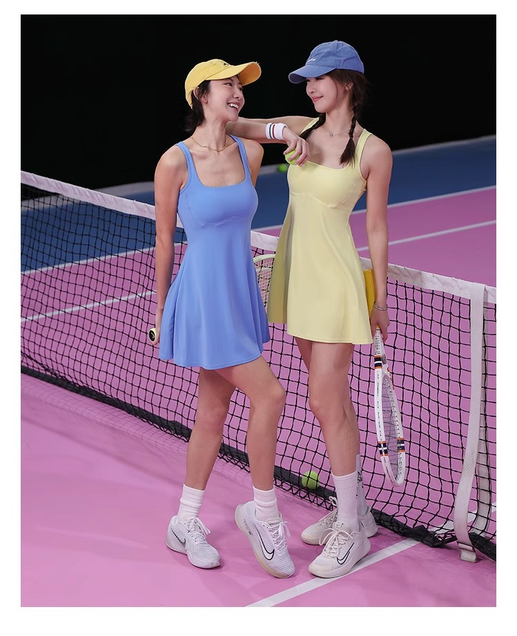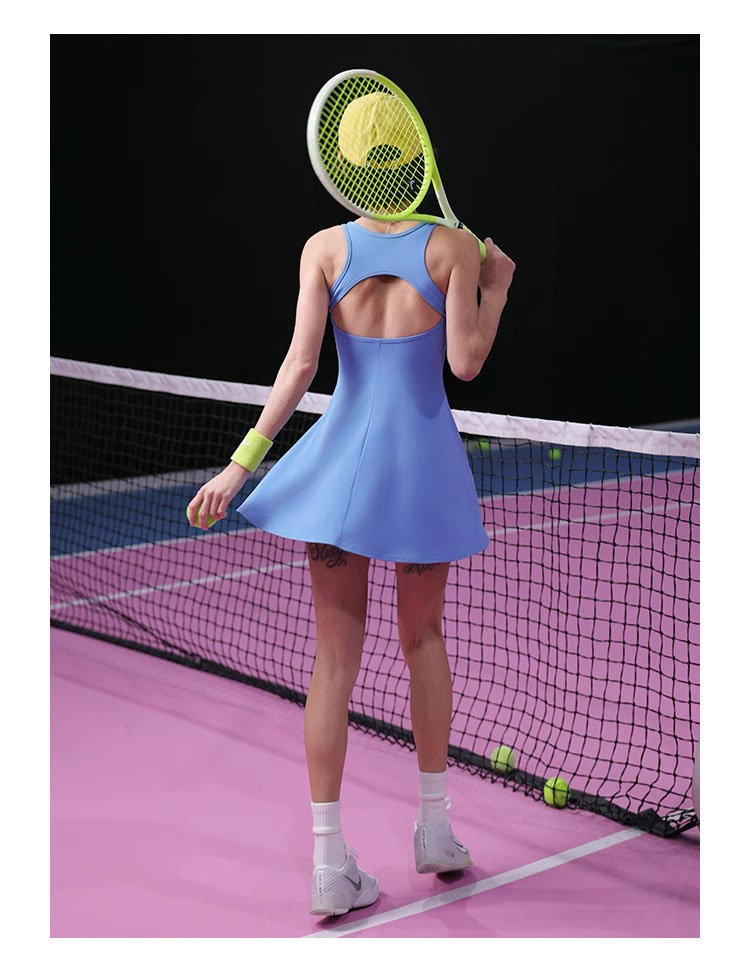 跃牌【禅语梵心】两件套裸感运动连衣裙美背防走光打底裤户外跑步健身网球裙YLT5176