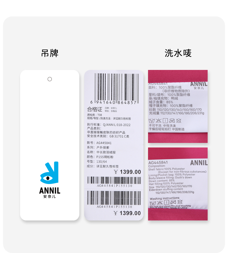 【极寒-15~-5℃】女童户外滑雪中长款羽绒外套冬季新款安奈儿童装实体店同款AG445841