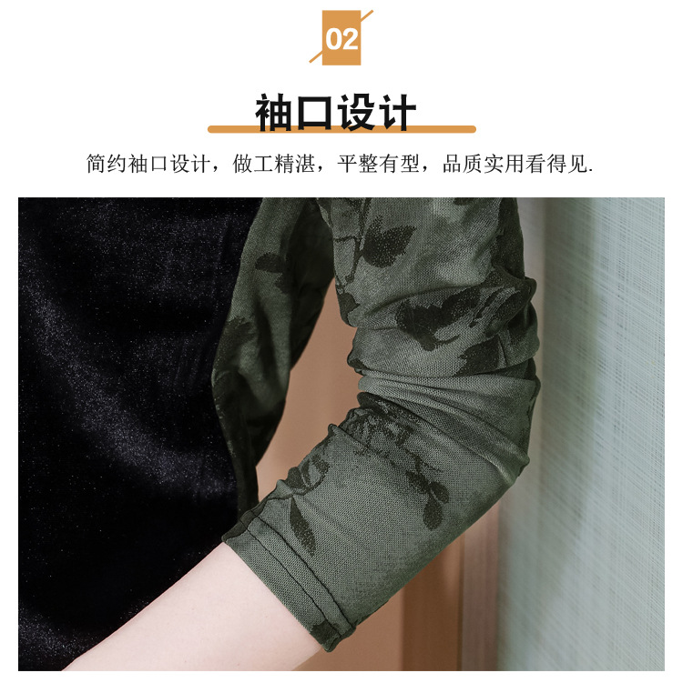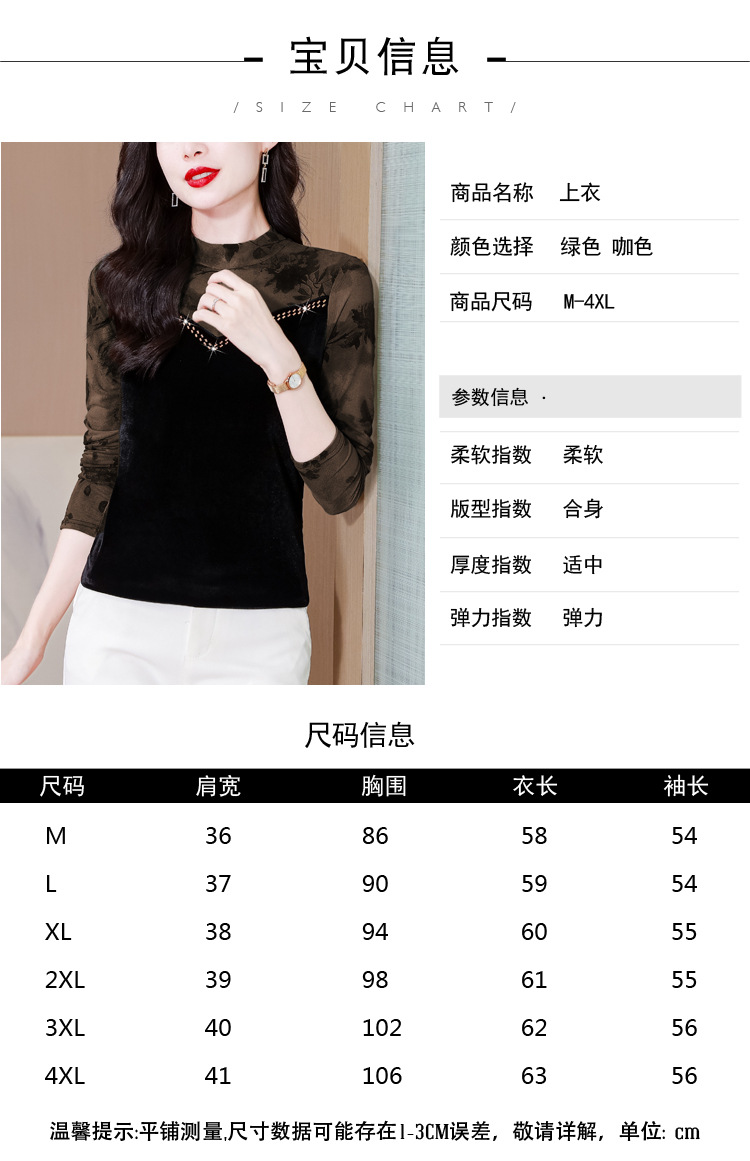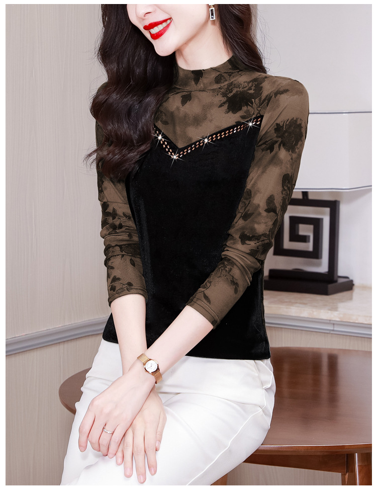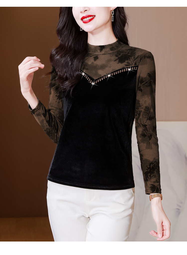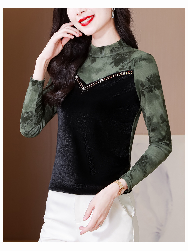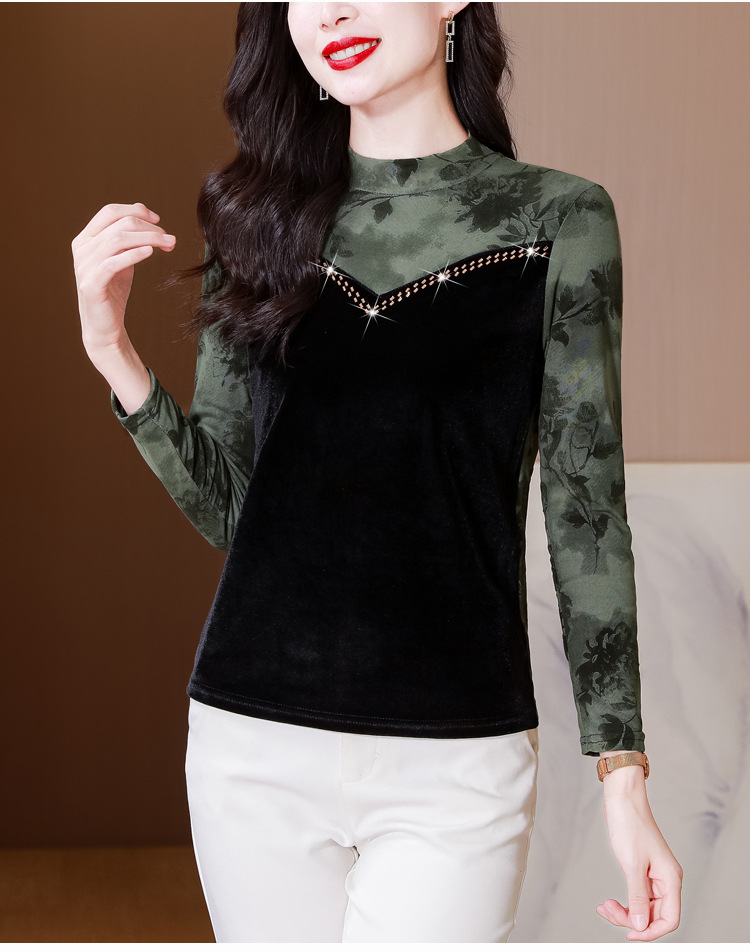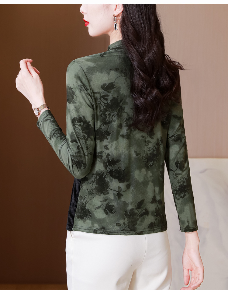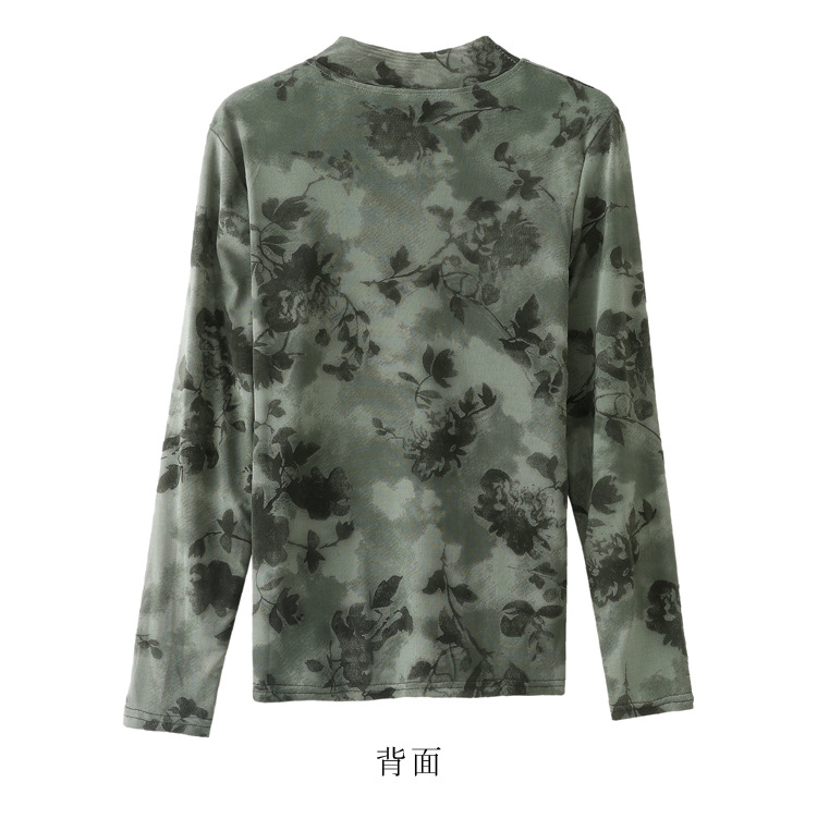 雀说印花水溶针织拼接丝绒打底衫新款时尚洋气半高领减龄上衣AL299