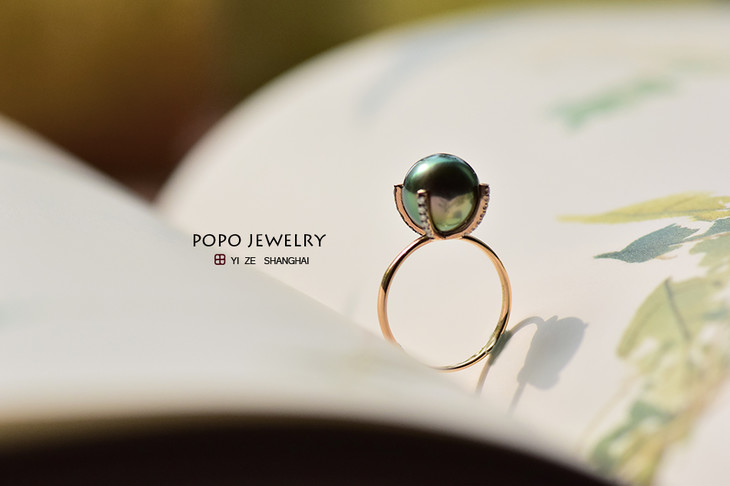 18K玫瑰金黑珍珠戒指