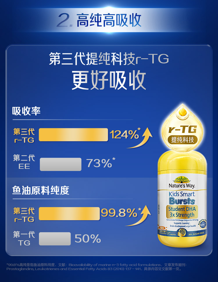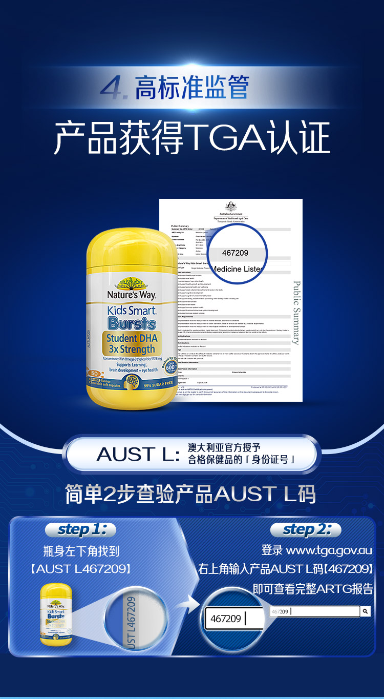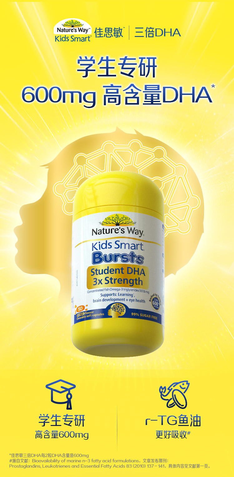 3-17岁 DHA爆浆丸 | Nature's Way佳思敏 三倍增强DHA鱼油胶囊 50粒(28年4月)