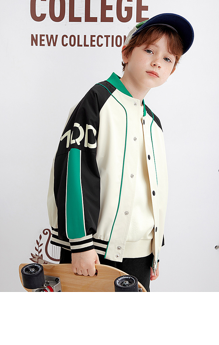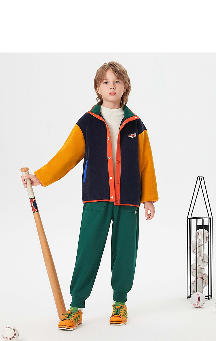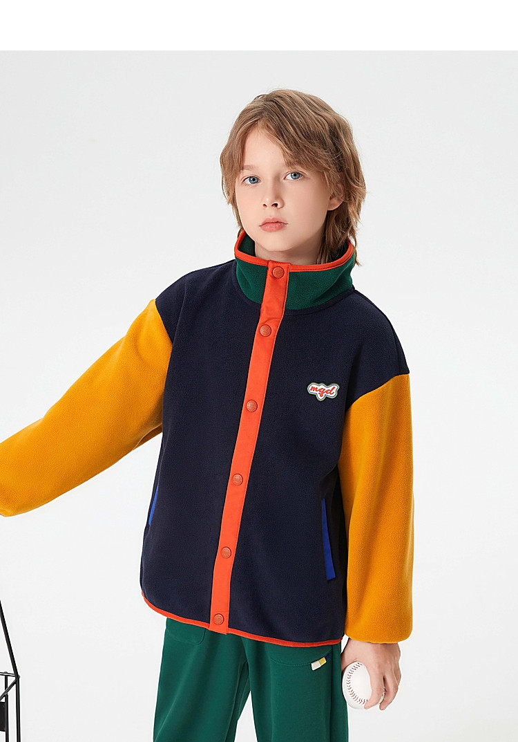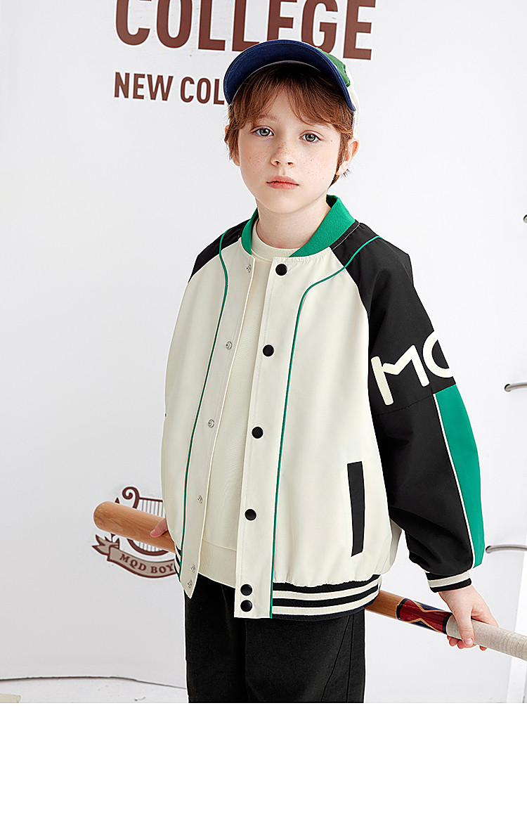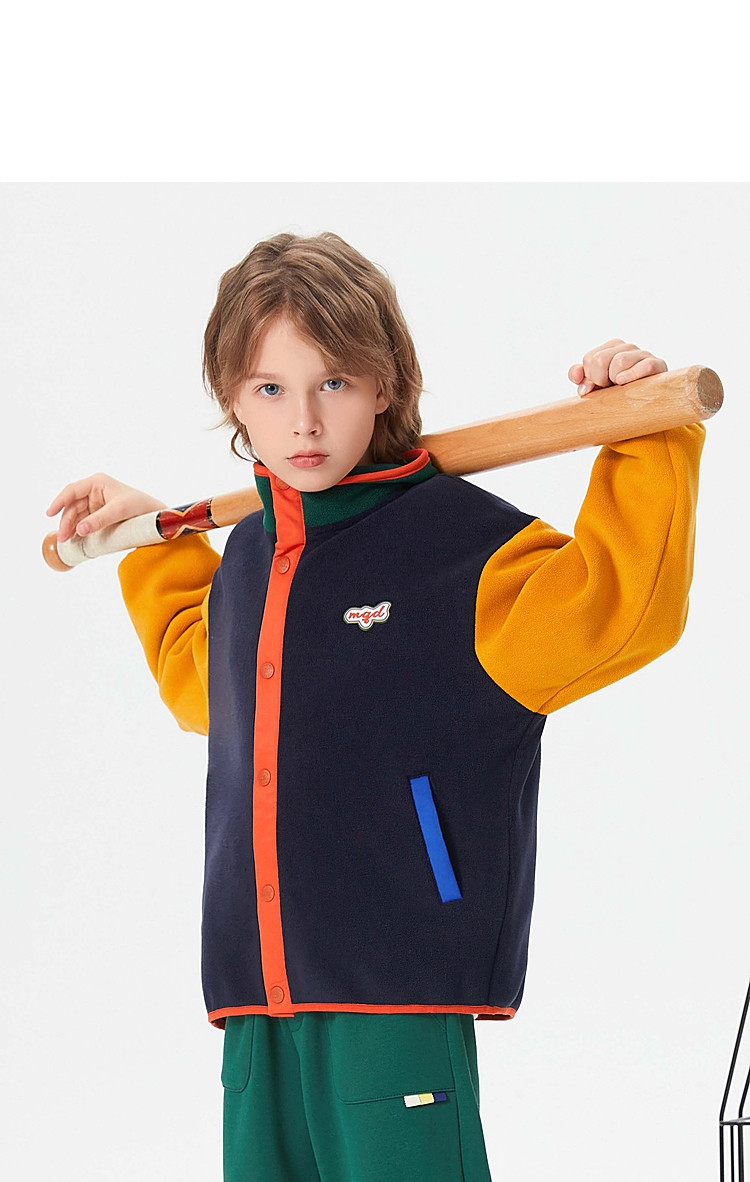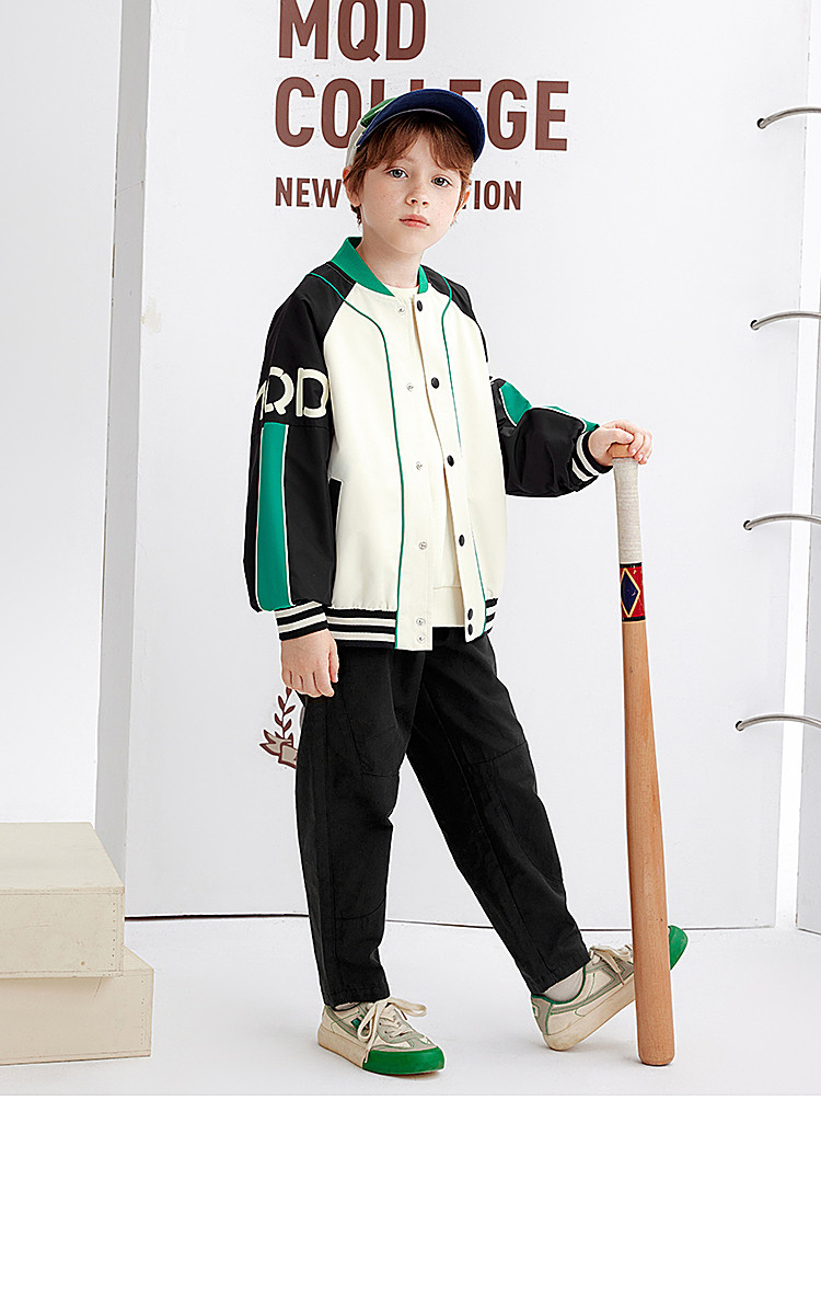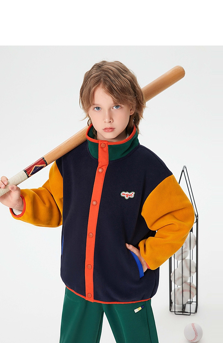 【MQD】童装男童外套学院风运动时尚拼接儿童棒球服摇粒绒