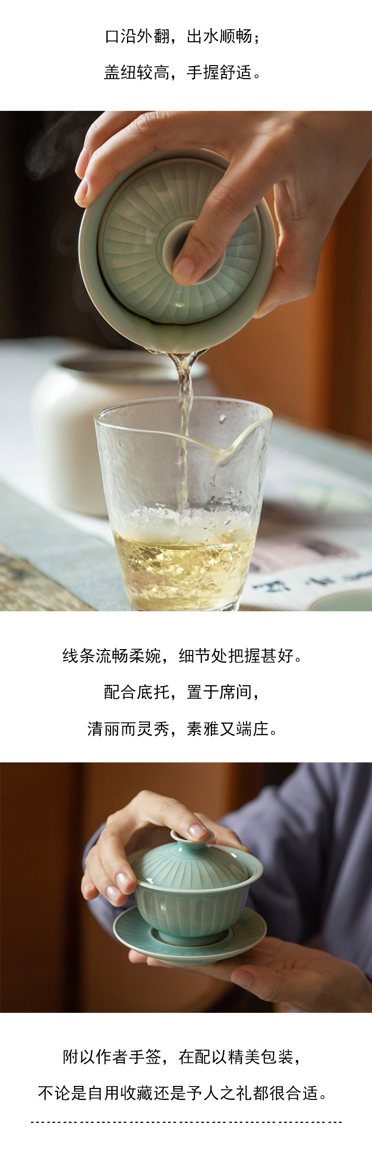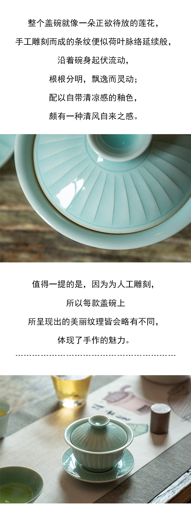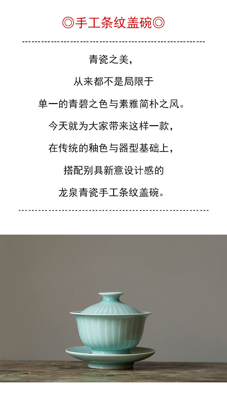 茶香记 手工条纹盖碗 全手工制作 粉青 仿宋 细腻 温润