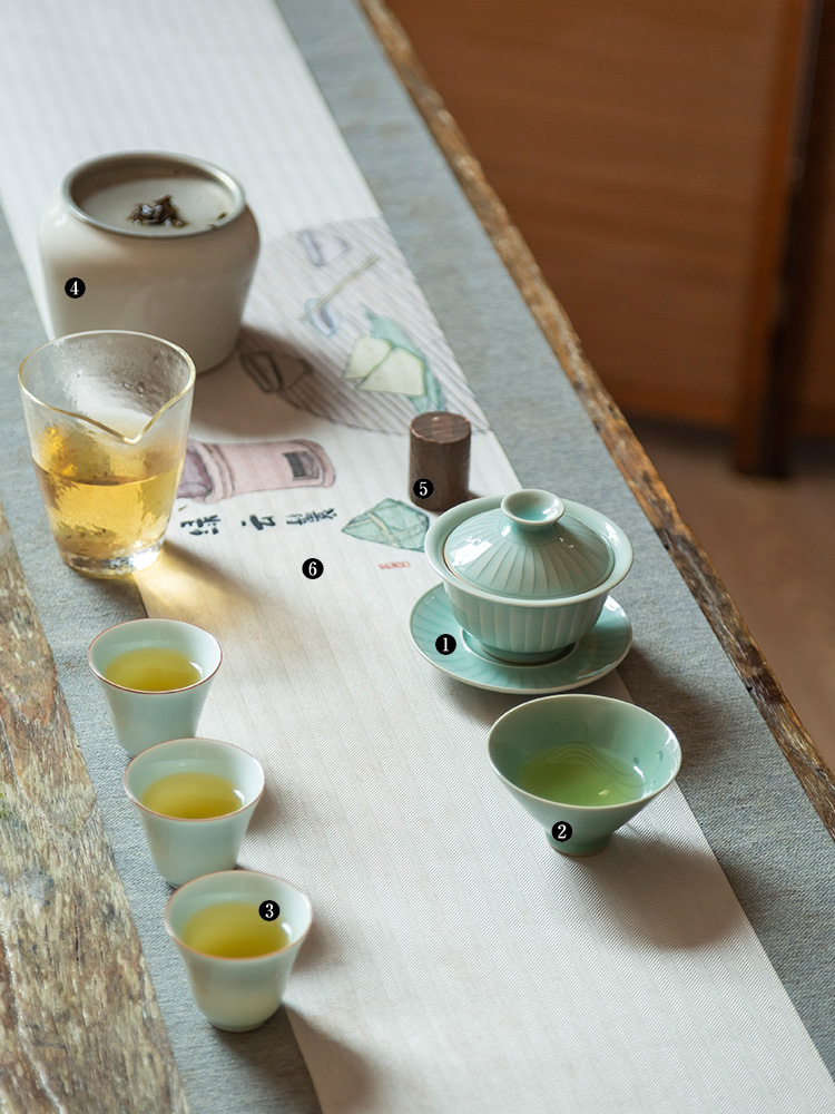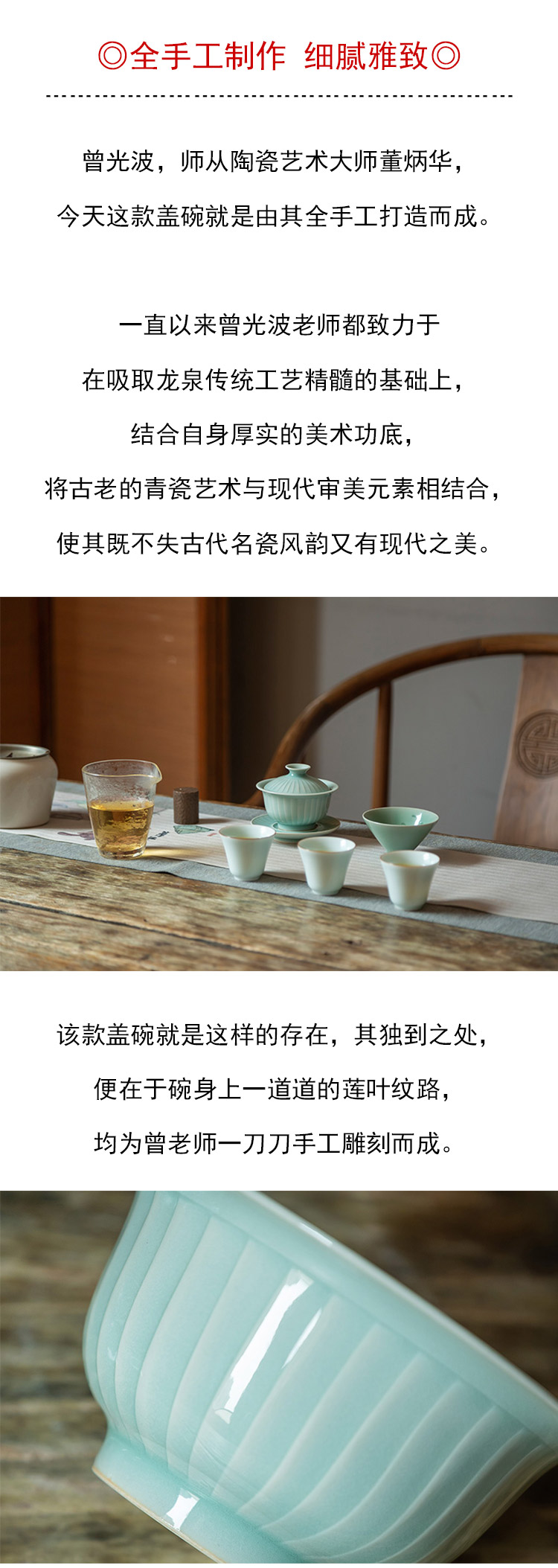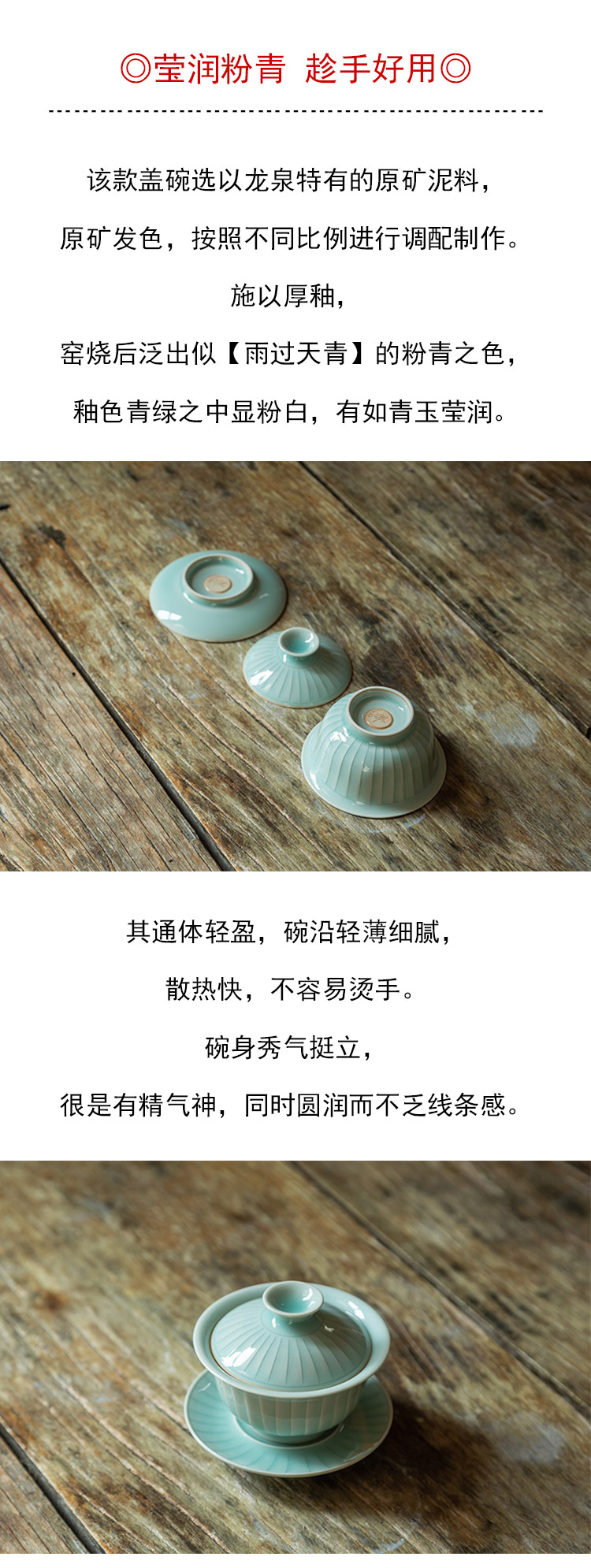 茶香记 手工条纹盖碗 全手工制作 粉青 仿宋 细腻 温润