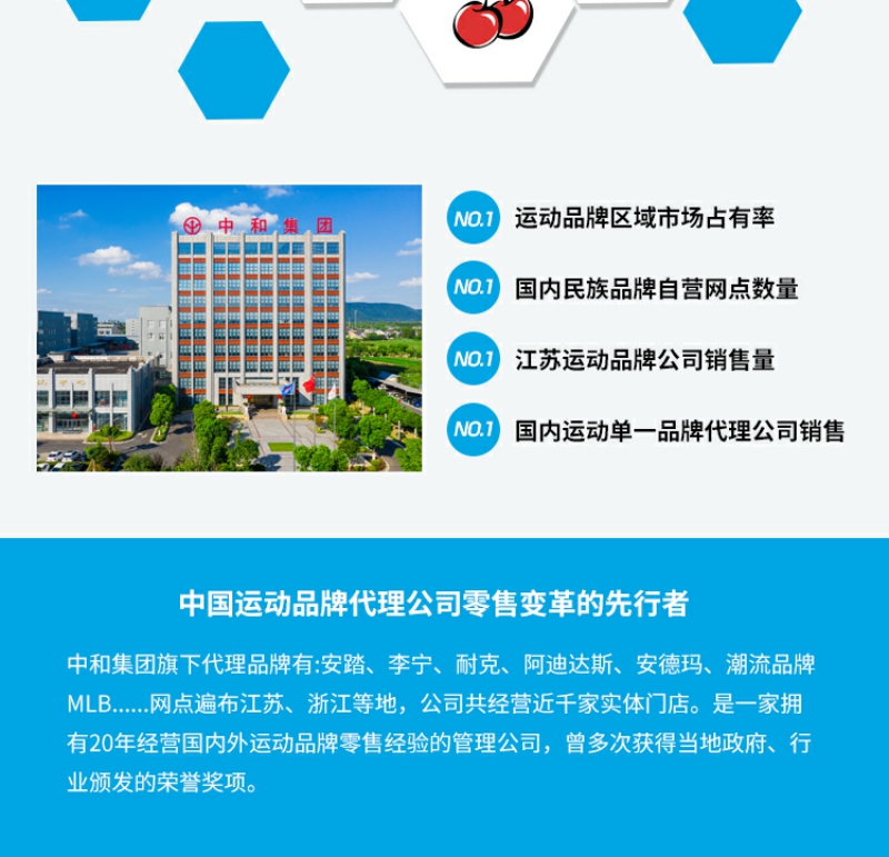 - 中和集团旗下代理安踏、李宁、耐克、安德玛、耐克、中国李宁、MIB等运动时尚品牌,网点遍布江苏、浙江、湖北等身份