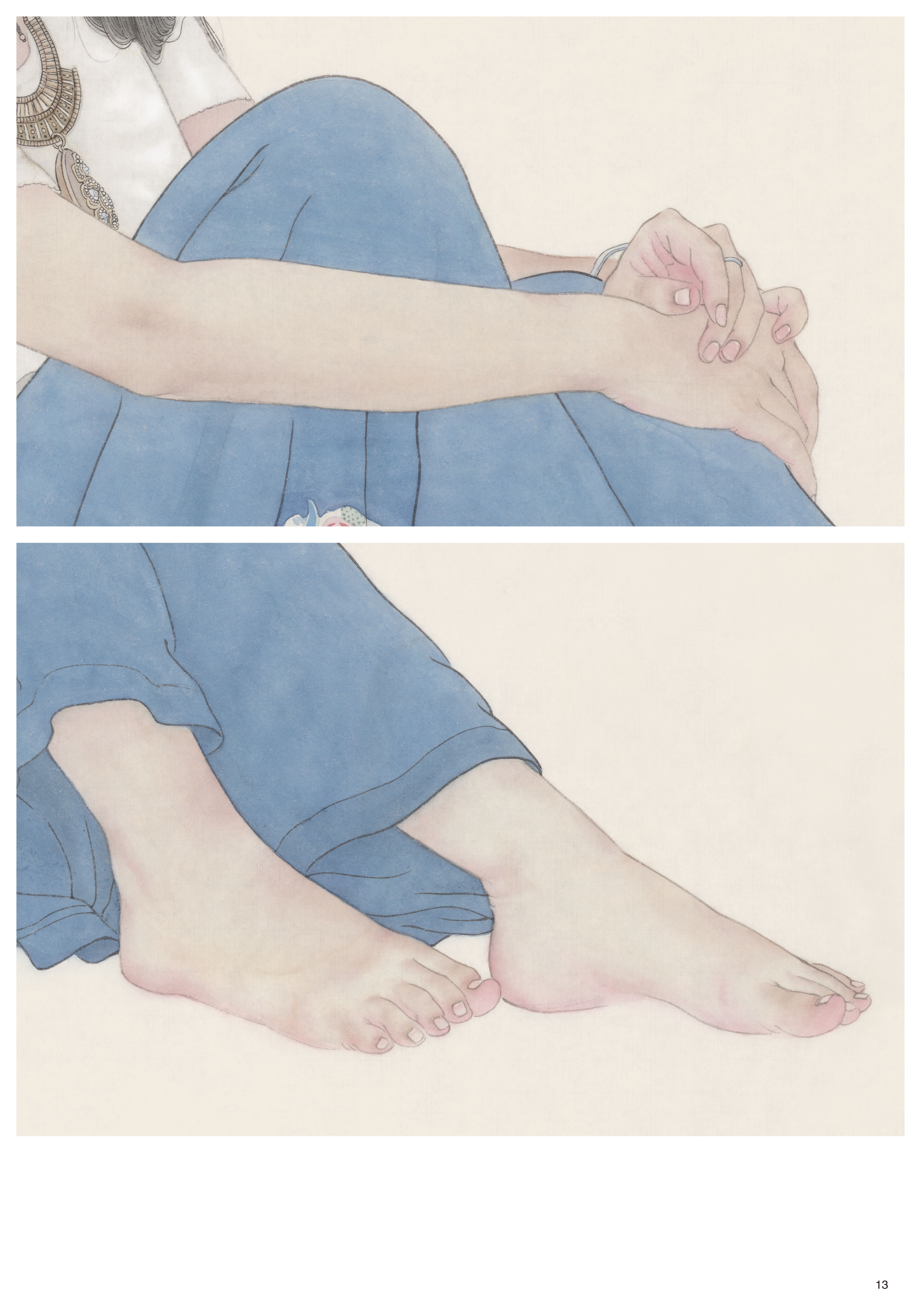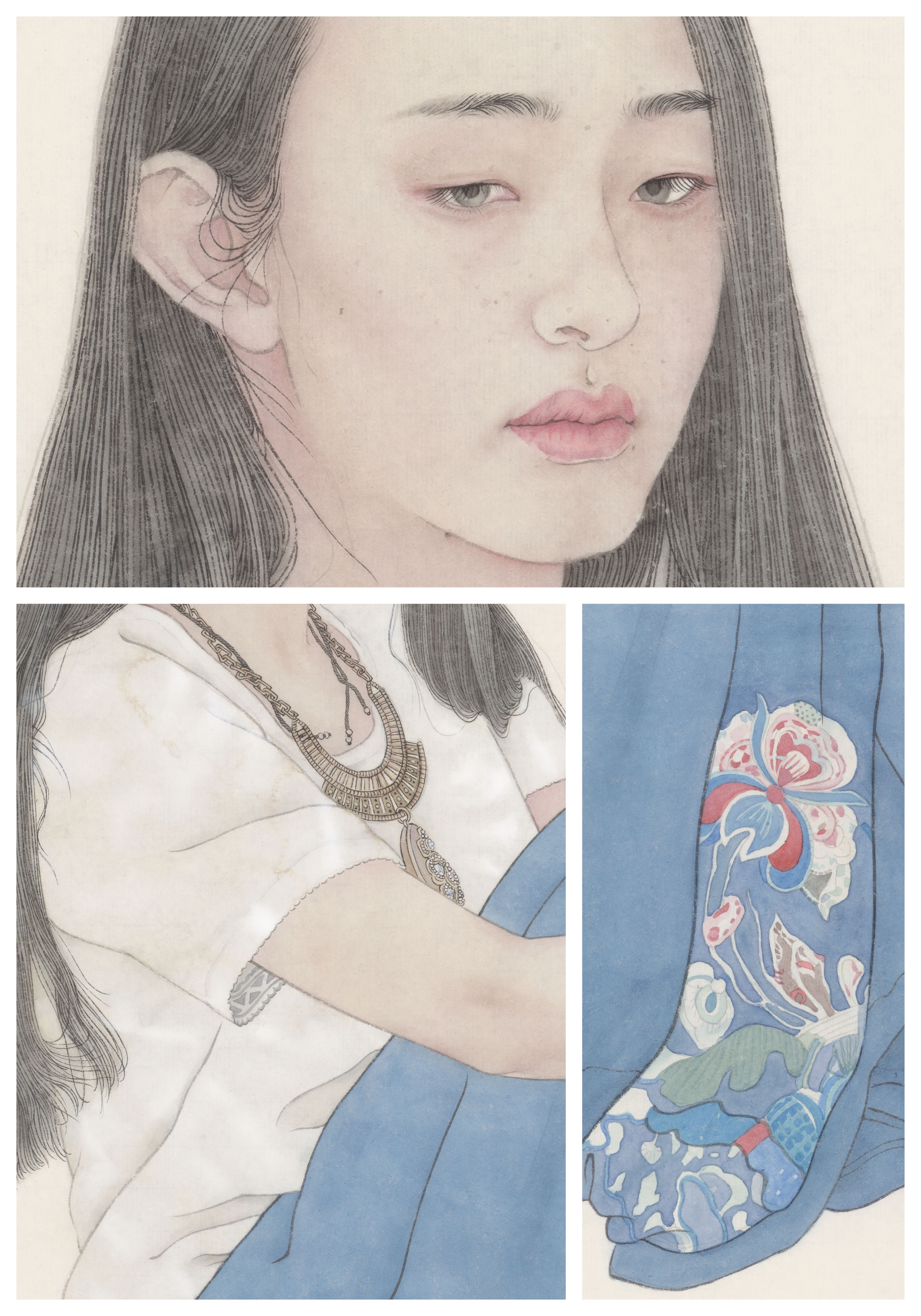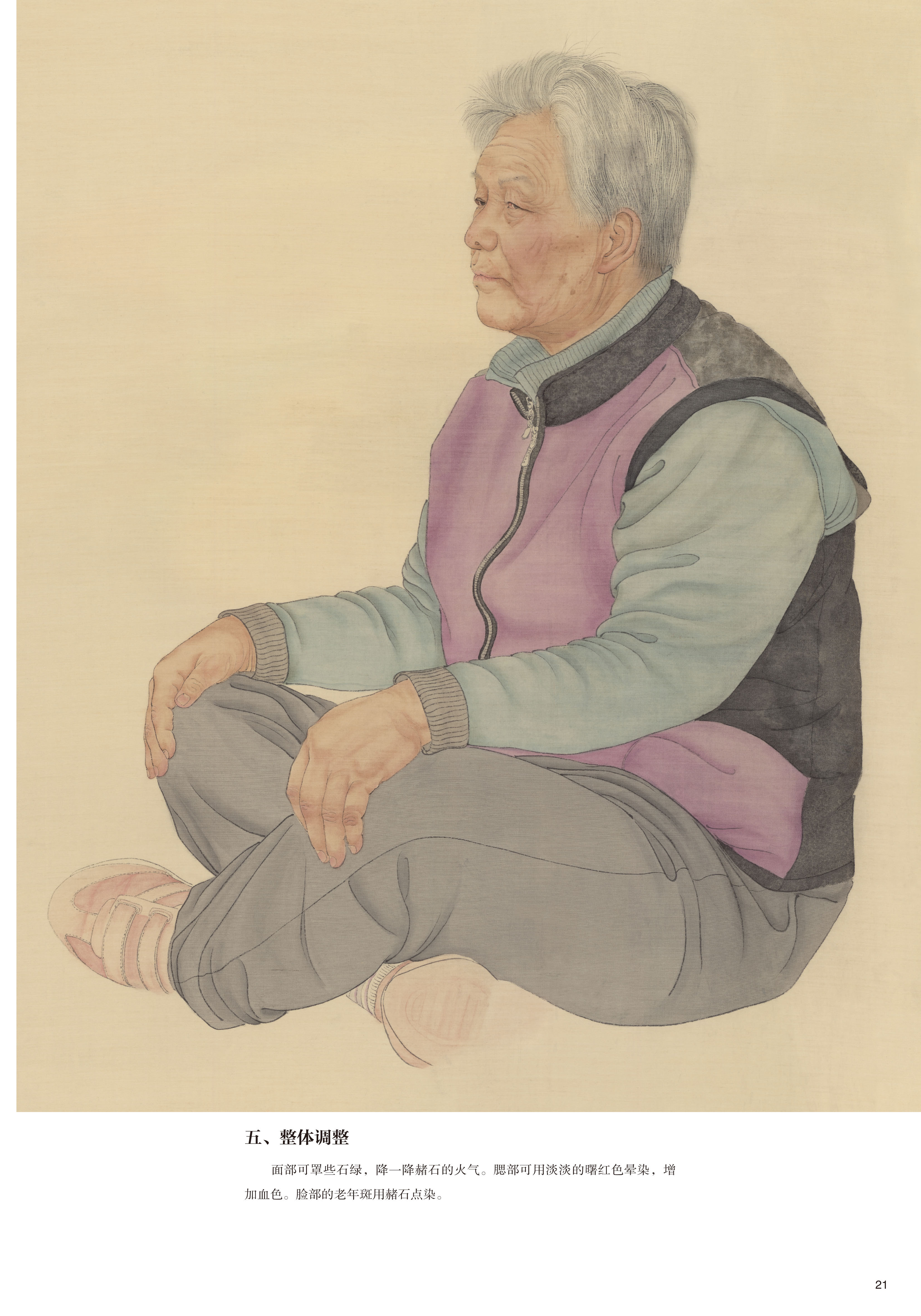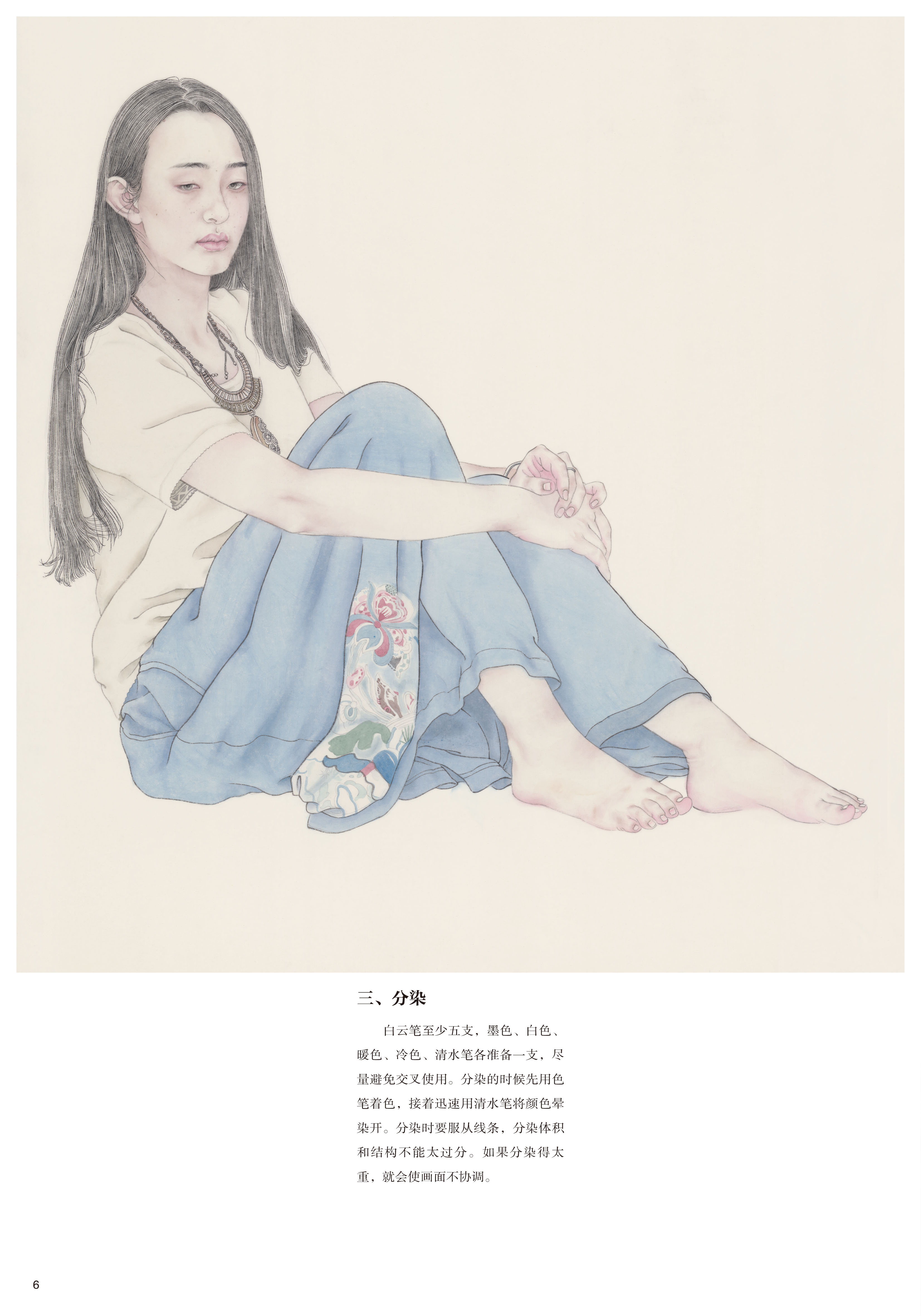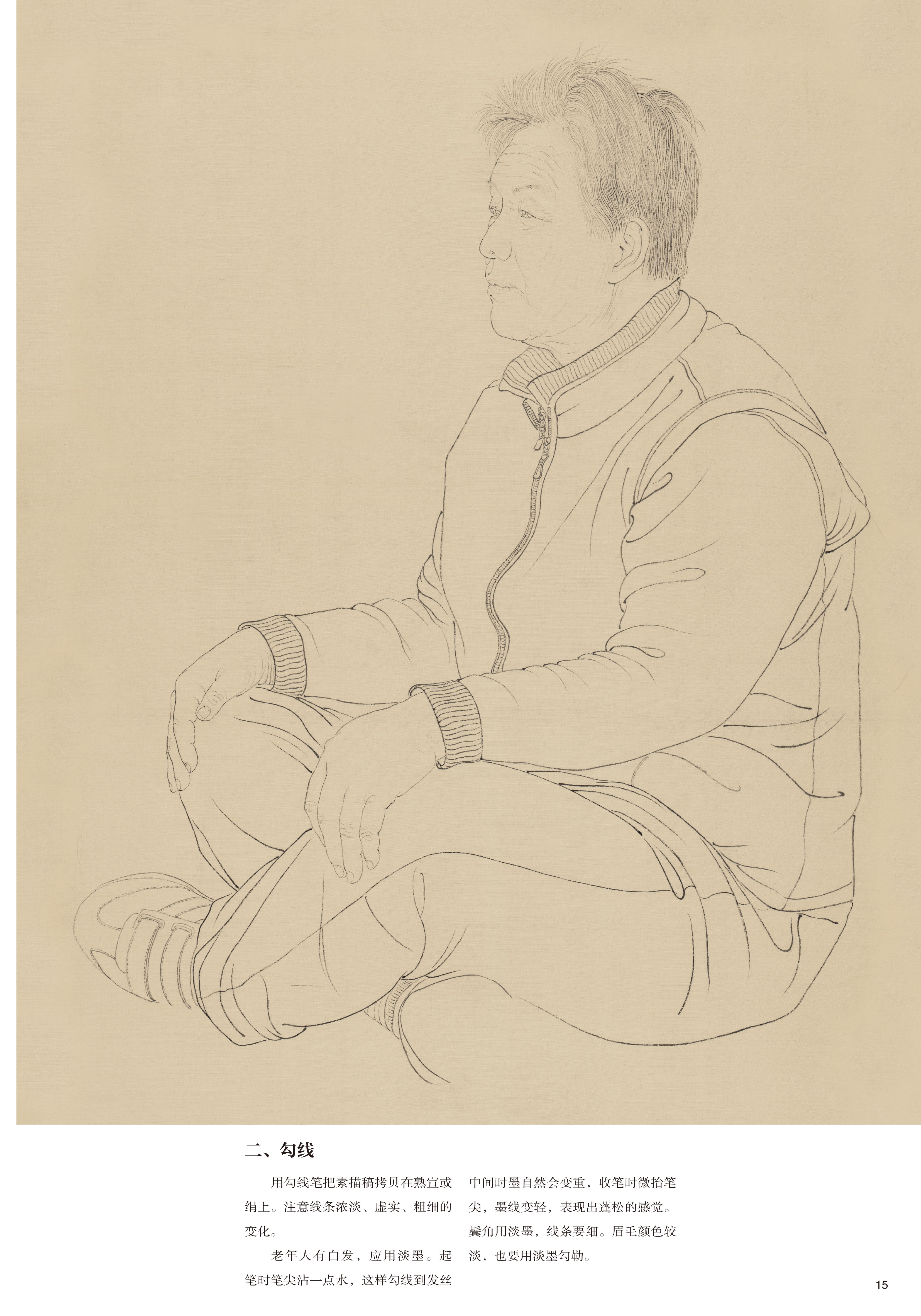 这套书是为学习工笔人物画的读者量身打造,贴合使用者的需求。无论是在校学生、业余爱好者还是老年大学学生,这套书都能适用。每册书包含两幅作品,经过精心搭配,或为青年搭配老年,或为女生搭配男生,在动态的搭配上也做了考量,一般为坐姿搭配站姿,人物的角度、朝向也有区别,这样可以使每位购书的读者根据自己练习的需要和审美喜好来选择。每幅作品分素描稿、线描、分染、罩染、整体调整五个步骤,均使用高清大图,印刷精美,纤毫毕现,无论是起稿、勾线,还是染色,都可以看到最精确的细节。实为学习工笔人物画的上佳范本。