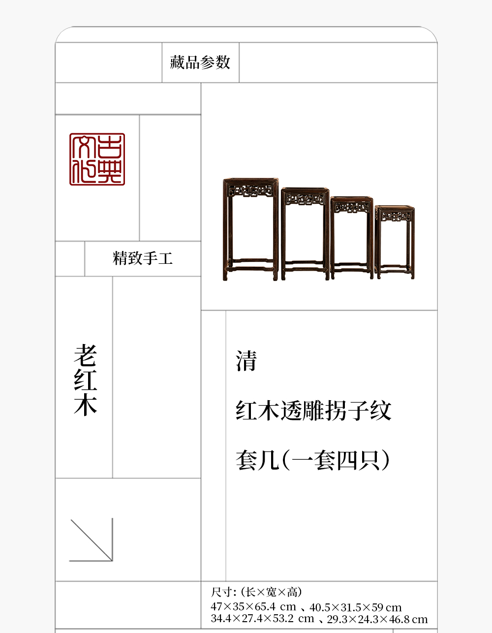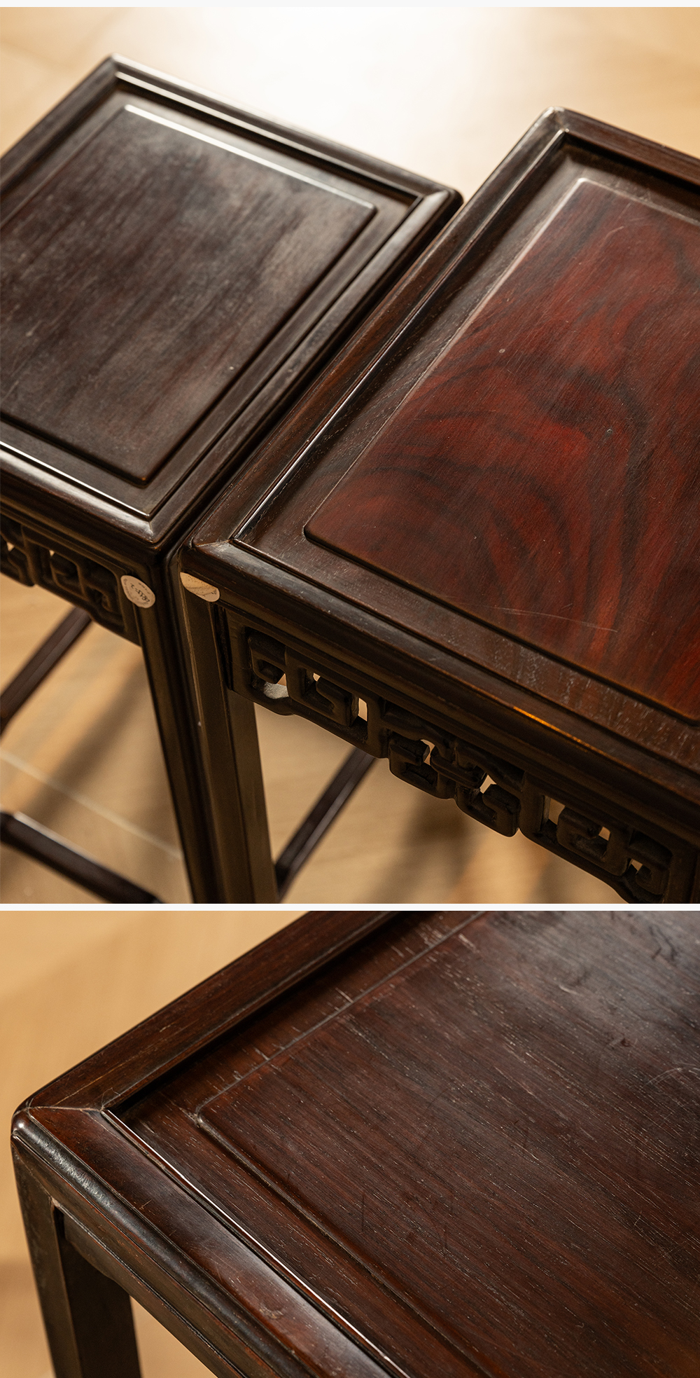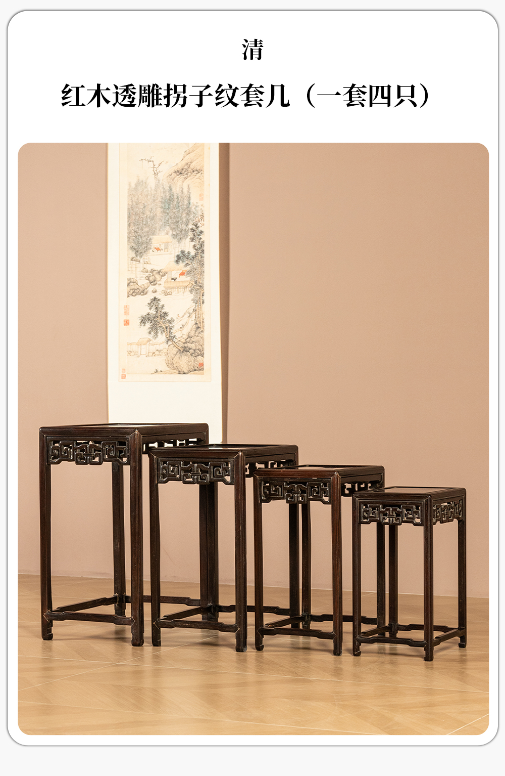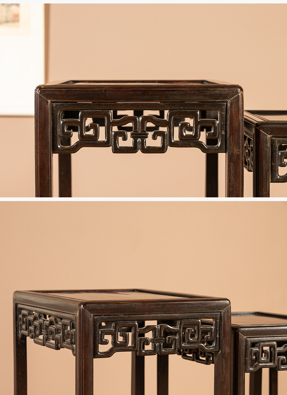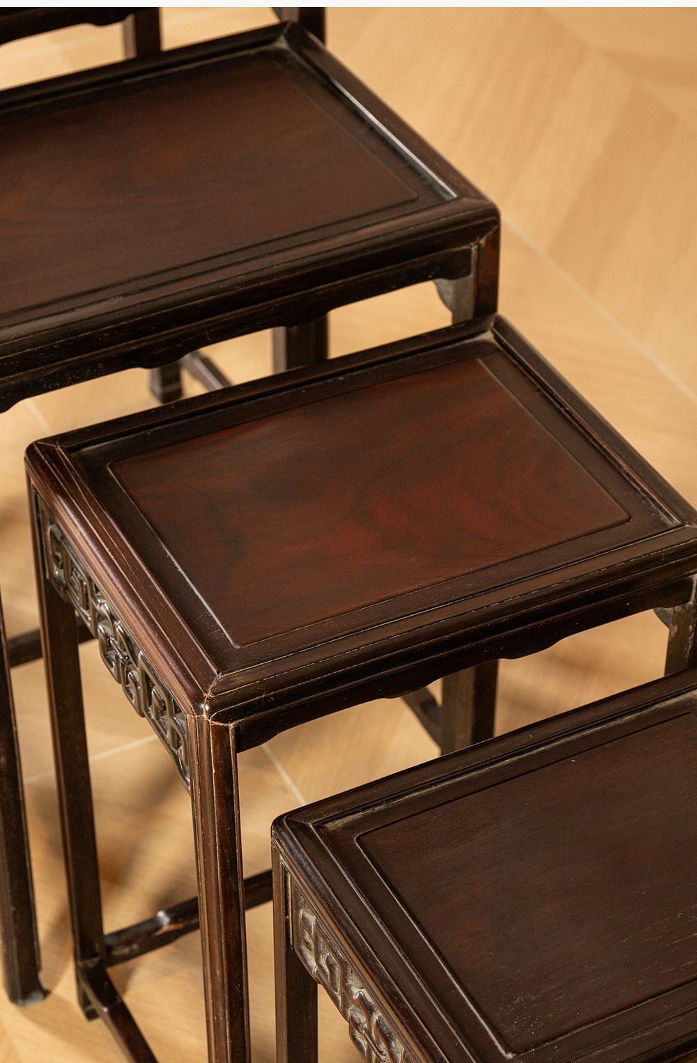 清 红木透雕拐子纹套几(一套四只)