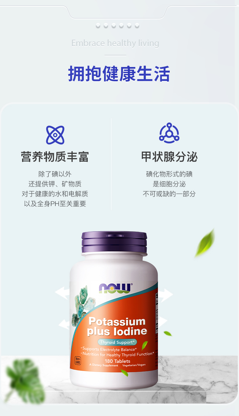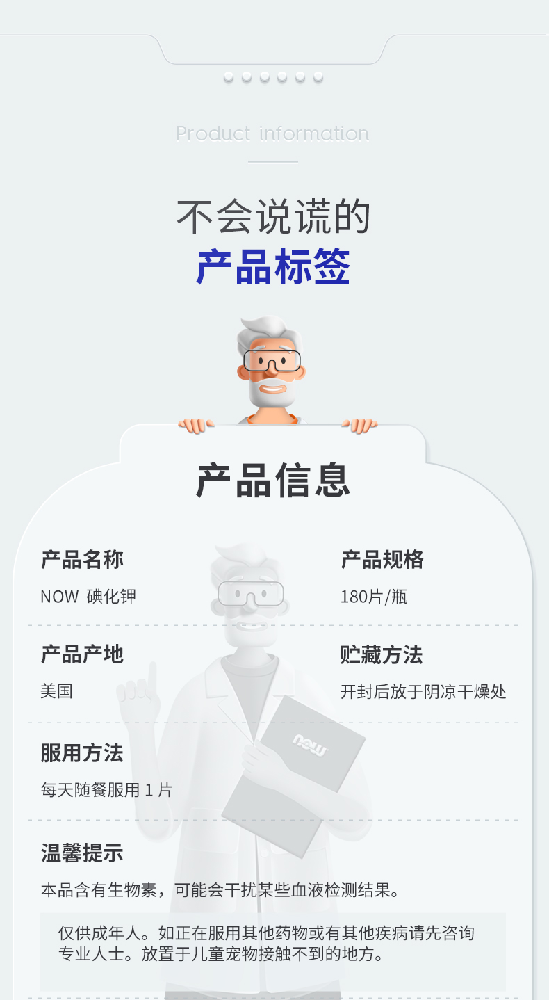 碘化钾|NOW诺奥碘钾片180片碘化钾