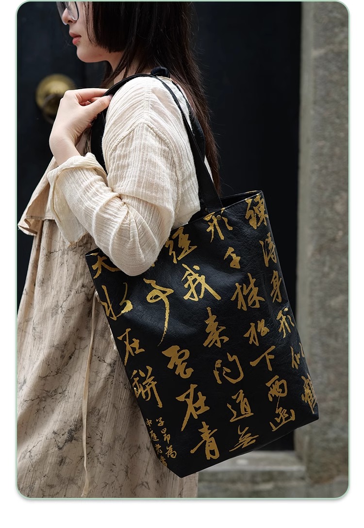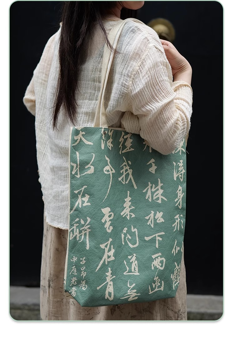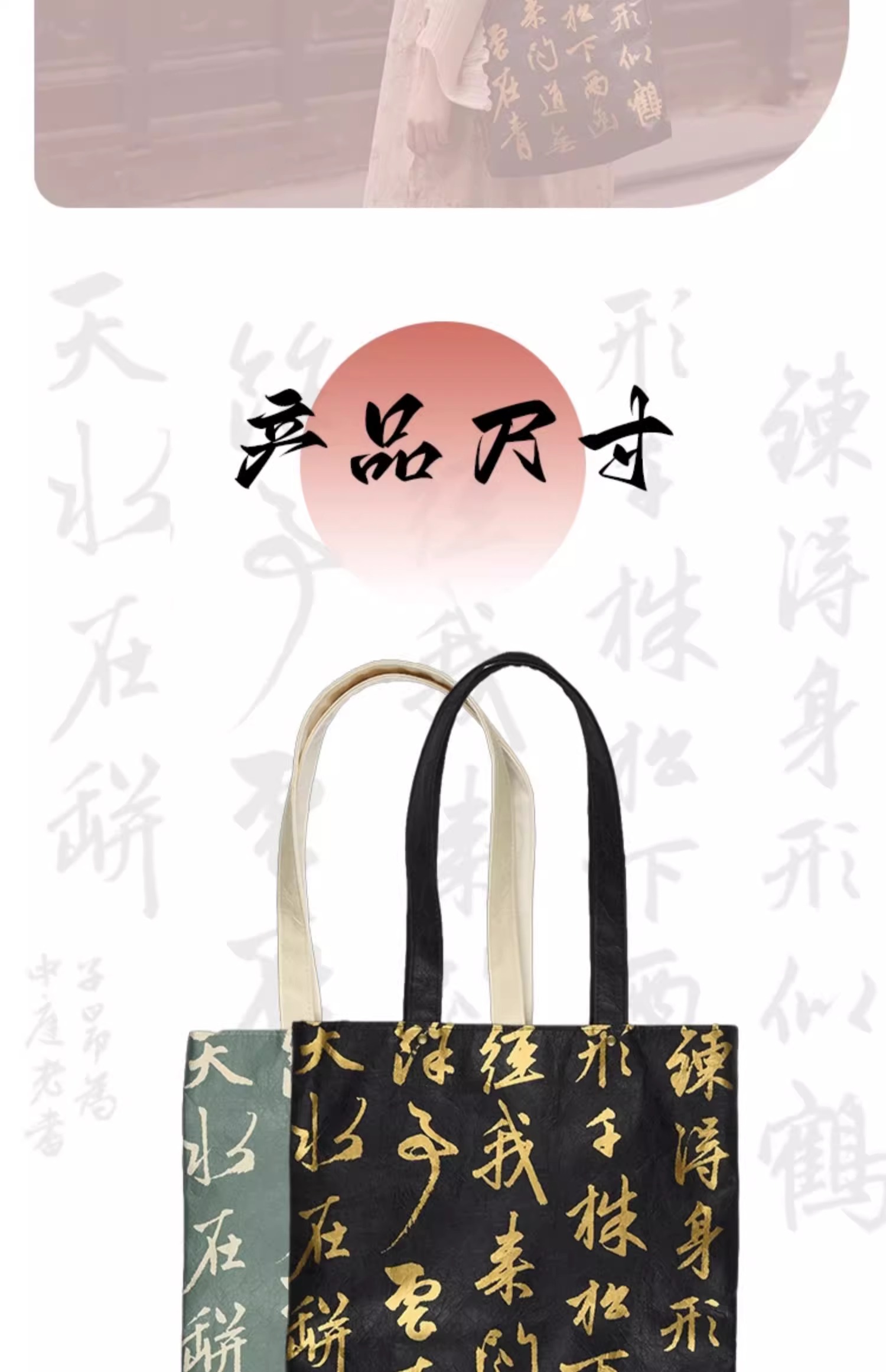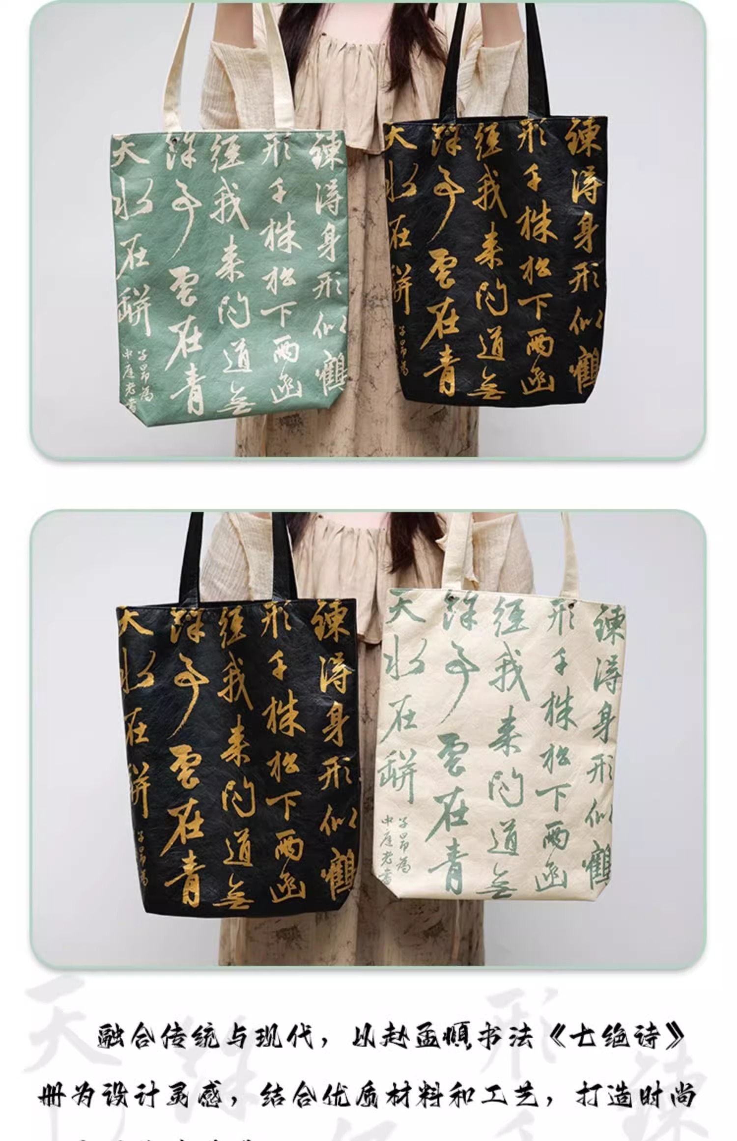 ⬇️融合传统与现代,以赵孟頫书法《七绝诗》册为设计灵感,结合优质材料和工艺,打造时尚、实用的手提袋。