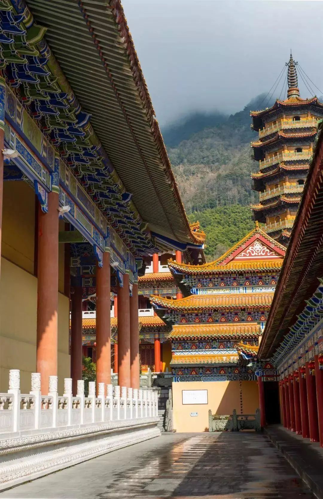禅源寺规模宏大、布局完整,红墙黄瓦,禅境幽幽,宛如潜匿在毓秀天目里的“小故宫”。