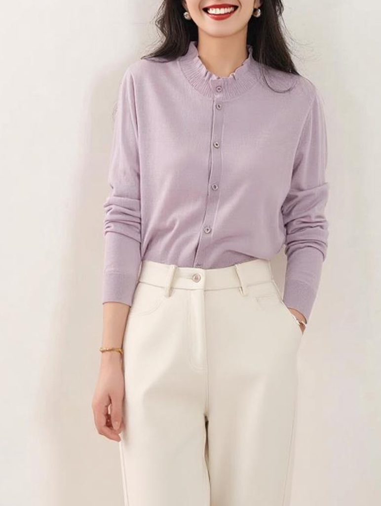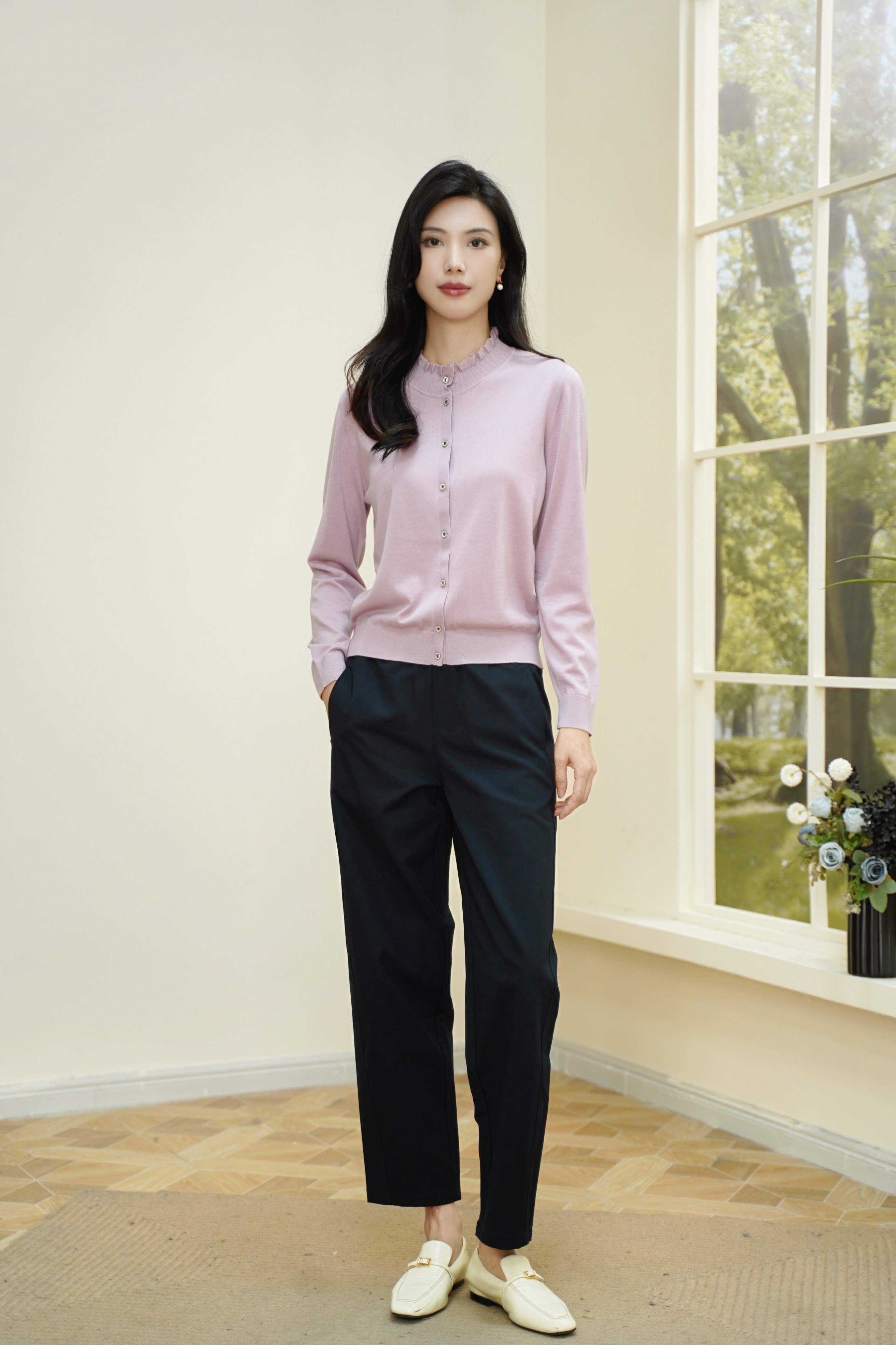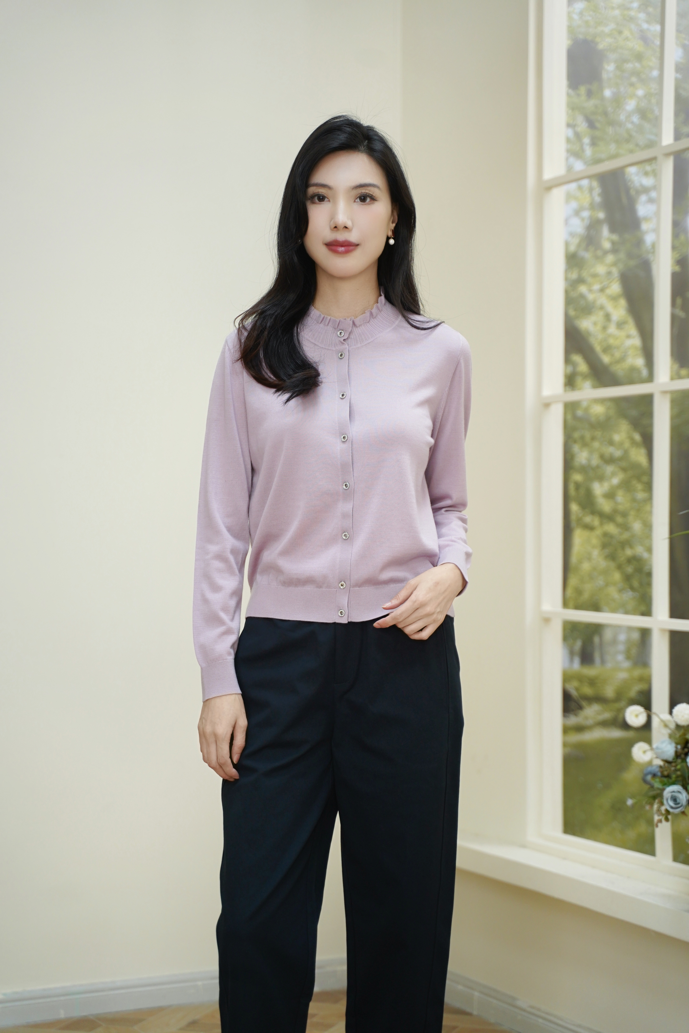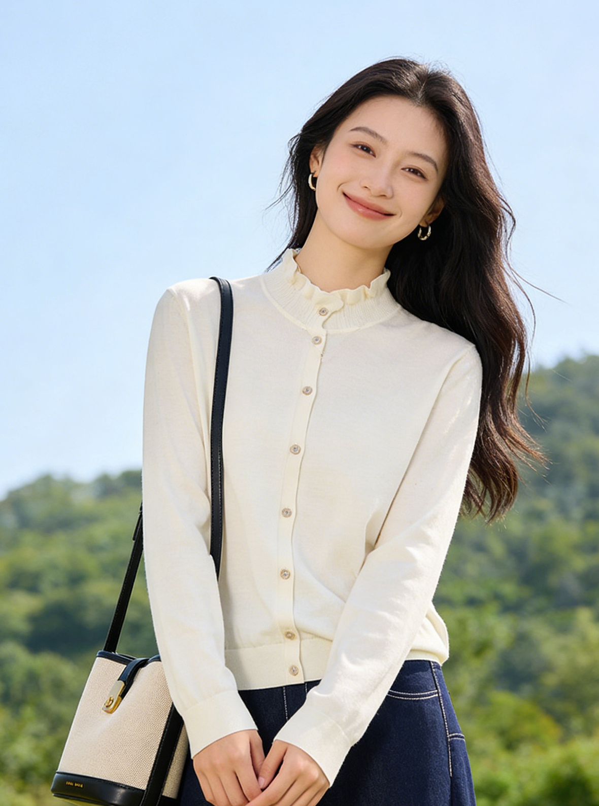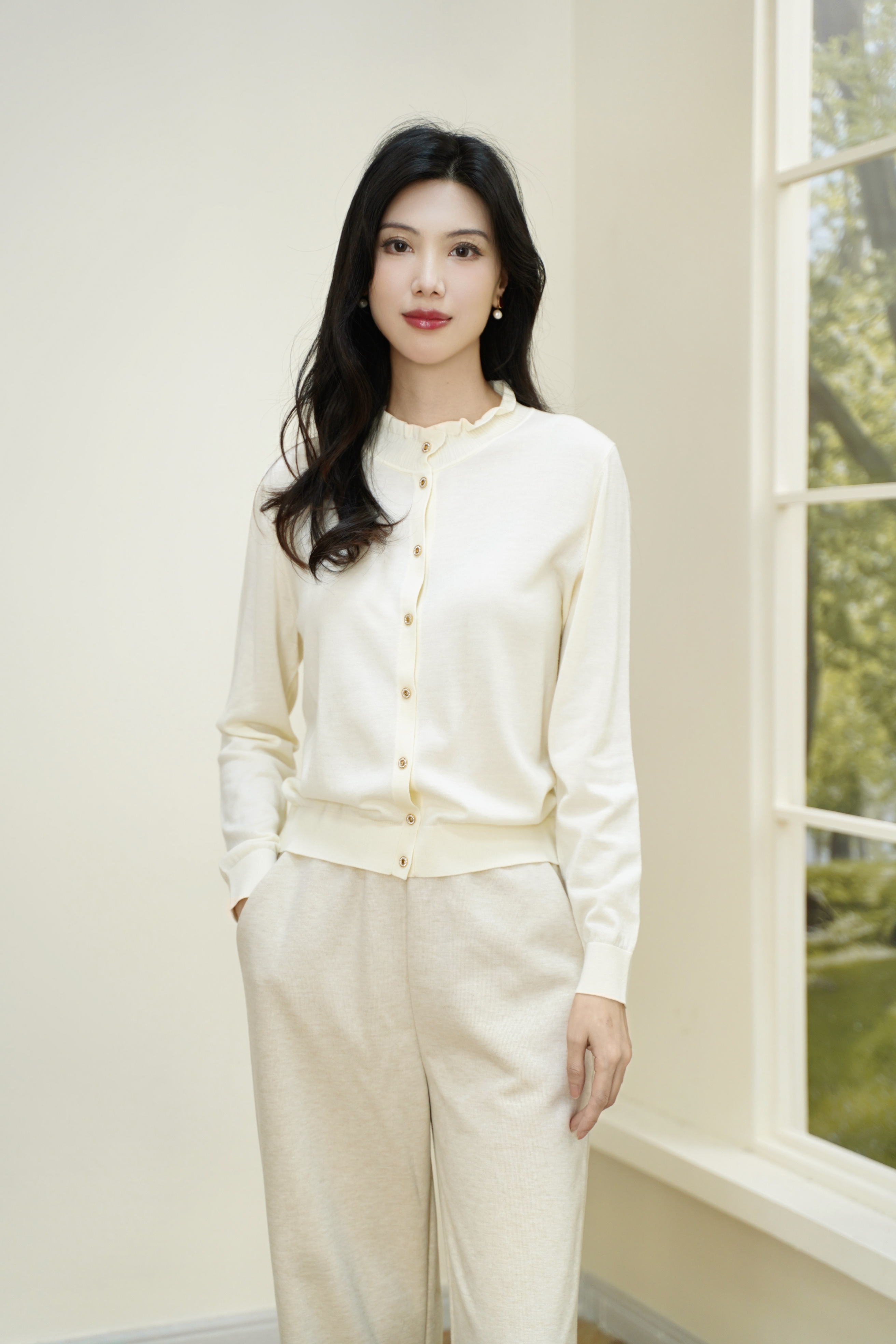 现货秒发 臣禾 【小美满开衫】木耳边领羊毛衬衫可机洗100%绵羊毛针织开衫 JZ253090675