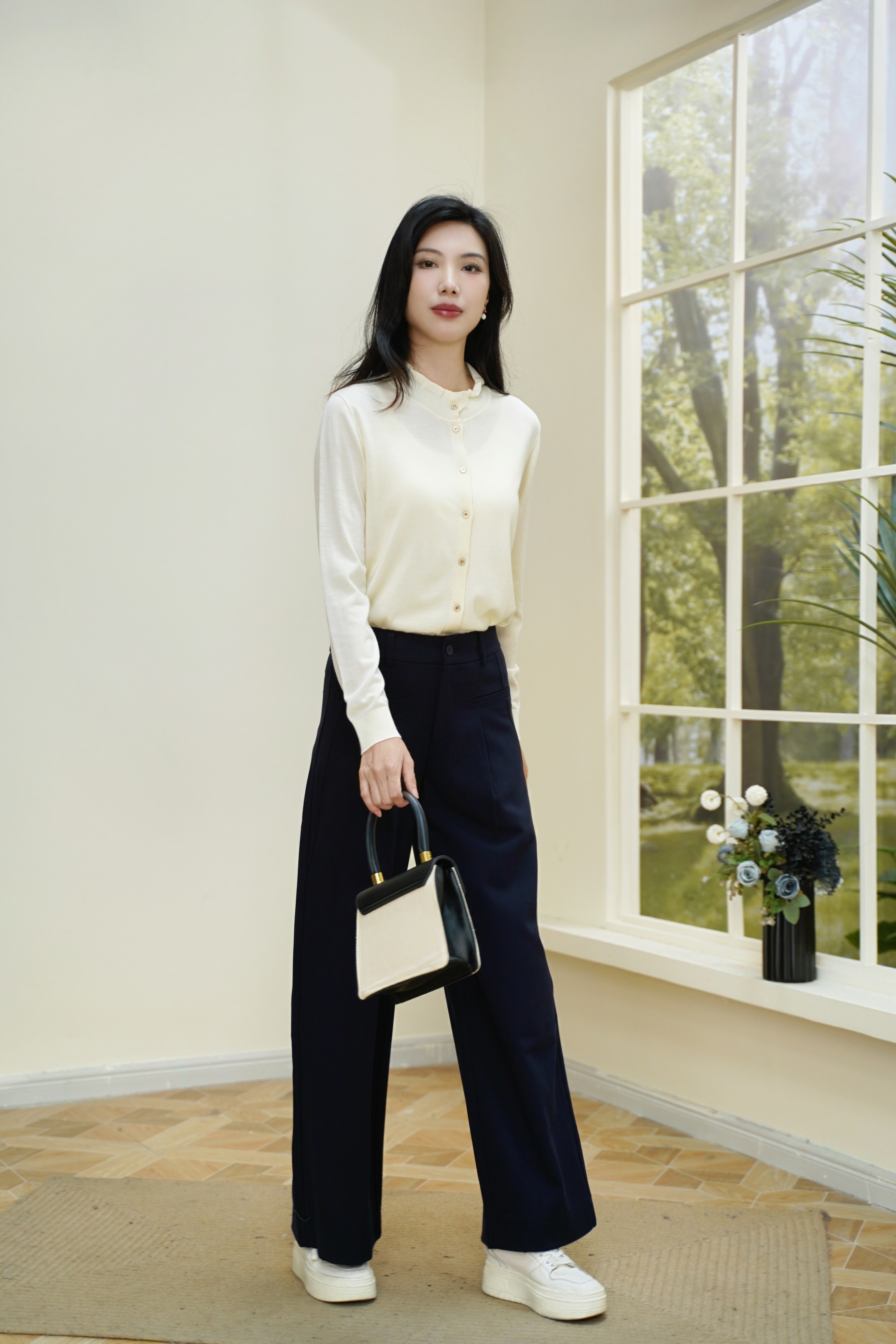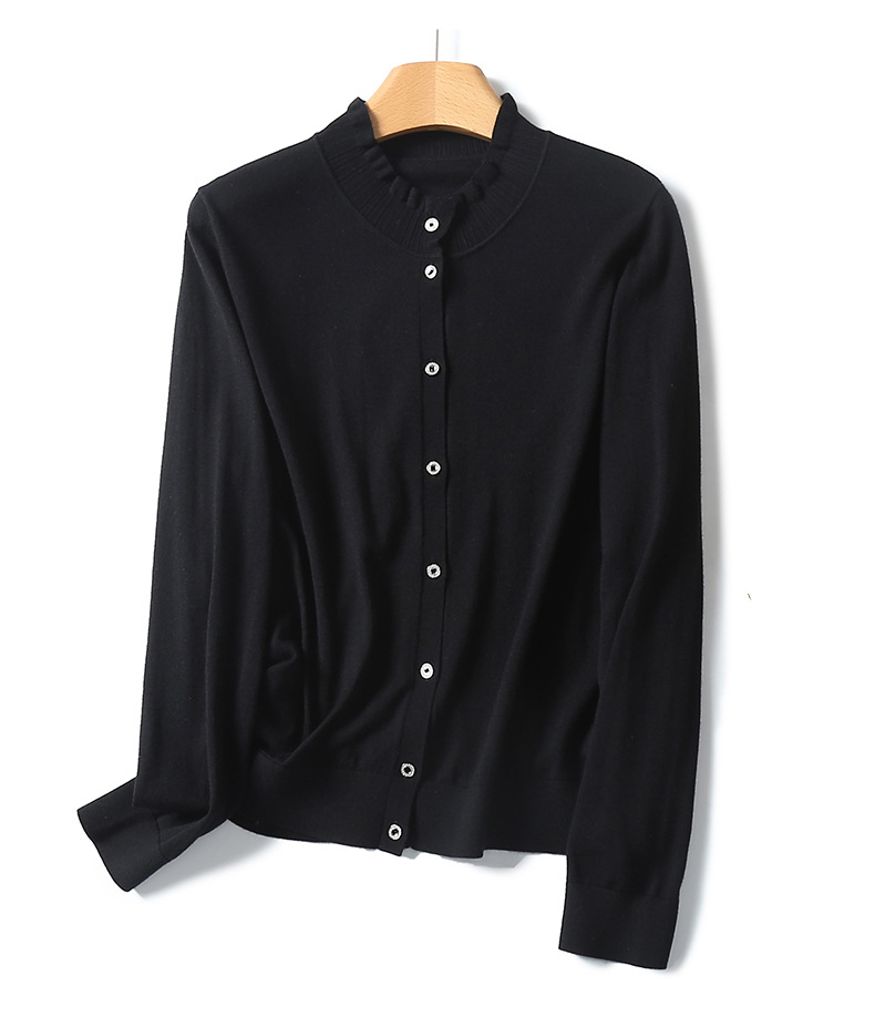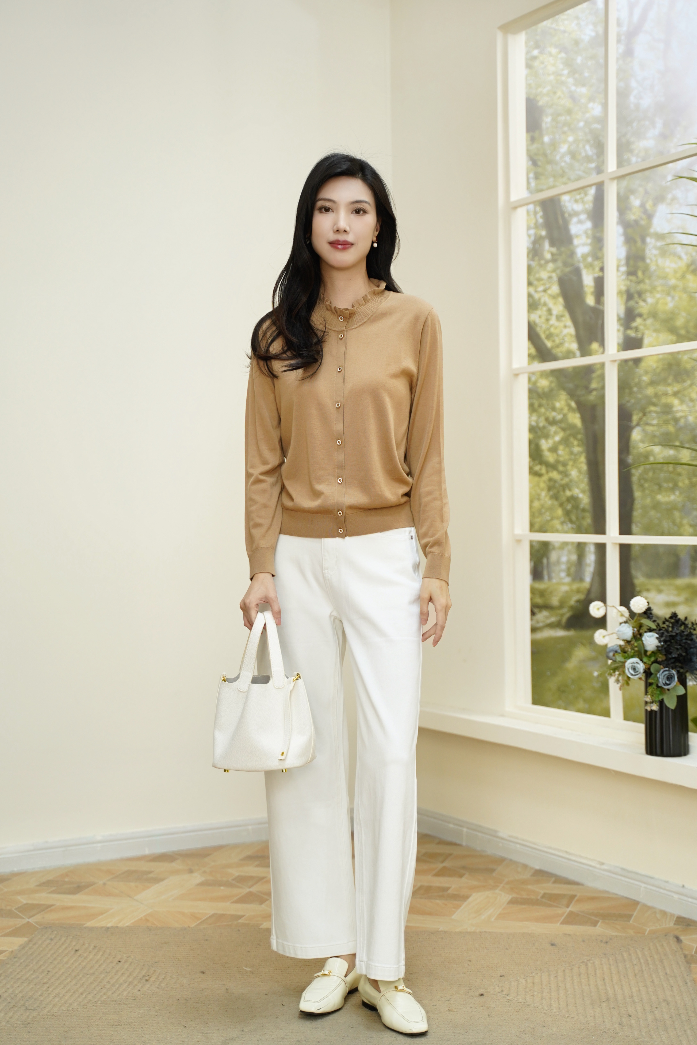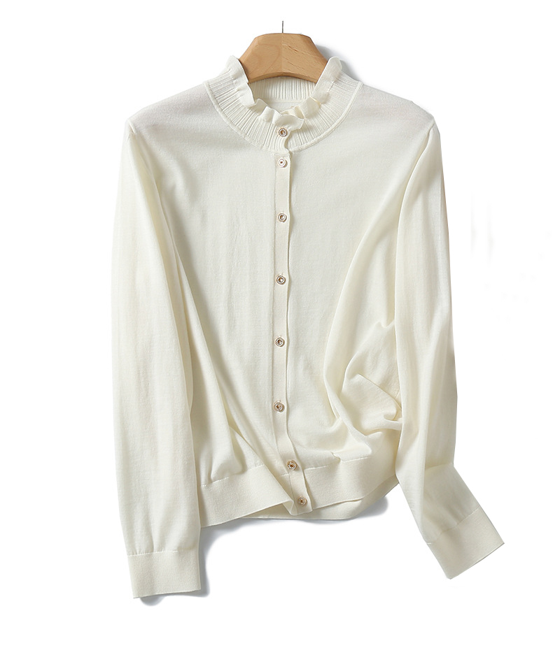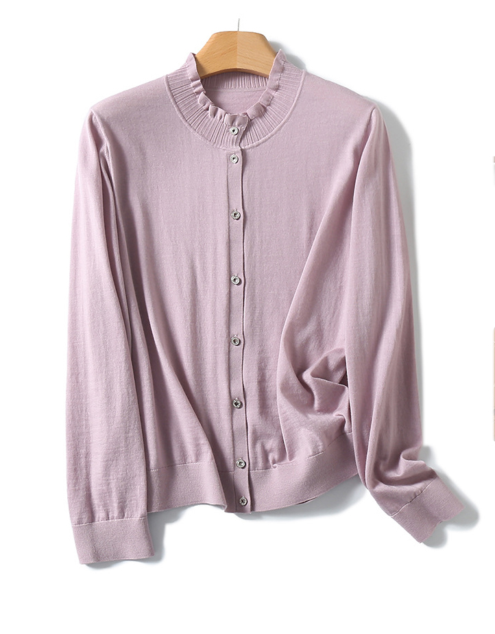 现货秒发 臣禾 【小美满开衫】木耳边领羊毛衬衫可机洗100%绵羊毛针织开衫 JZ253090675