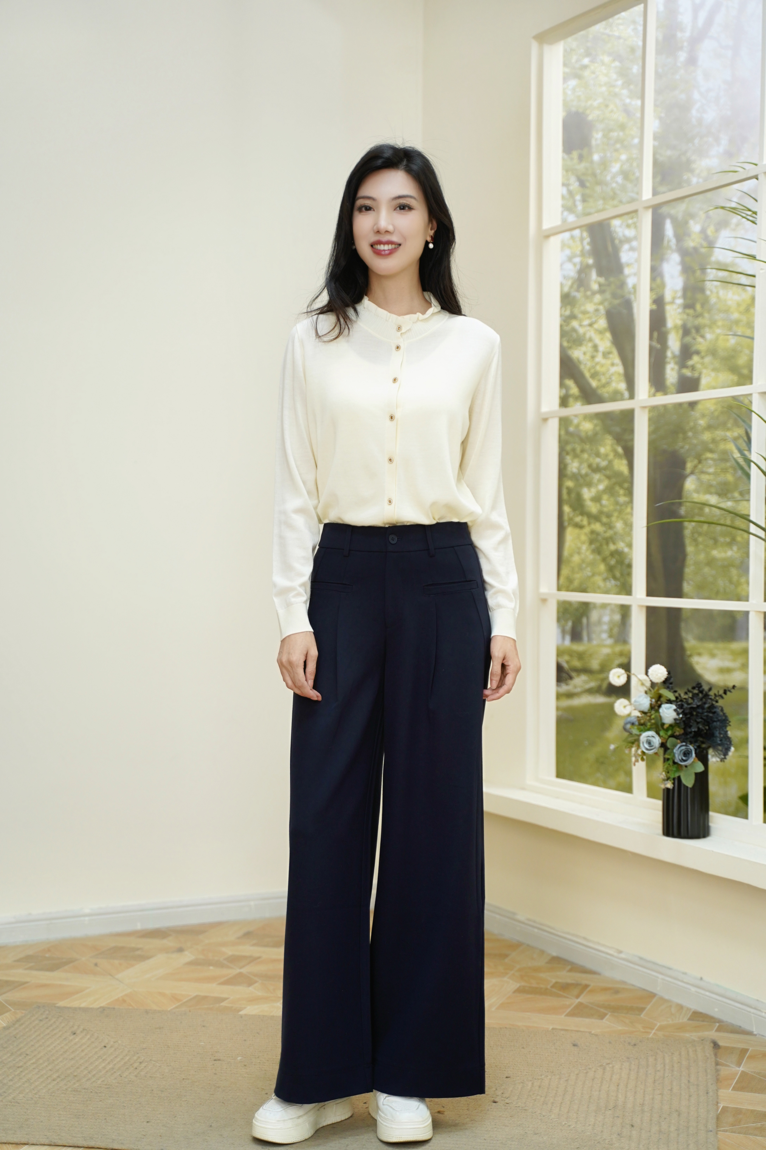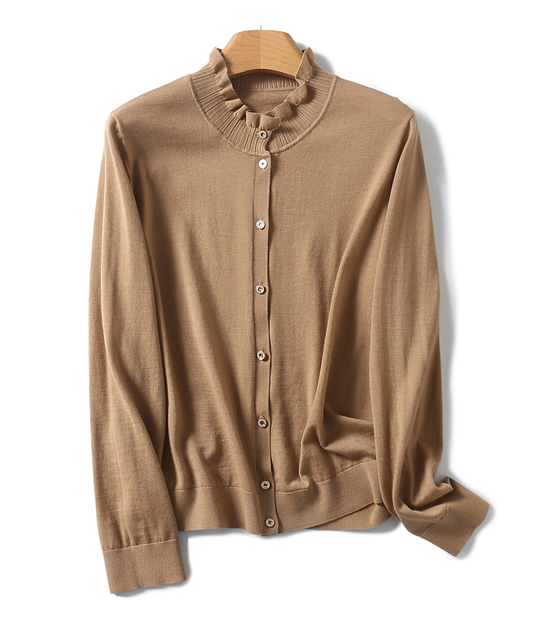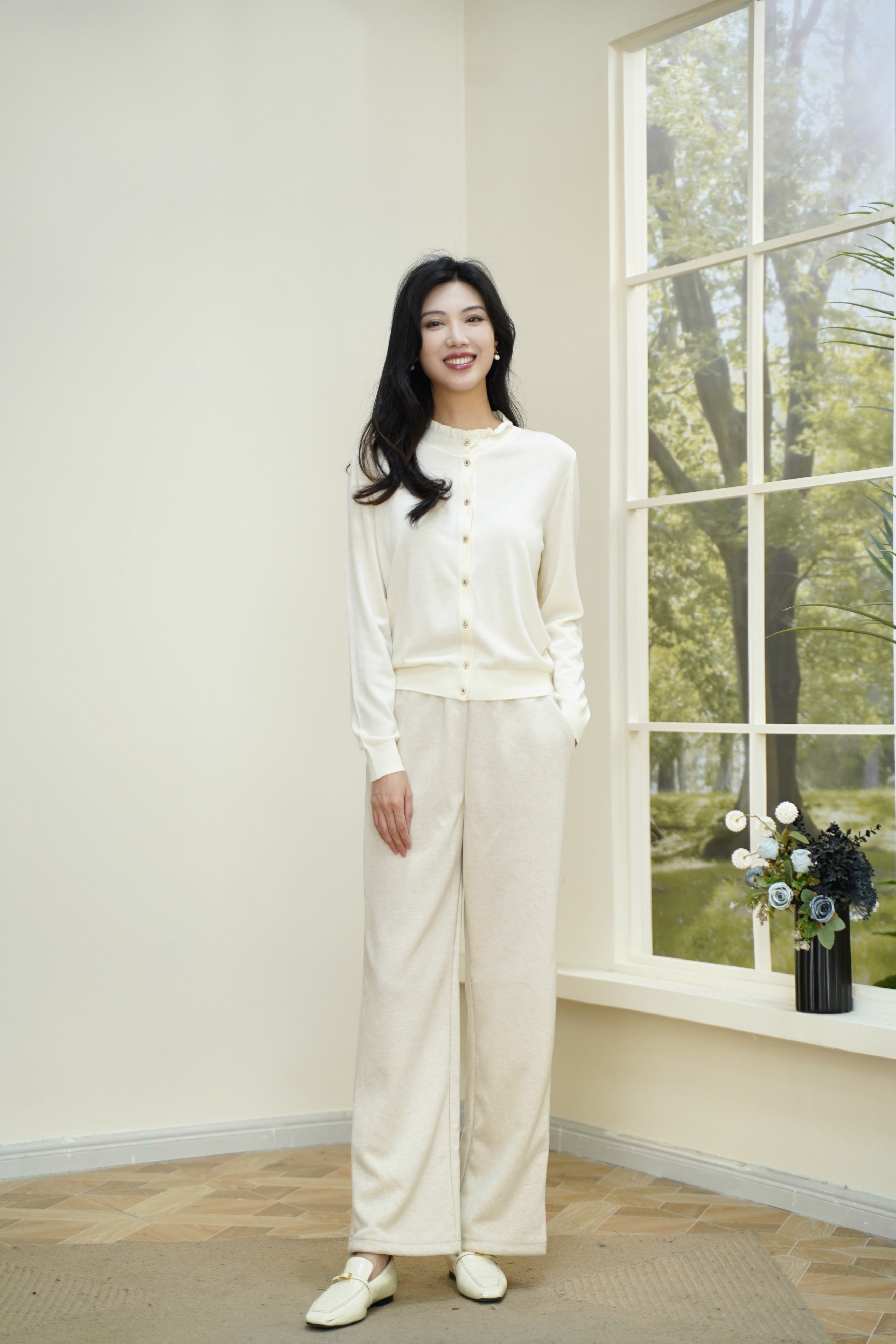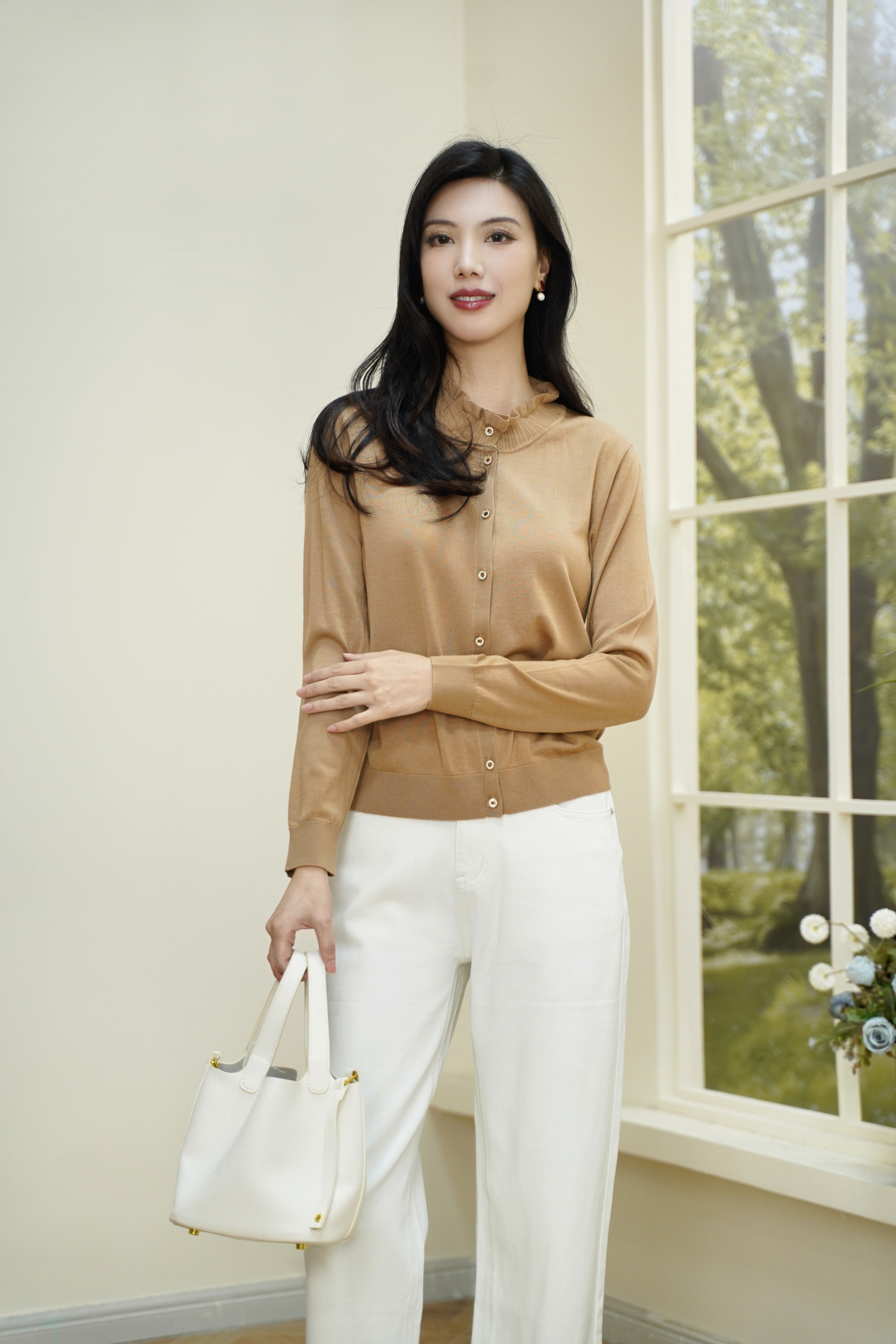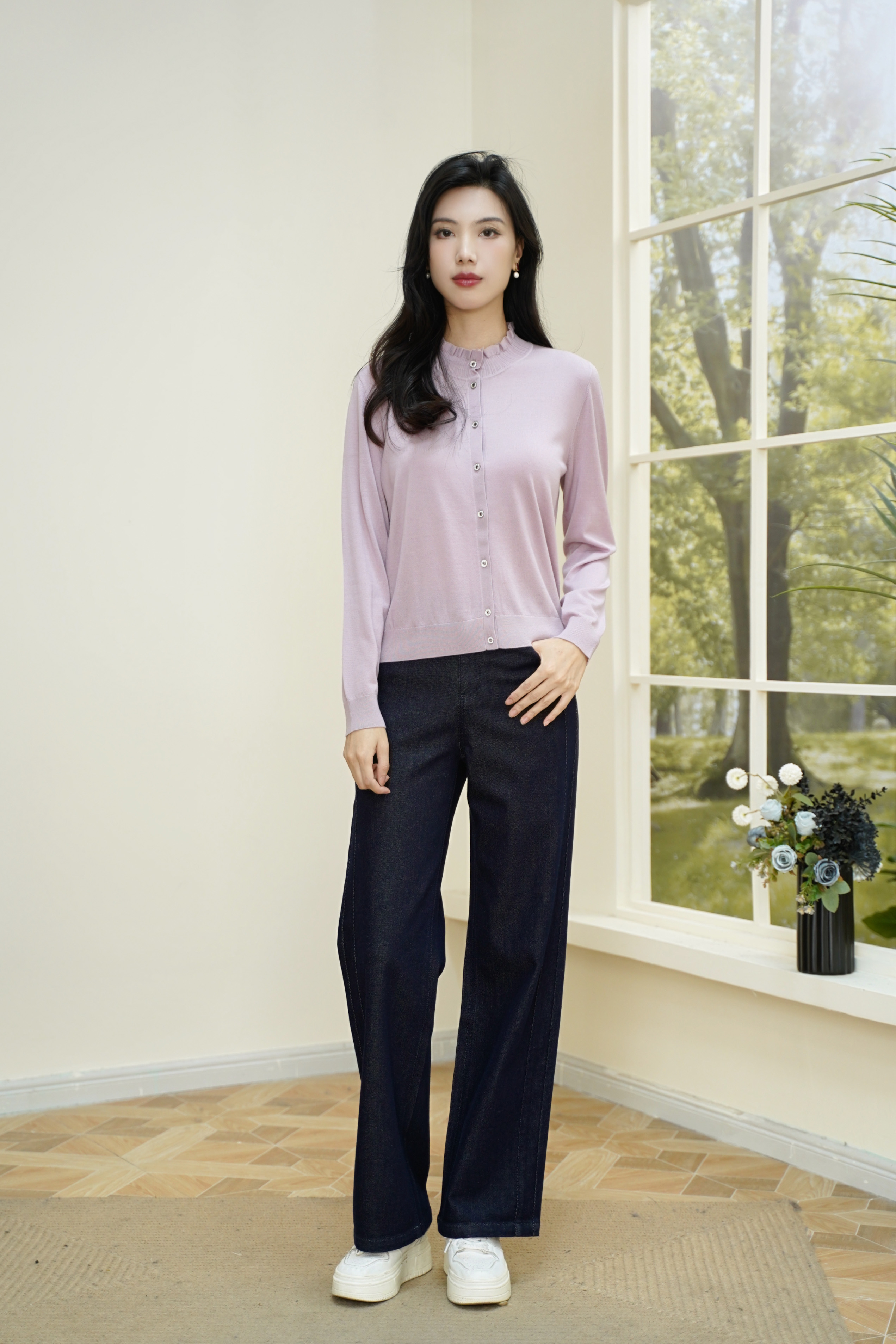 现货秒发 臣禾 【小美满开衫】木耳边领羊毛衬衫可机洗100%绵羊毛针织开衫 JZ253090675