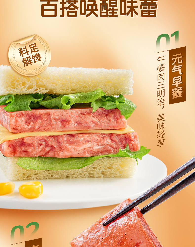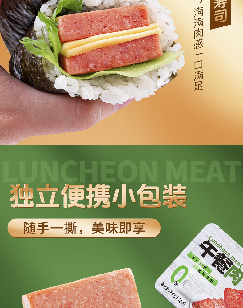 【新品】美珍香午餐肉早餐三明治专用即食肉片单独包装400g/盒