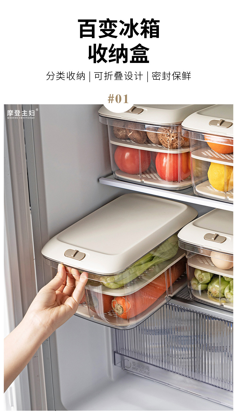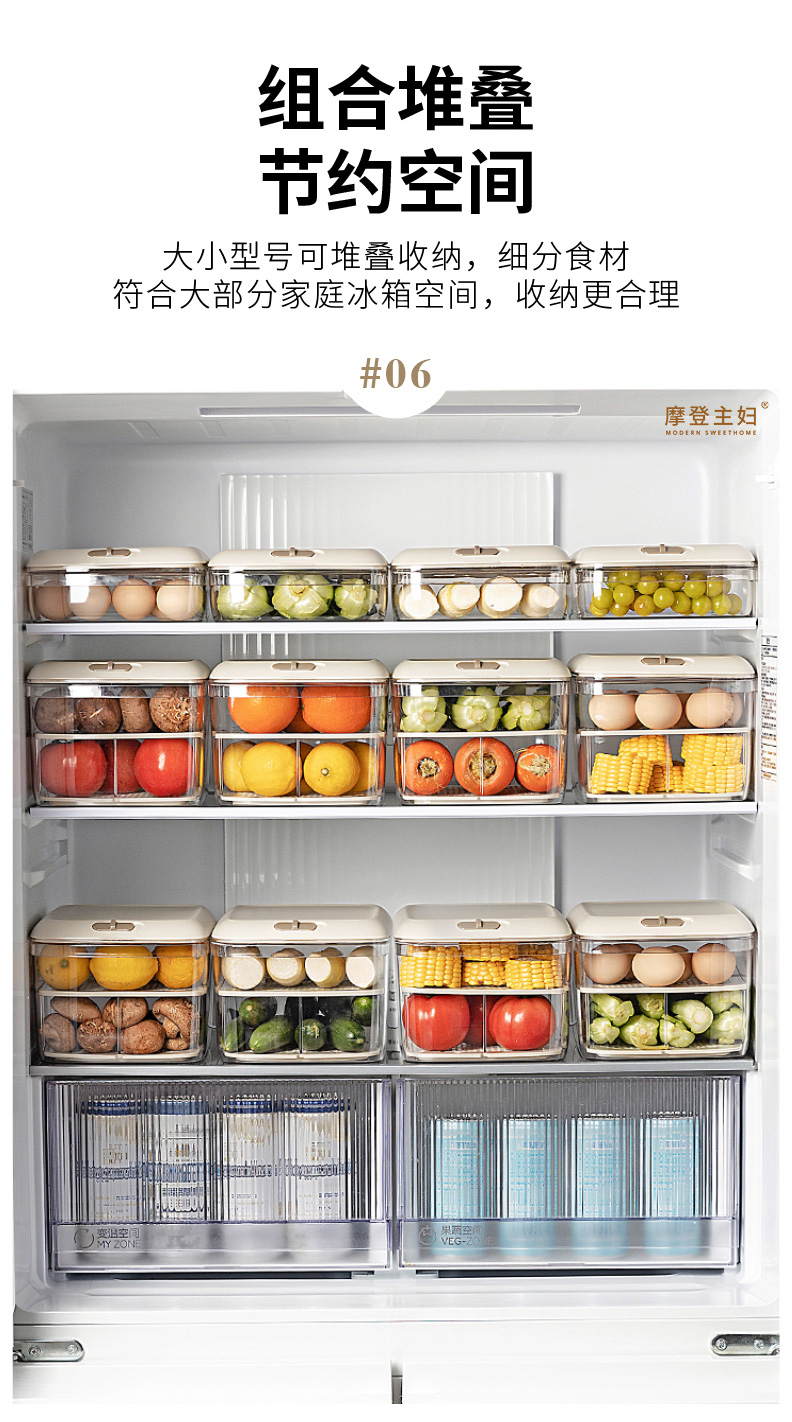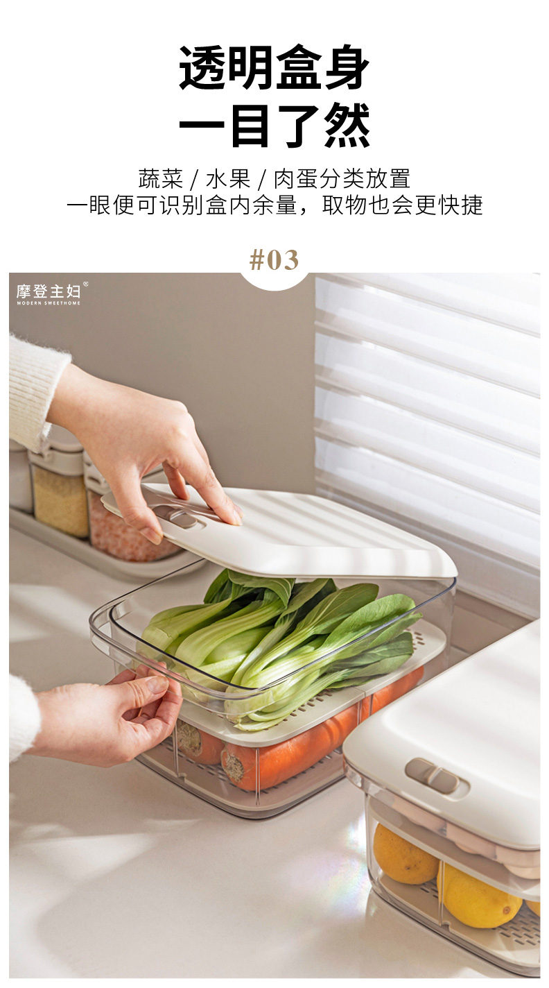 摩登主妇冰箱收纳盒食品级整理盒家用厨房鸡蛋果蔬饮料密封保鲜盒