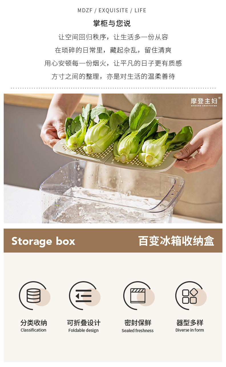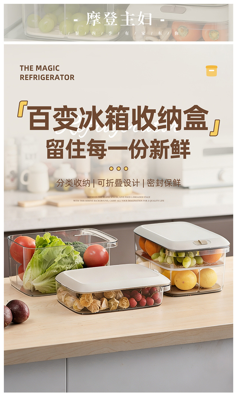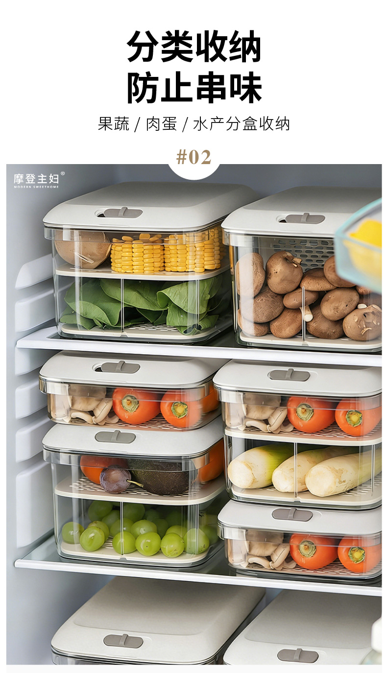 摩登主妇冰箱收纳盒食品级整理盒家用厨房鸡蛋果蔬饮料密封保鲜盒