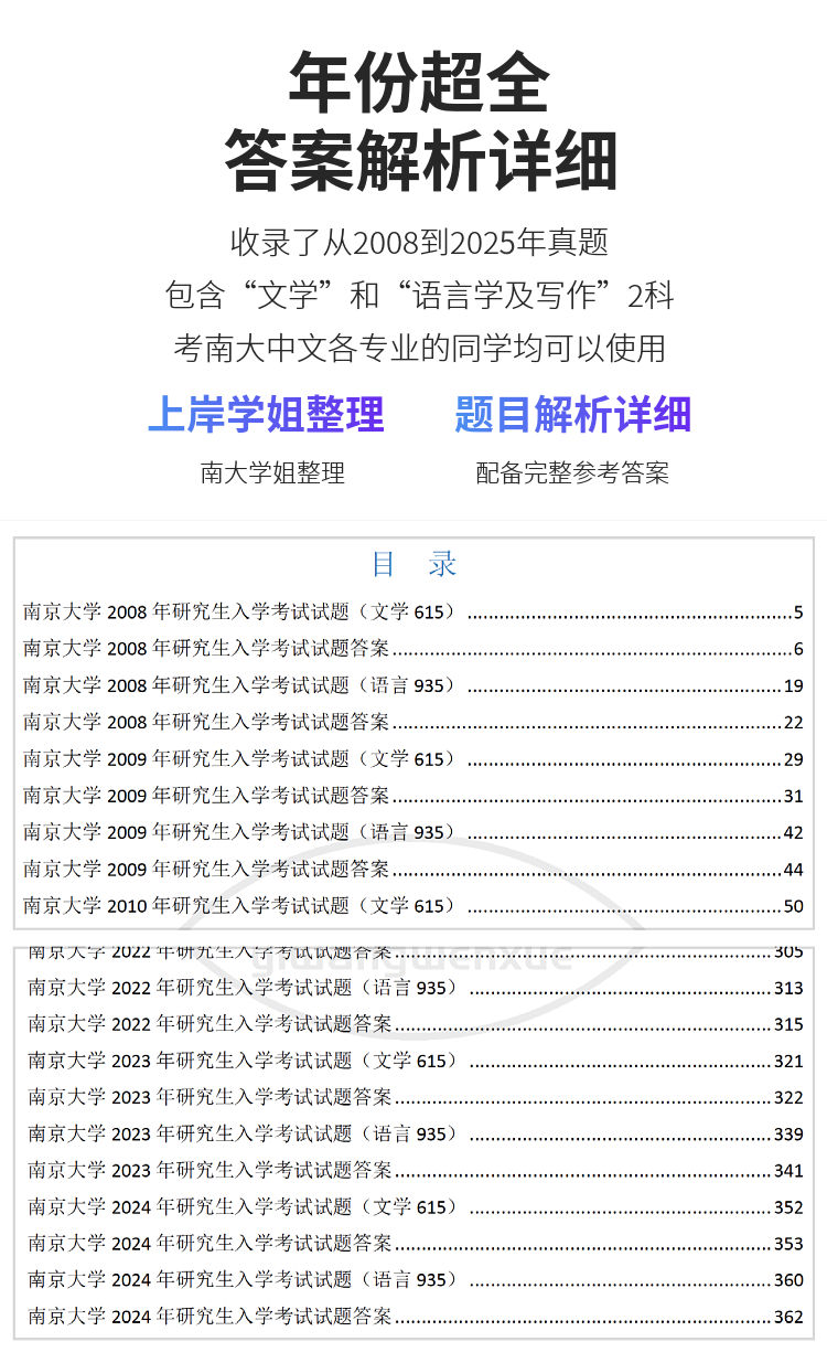 27版南京大学文学考研历年真题及答案详解2008-2026年配备视频课程全年答疑