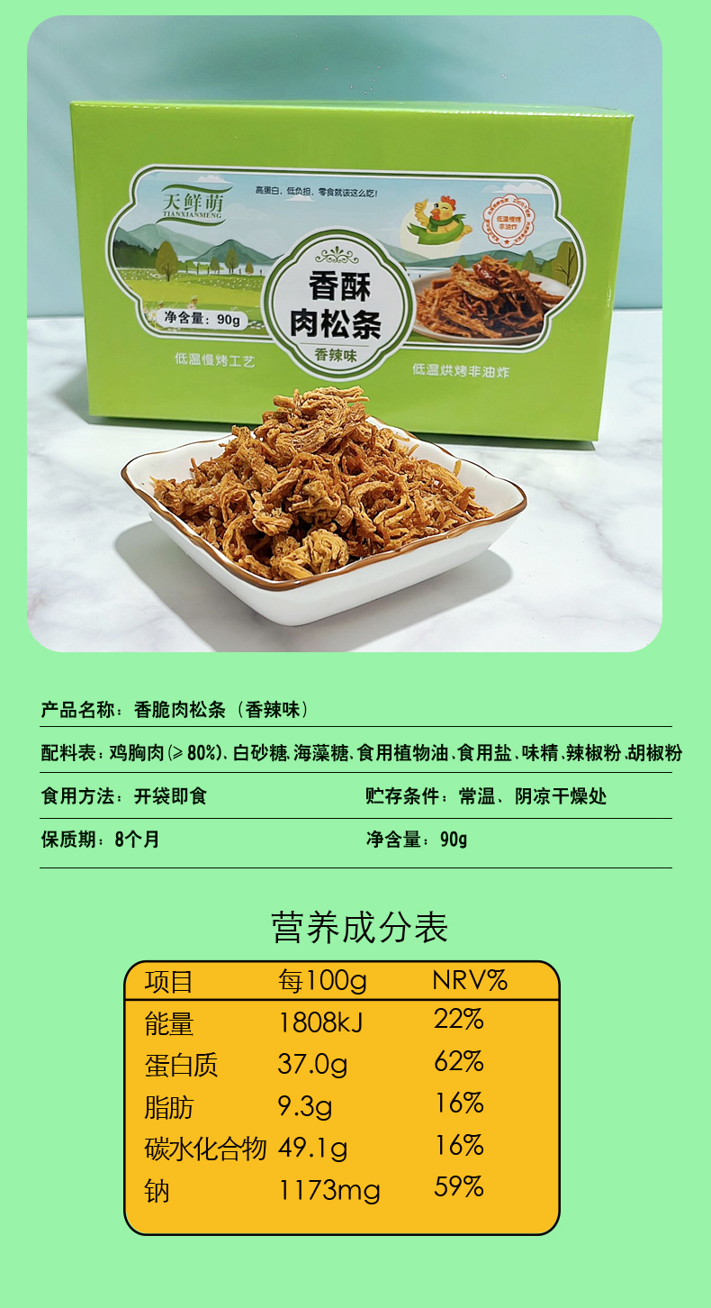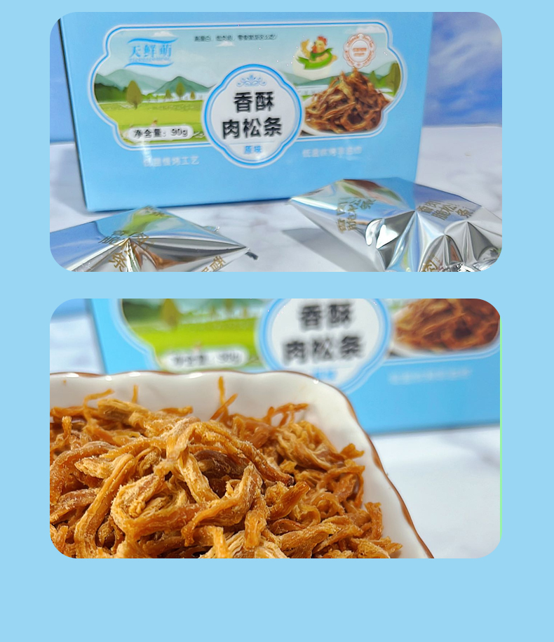 【品名】天鲜萌香酥肉松条 【规格】90g/盒 【生产日期】2025年5月29日 【保质期】8个月 【储存方法】请置于阴凉干燥处,避免阳光直射 【产地】福建厦门 【发货地】福建厦门 【发货快递】邮政 【不发货区域】新疆,西藏,宁夏,港澳台地区不发 【发货时效】48小时,节假日顺延 |