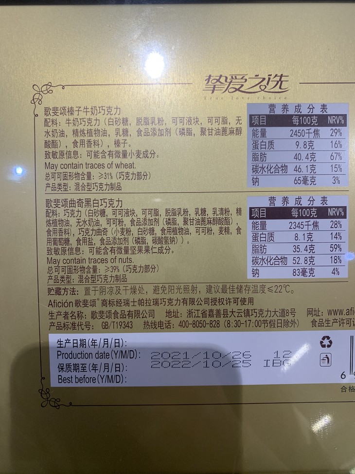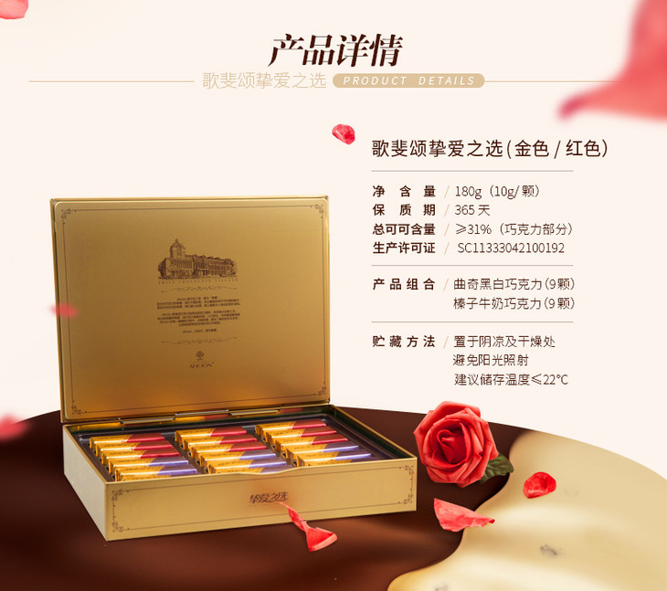 【甜蜜告白】180g歌斐颂挚爱之选(曲奇+榛子)双重口味 金色经典