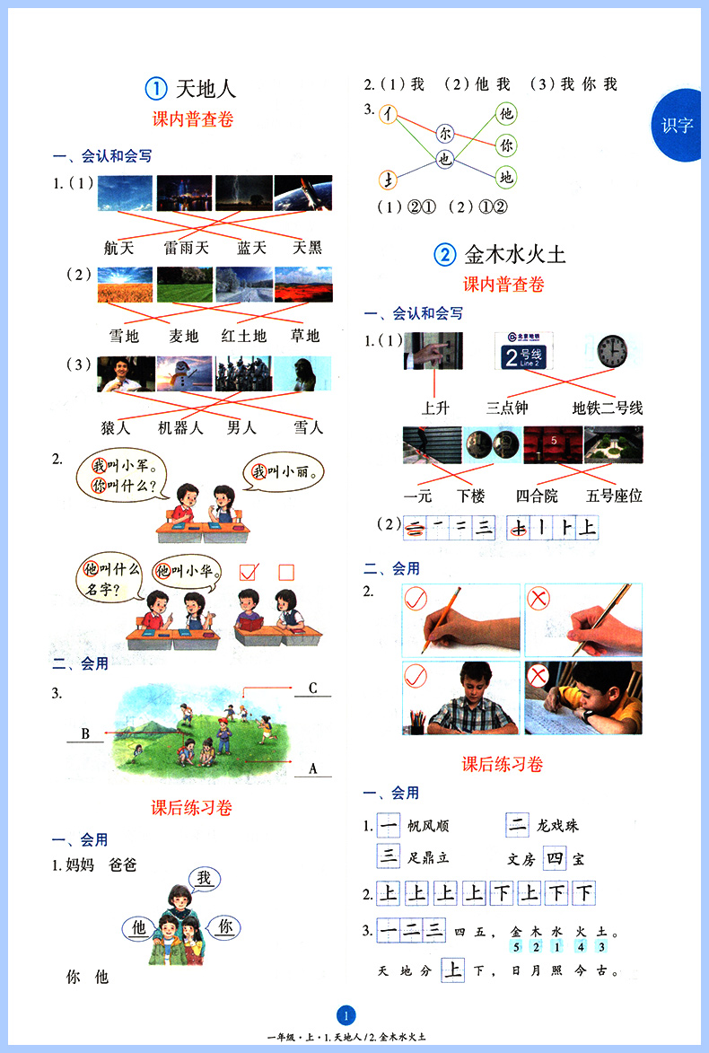 小学生绘本课堂练习书 语文一年级上册第5版 全二册