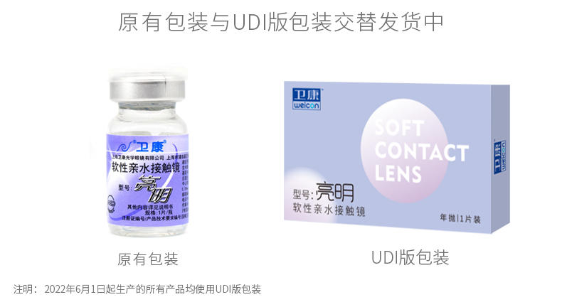 卫康亮明 年抛1片装 透明隐形眼镜 支持高光度(新老包装随机发)