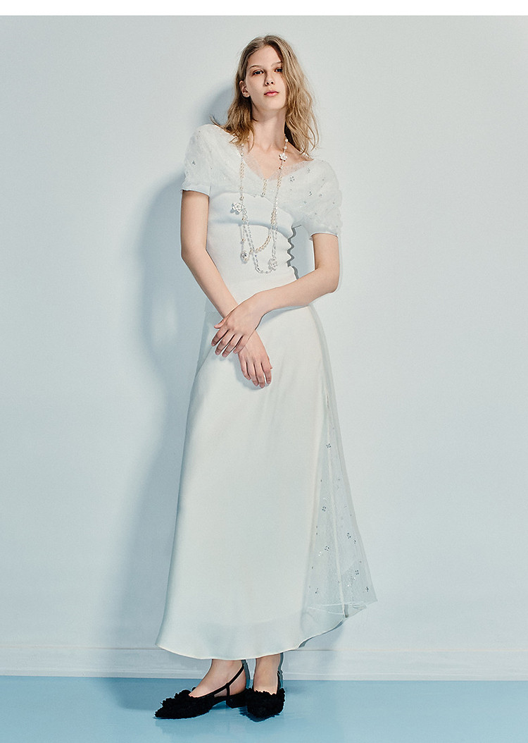 精致浪漫感网纱堆褶针织衫25夏款气质感上衣女(货号:MF86SW002A1001)