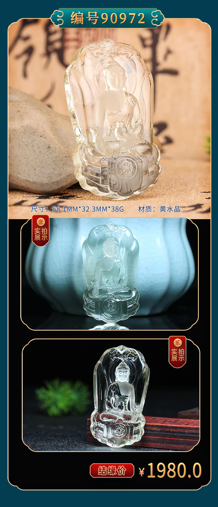 老元吉【白水晶大医王佛】吊坠