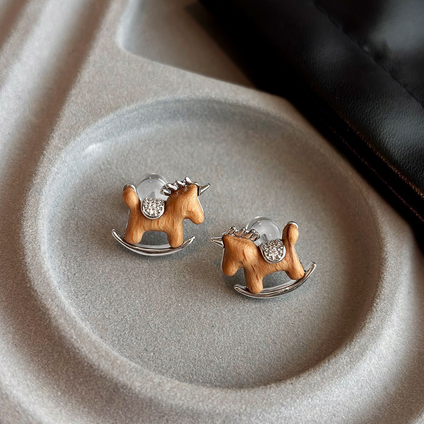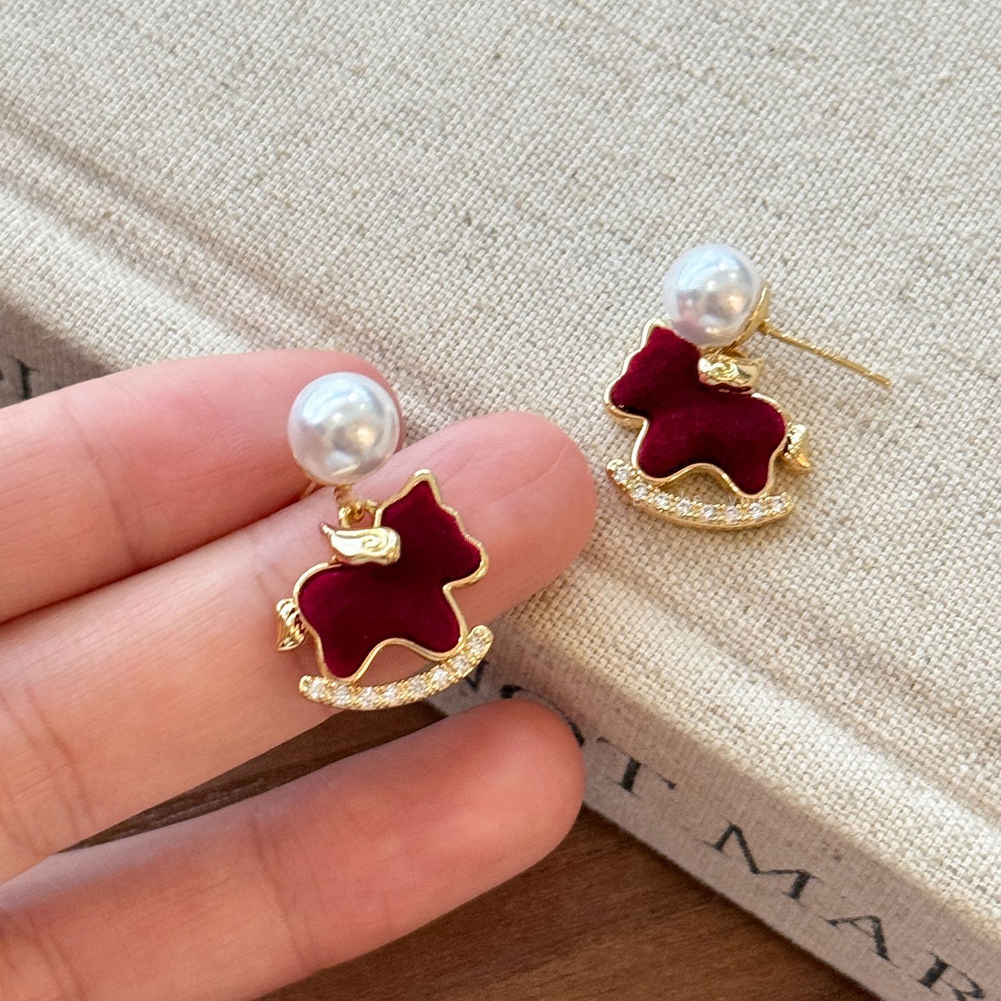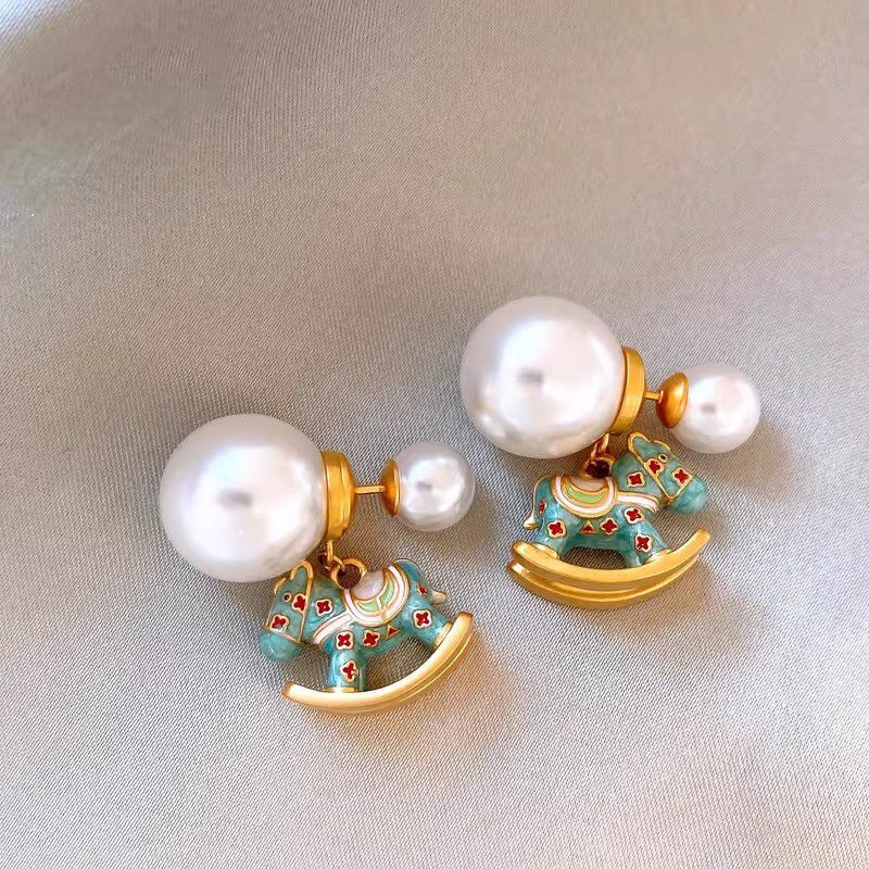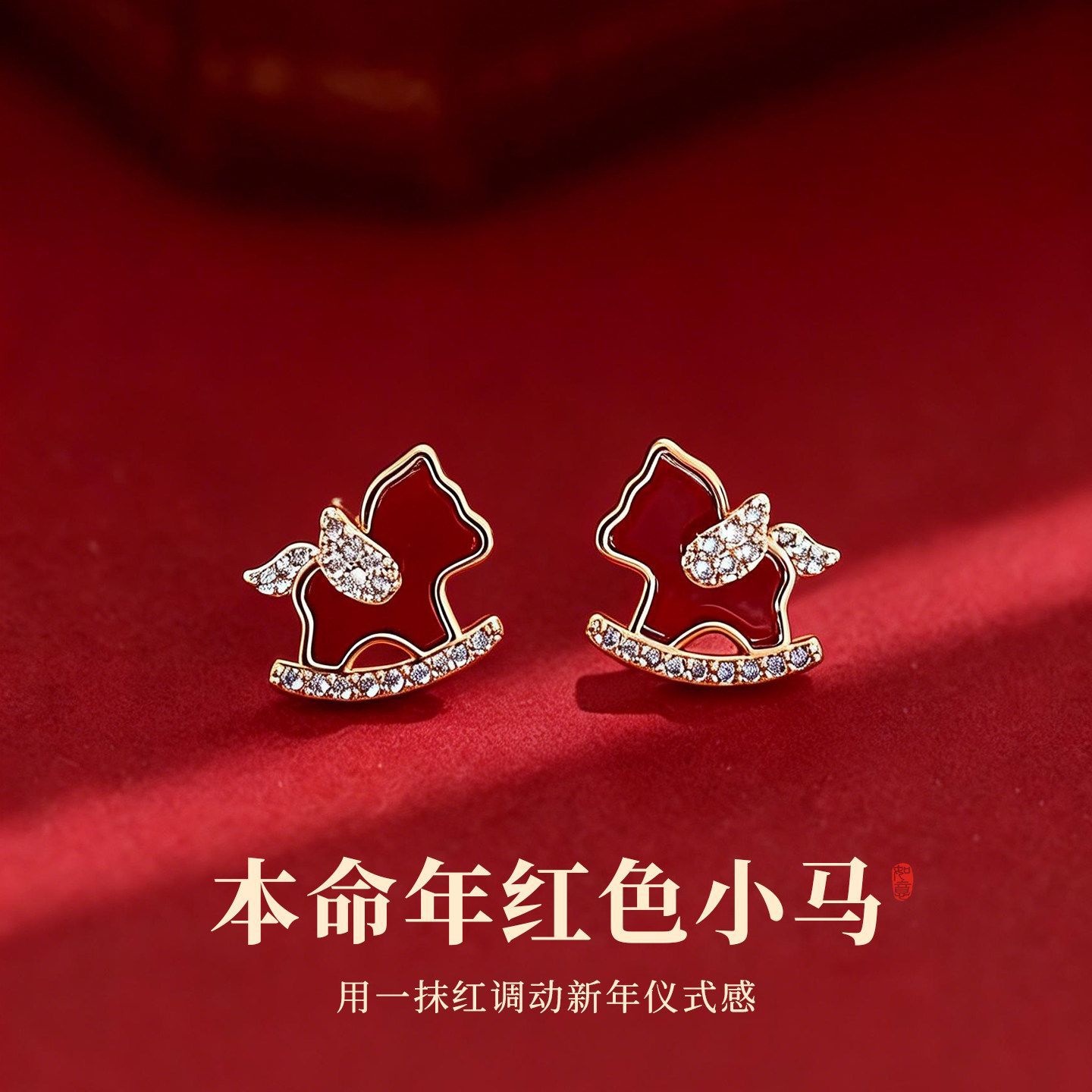 【本命年红色小马❗️萌宠送福来】银针镶钻红色植绒小马珍珠耳钉轻奢高级感耳环时尚气质百搭耳饰女。jc
