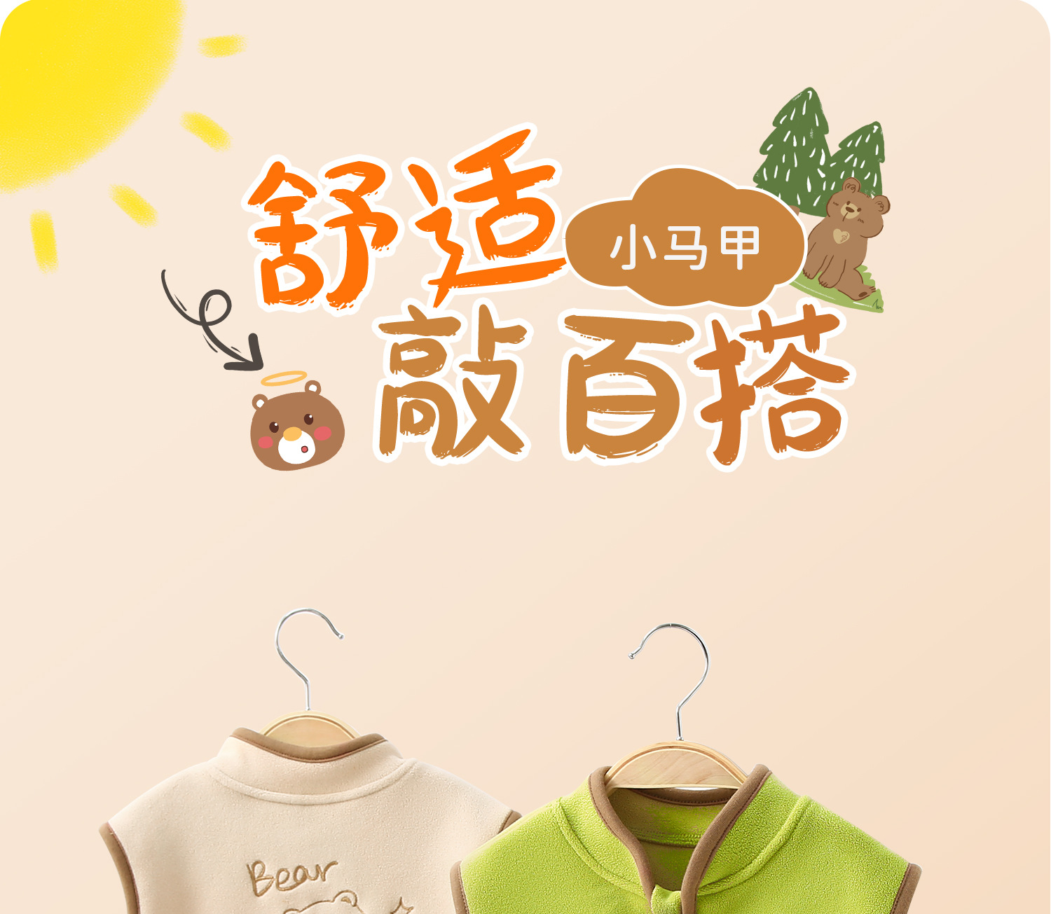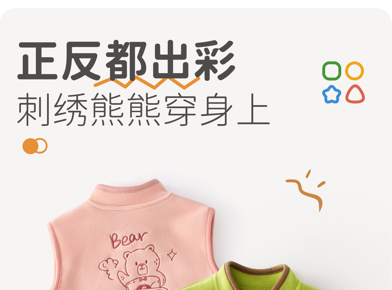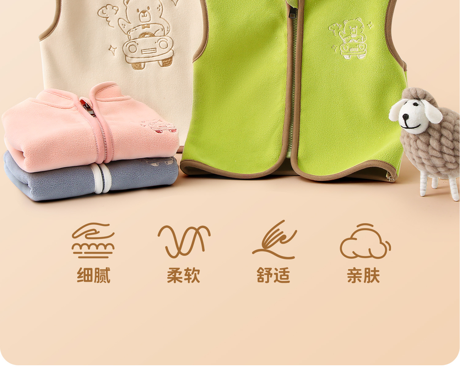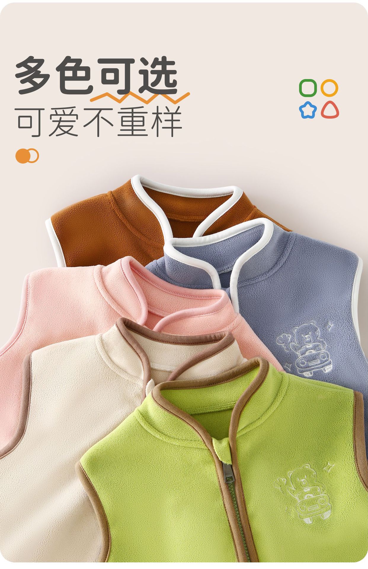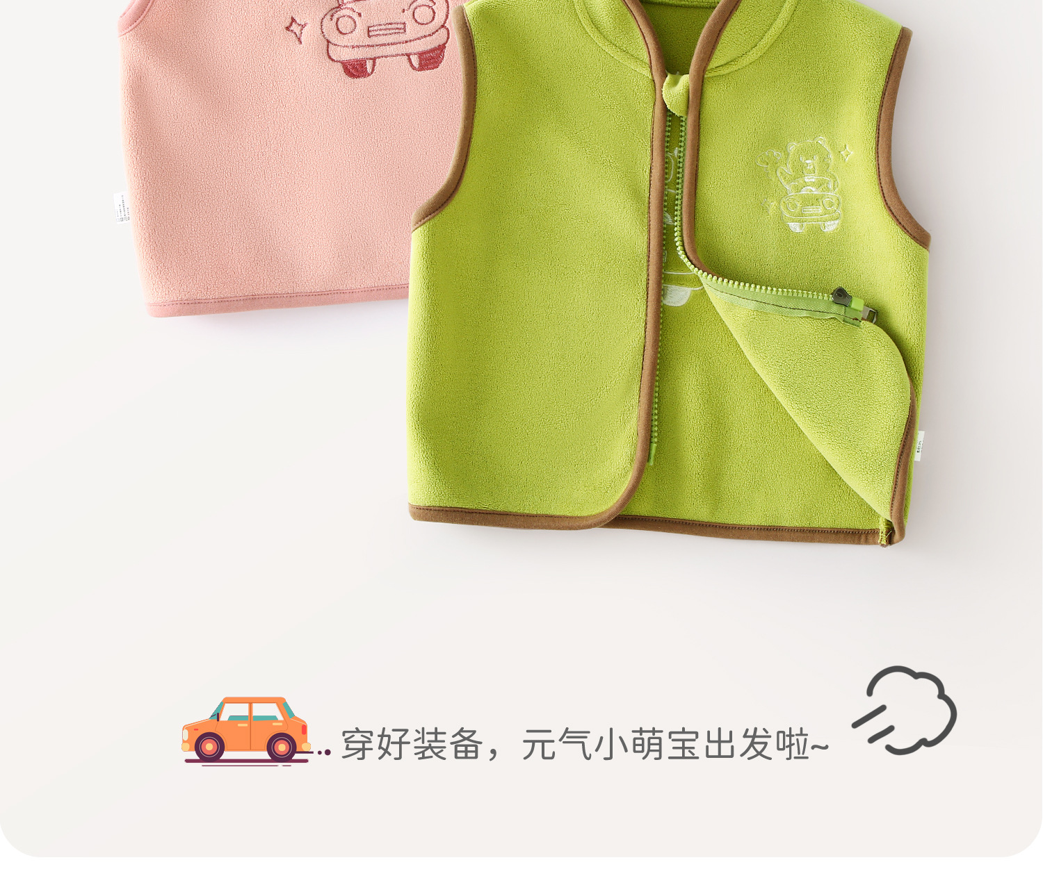 【正反都出彩,刺绣熊熊穿身上】春秋款儿童马甲 宝宝背心 婴幼儿上衣 秋季保暖坎肩 摇粒绒婴儿马夹外套-QQ