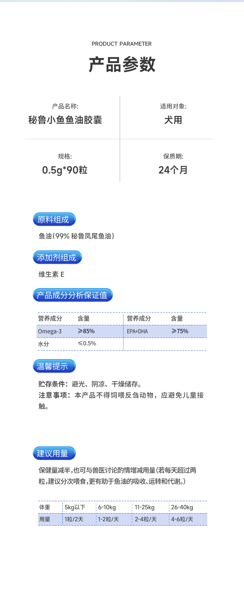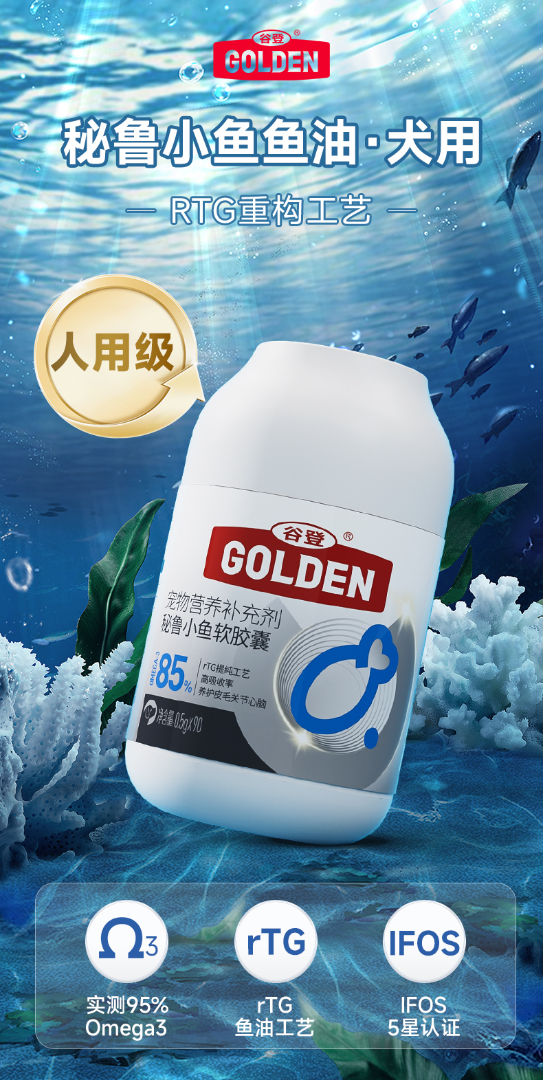 【下单即送微量元素1瓶】谷登秘鲁小鱼鱼油软胶囊(犬用)0.5g*90粒