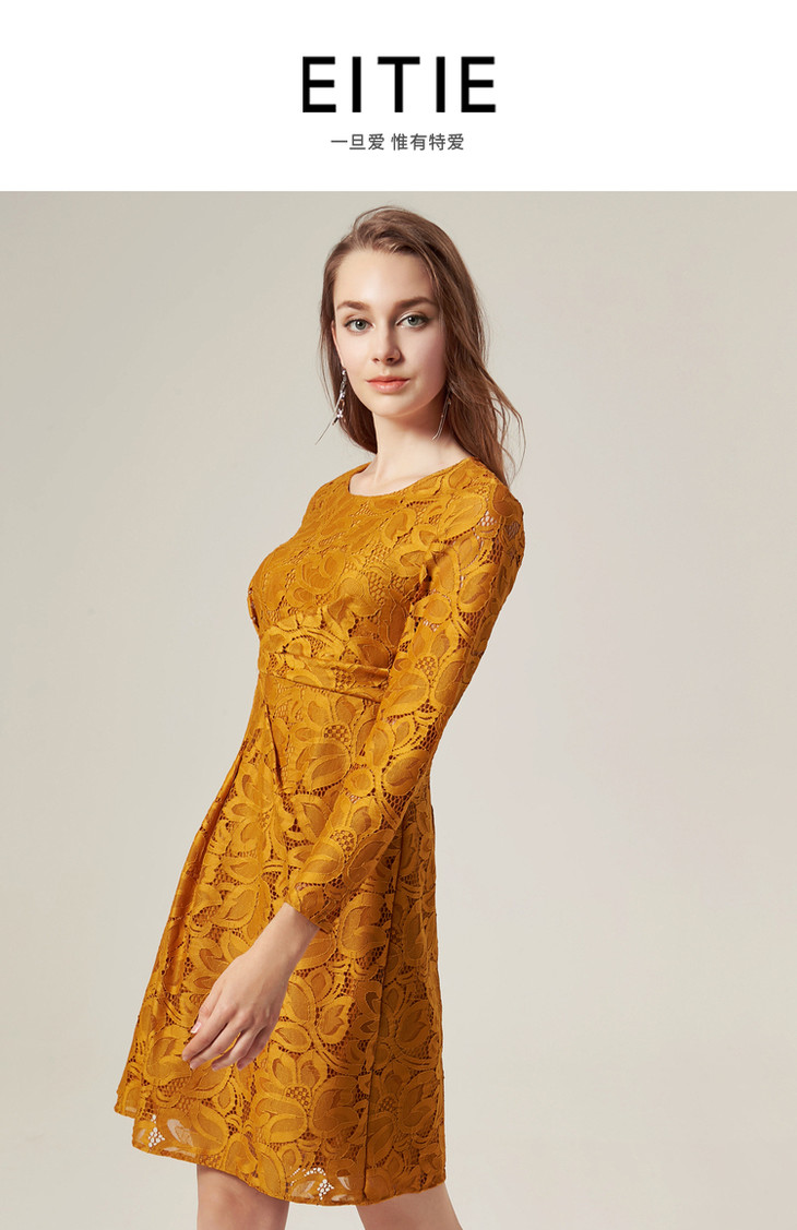 EITIE爱特爱品牌女装时尚碎花长袖蕾丝连衣裙修身短裙5807505