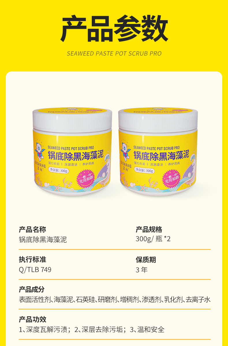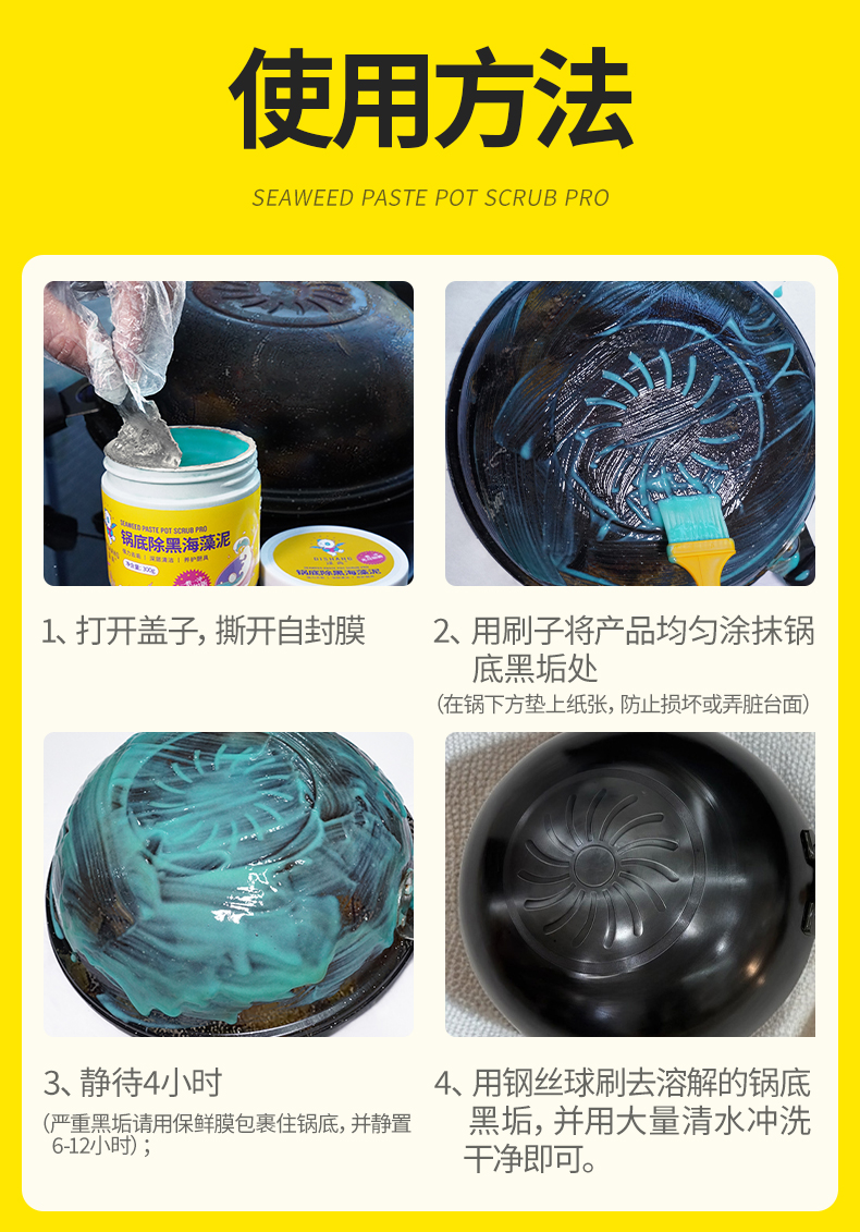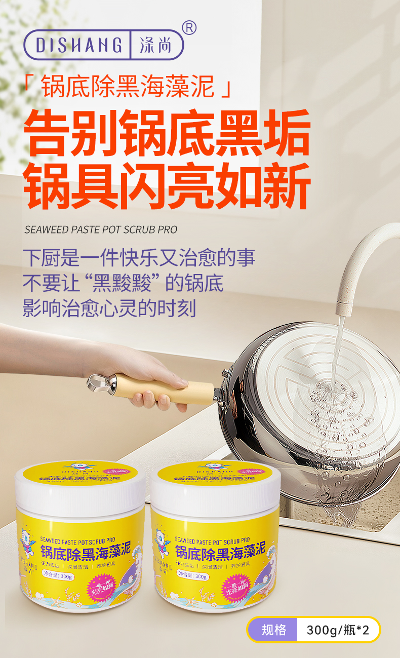 涤尚锅底除黑海藻泥2瓶(赠刷子+手套)