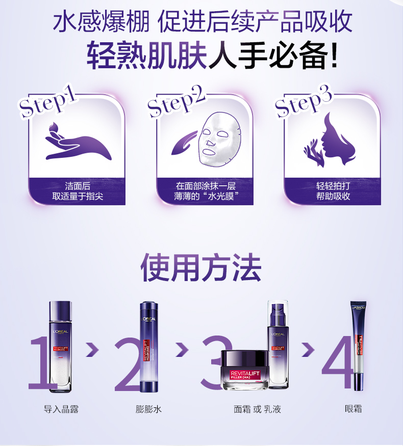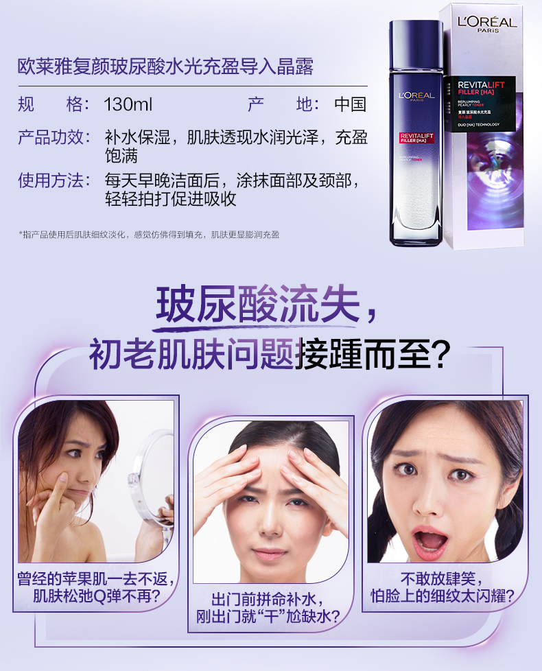 欧莱雅复颜玻尿酸水光充盈导入晶露130ml