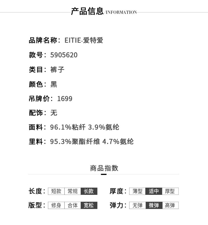 EITIE爱特爱夏季新款时尚通勤简约干练职业显瘦微喇裤长裤女5905620
