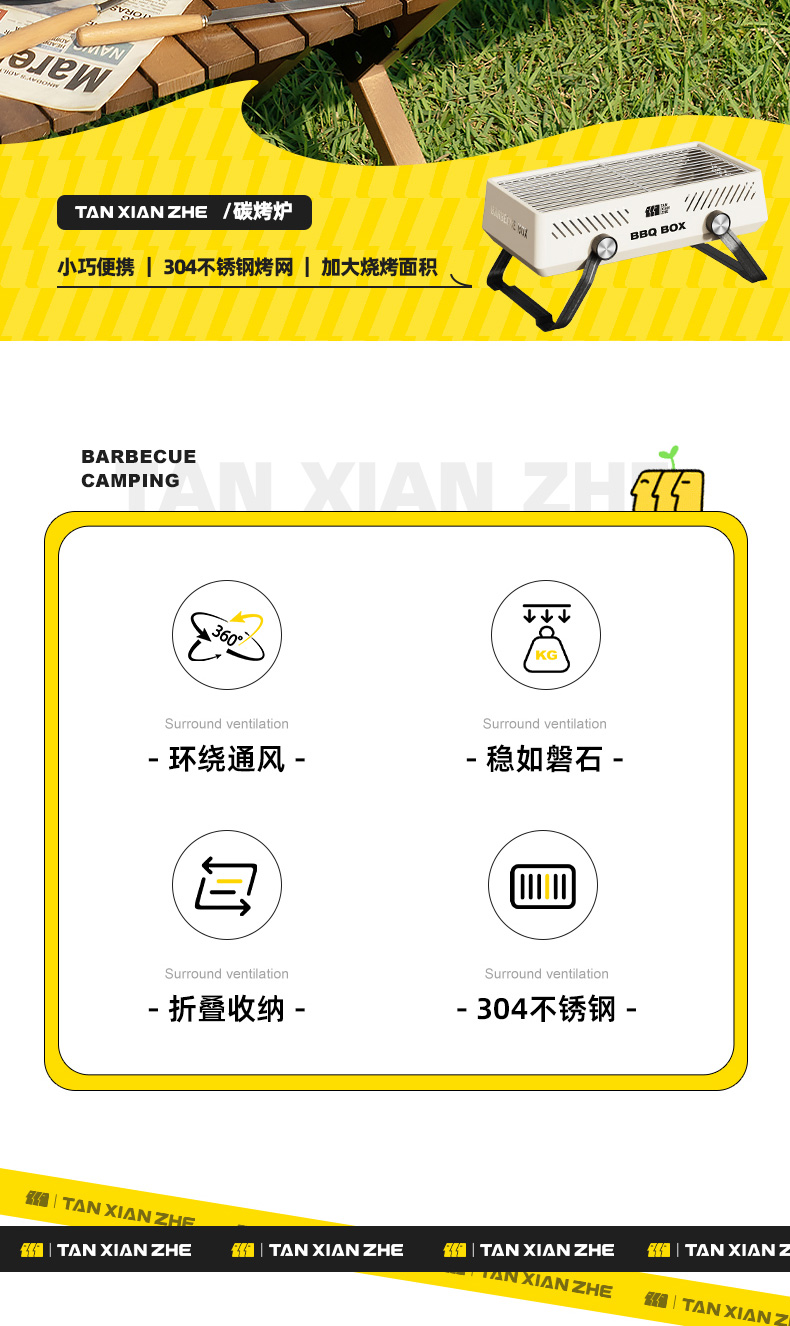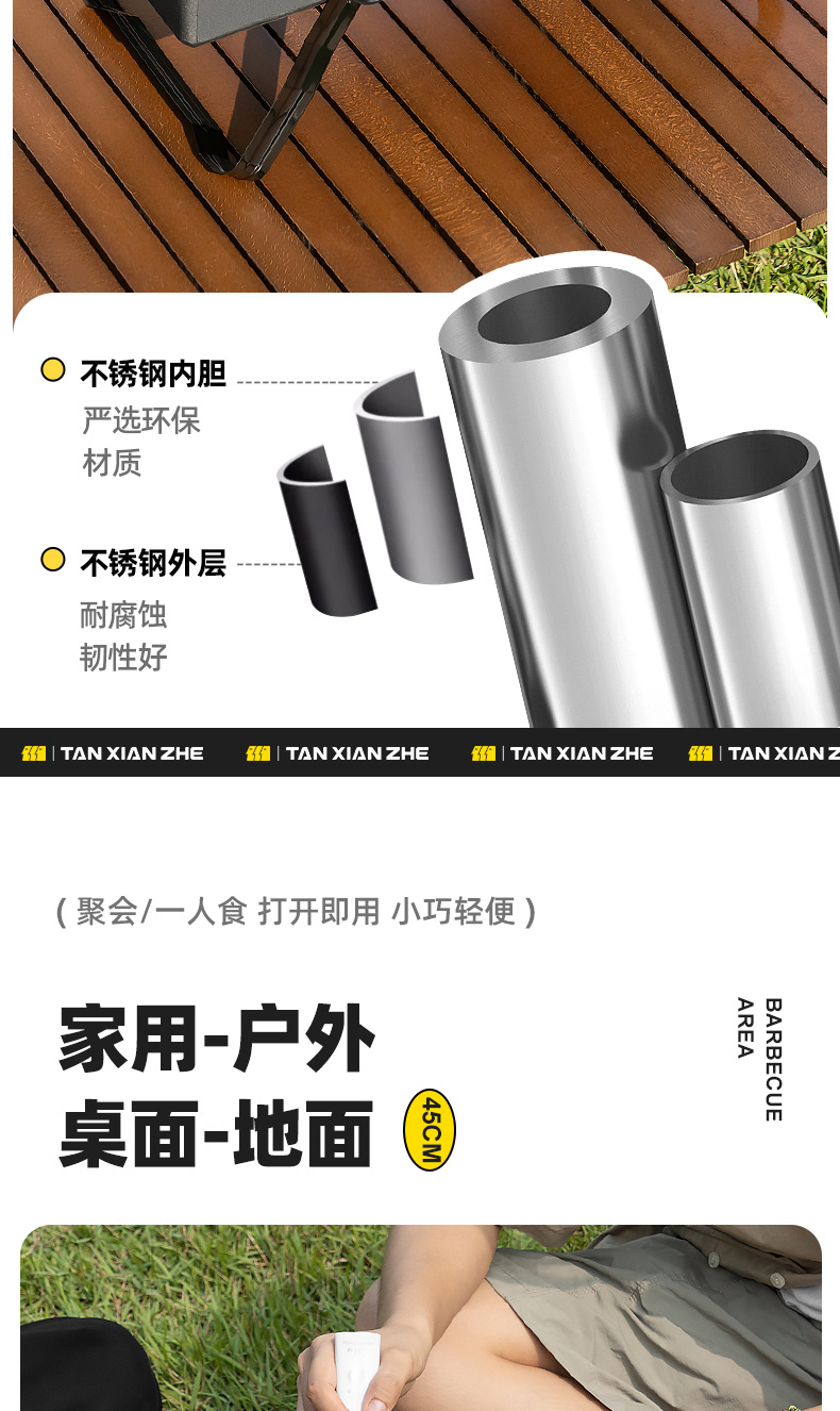 【304食品级不锈钢烤网!炉腿秒变提手】无需拆卸,打开即用,户外露营围炉煮茶烤火炉套装烧烤炉烤架家用户外罐罐奶茶烤炉茶壶。rb
