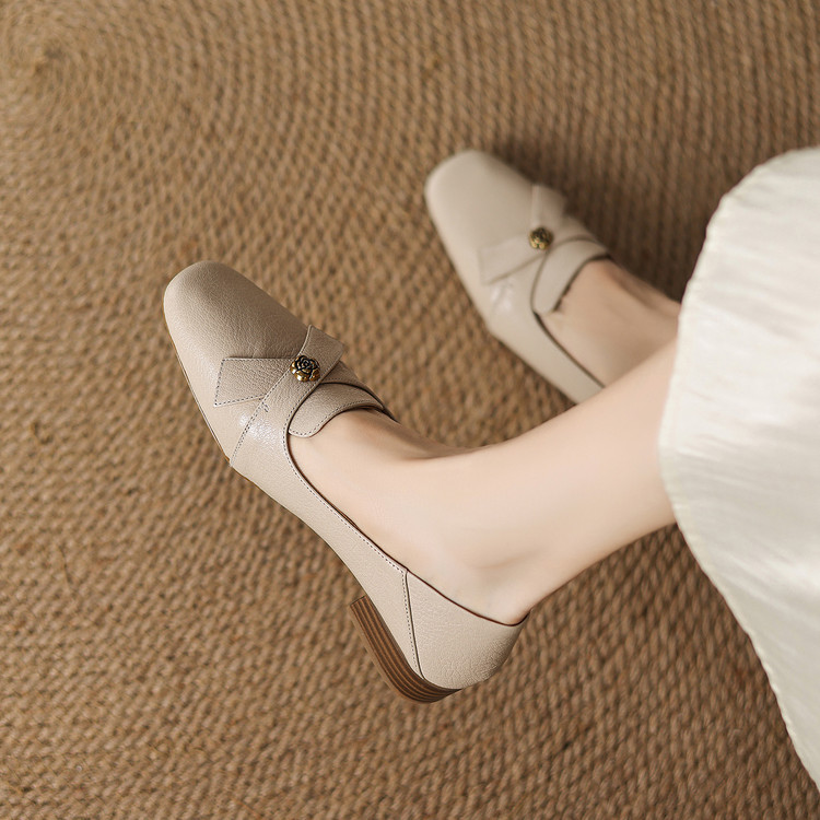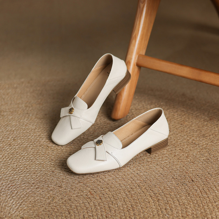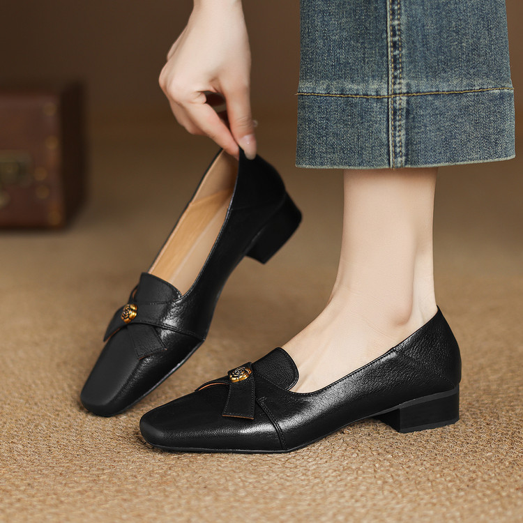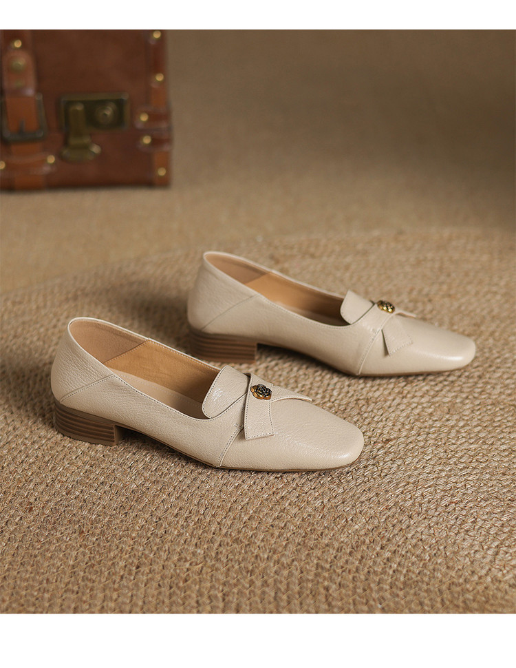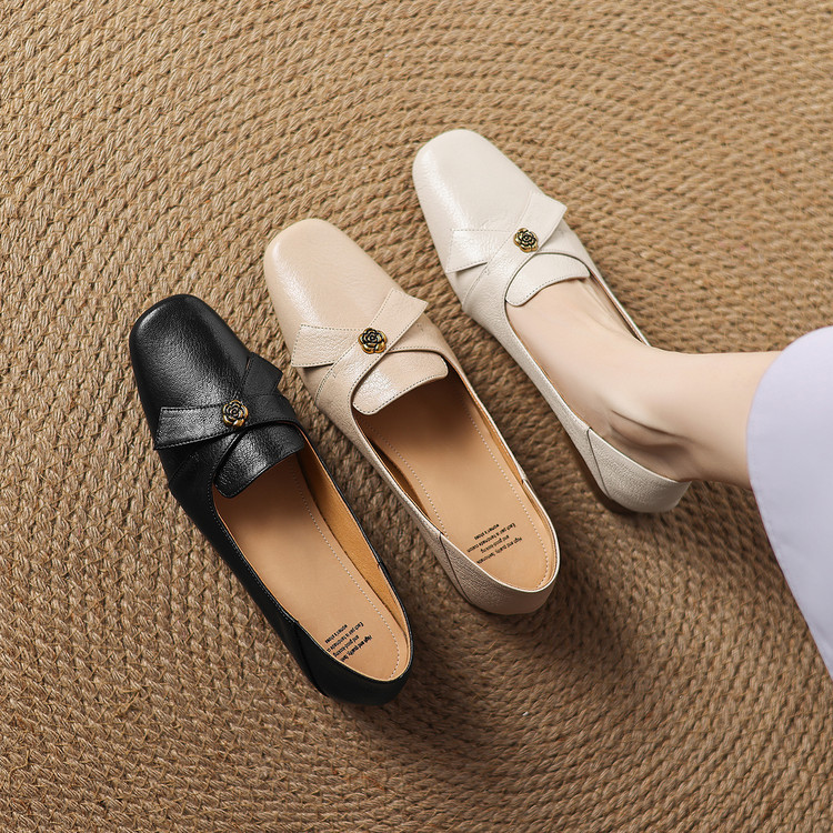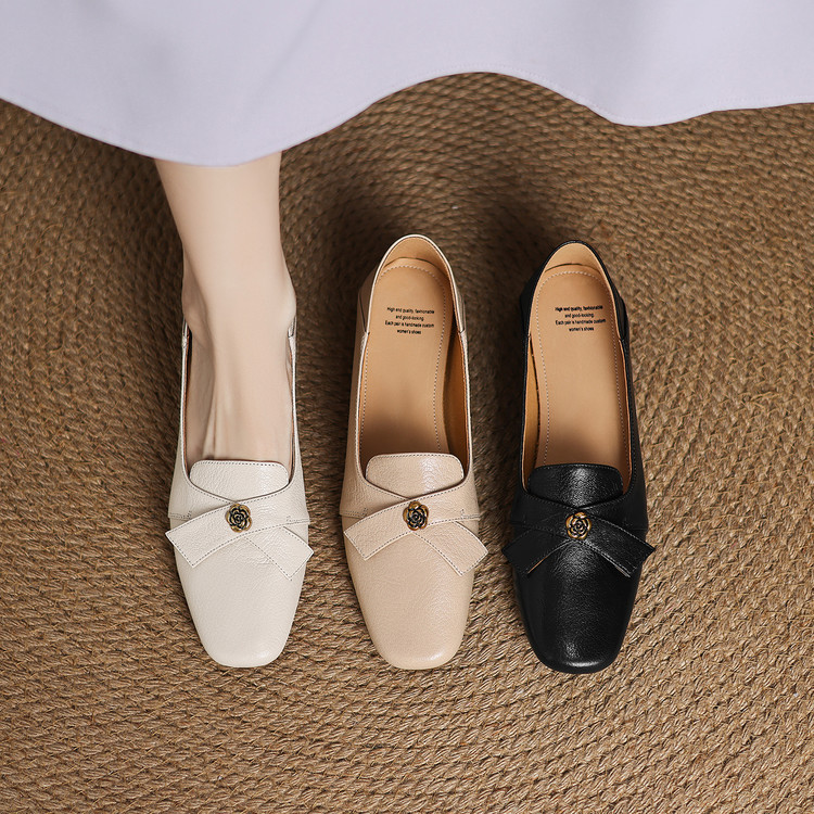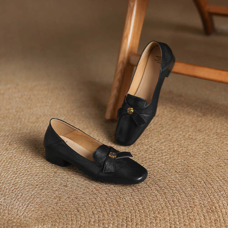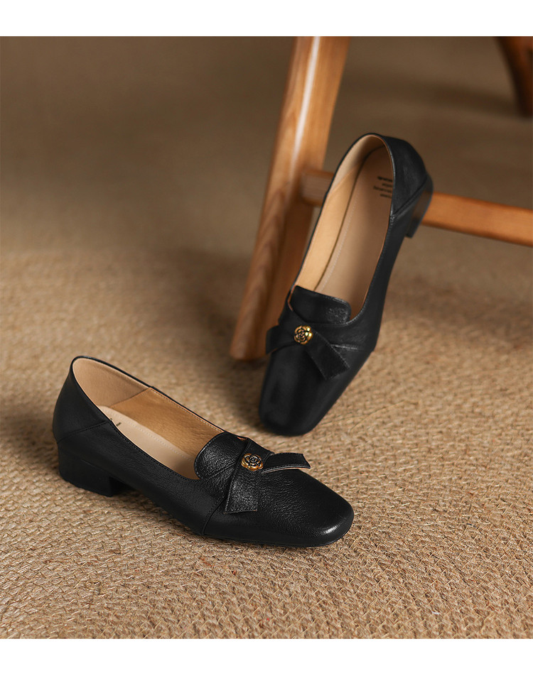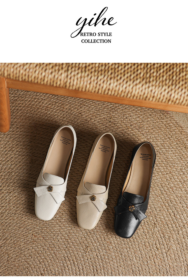 【预售5天】复古山茶花软底乐福鞋女方头蝴蝶结气质玛丽珍鞋百搭通勤单鞋NGMZR&72-159