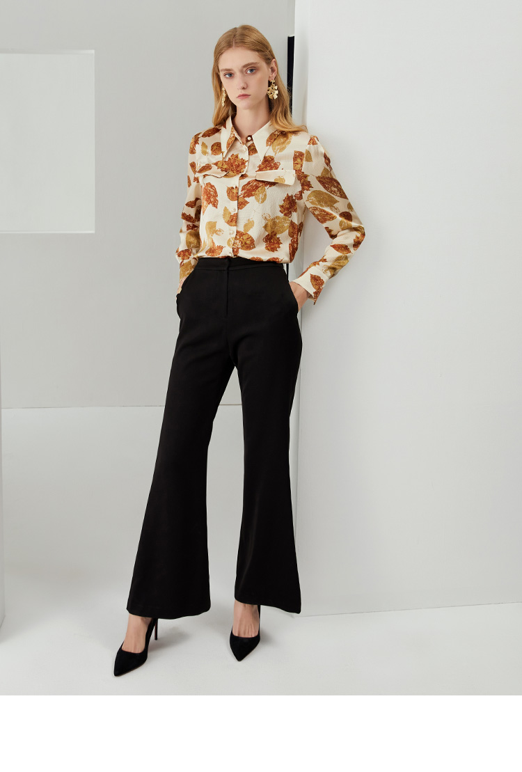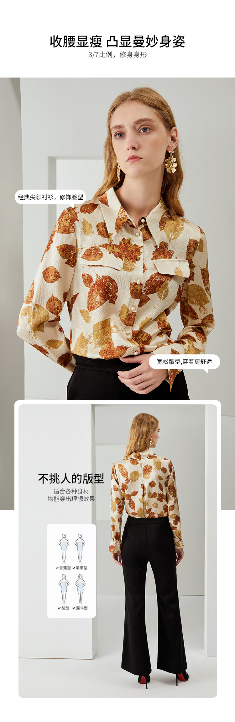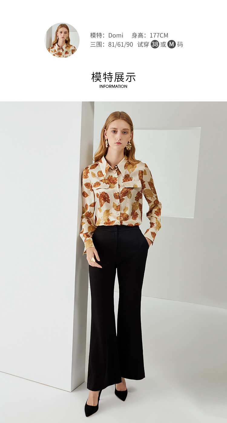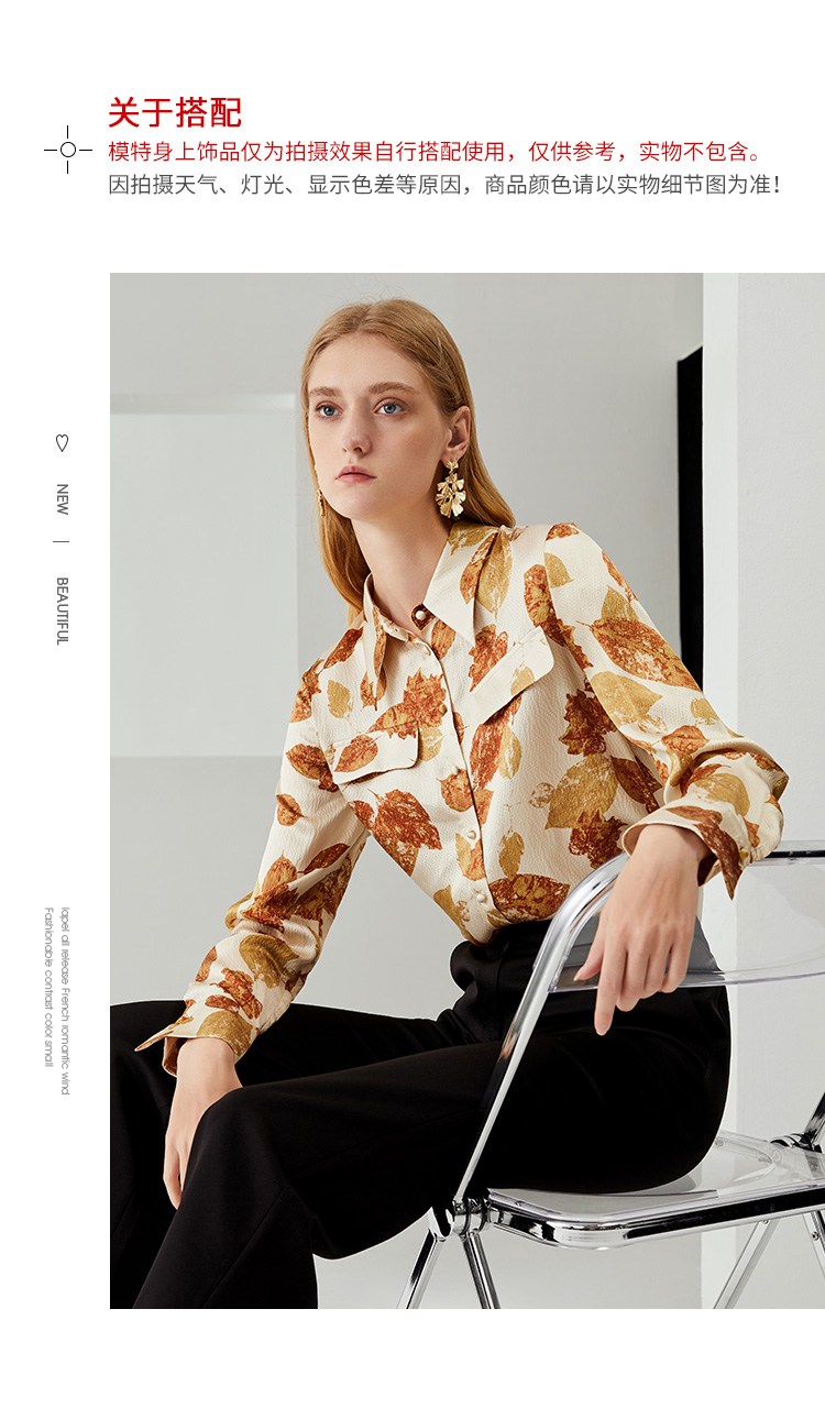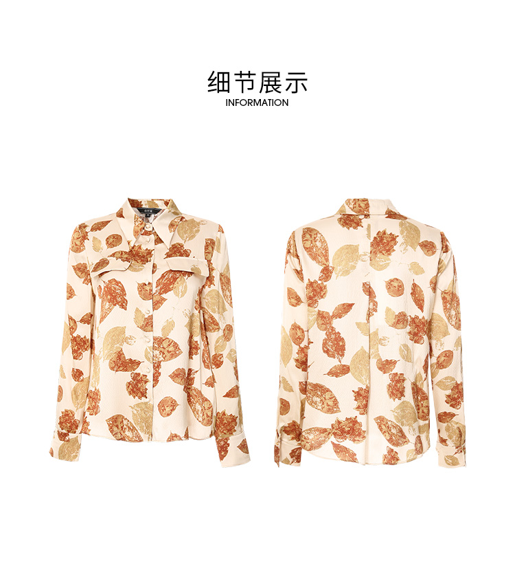 EITIE爱特爱秋季新款100%桑蚕丝女装宽松舒适枫叶印花衬衫上衣6709410