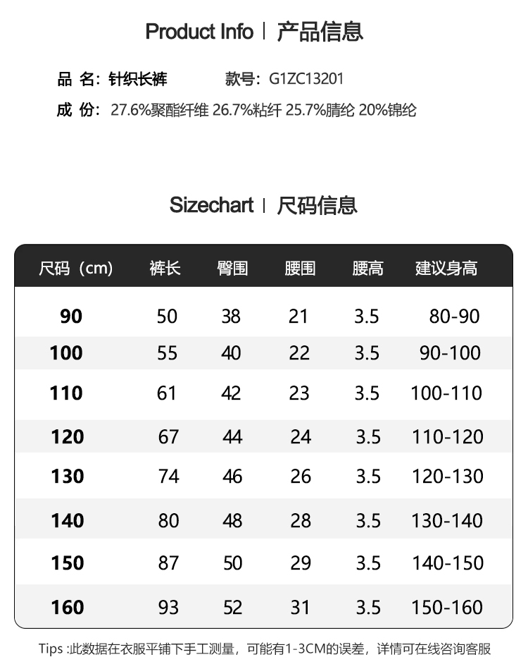【辛巴娜娜】simbanana【大童】新款女童慵懒宽松嘻哈风哈伦萝卜裤 休闲长裤