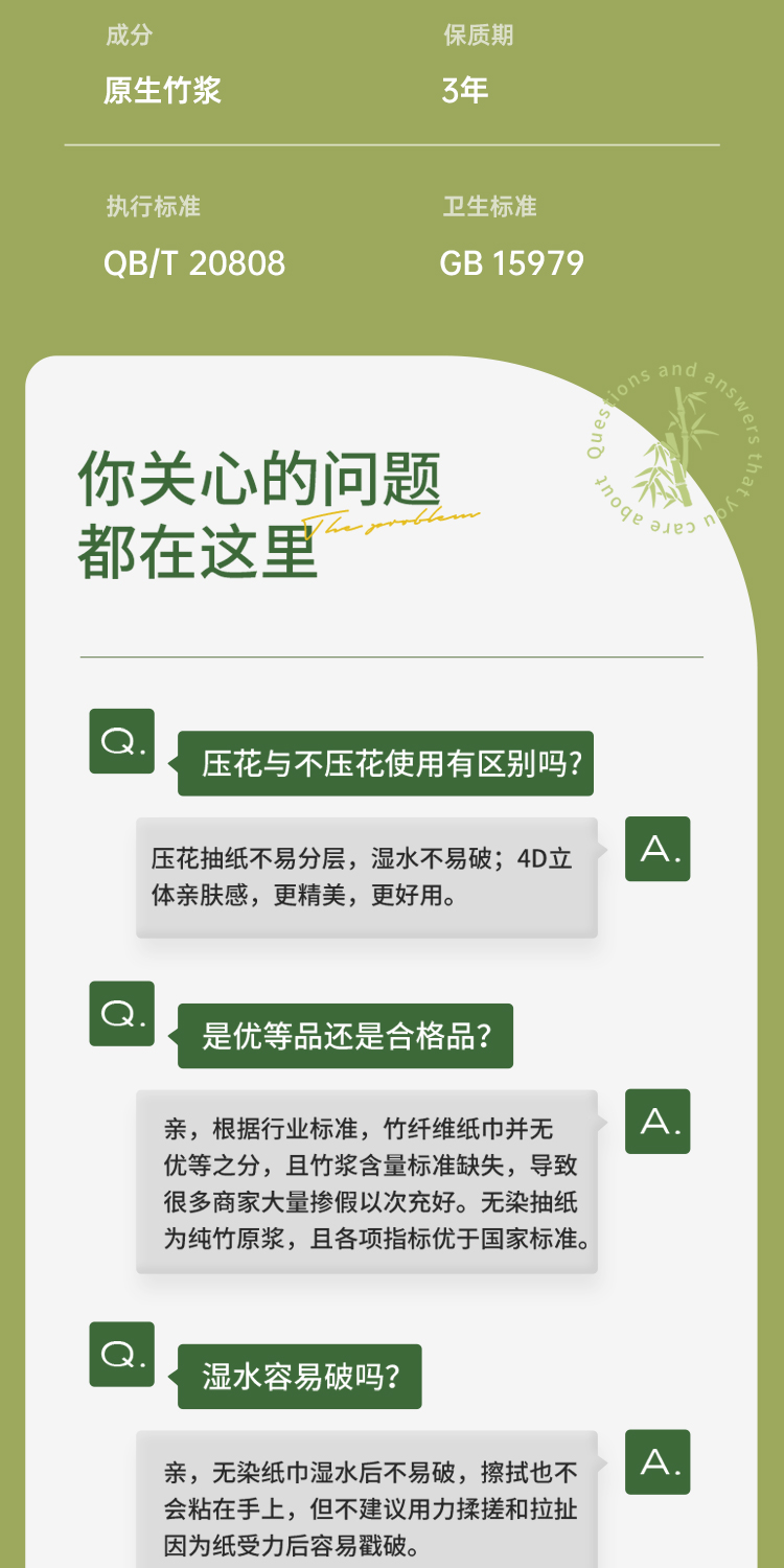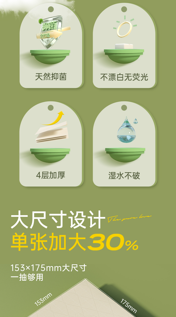 无染竹纤维悬挂式厨房纸巾200抽