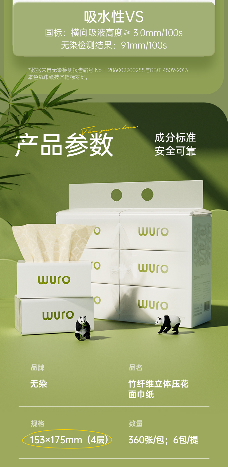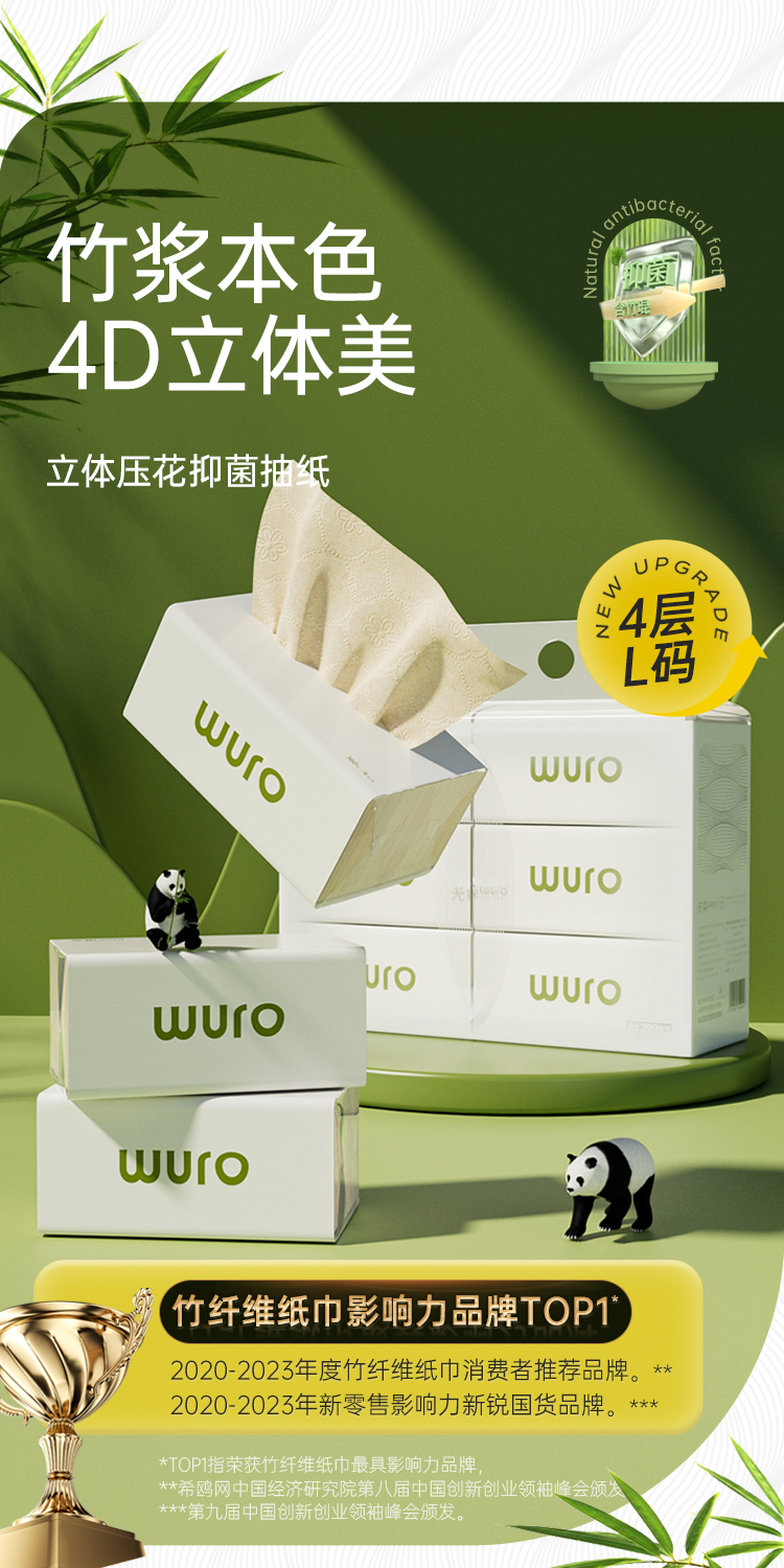 (秒杀专享)无染wuro竹纤维抽纸100抽小码实惠18包/30包/32包/36包