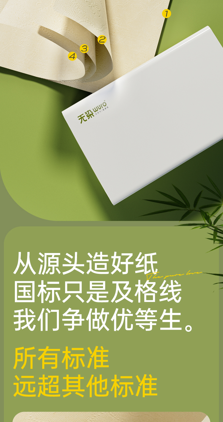 无染WURO竹纤维4层本色立体压花90抽24包抽纸