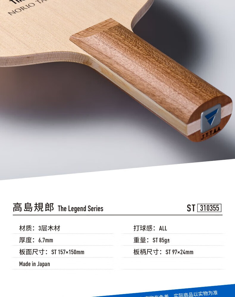 Victas维克塔斯高岛规郎纯木底板乒乓球拍横板削球用310355桧木面材削球板