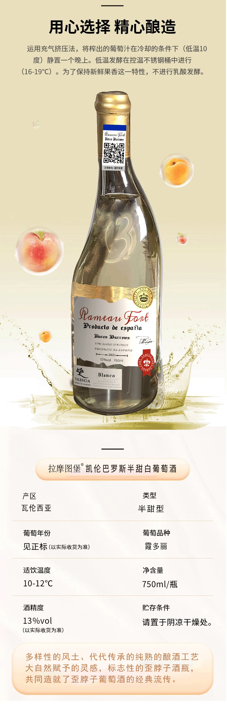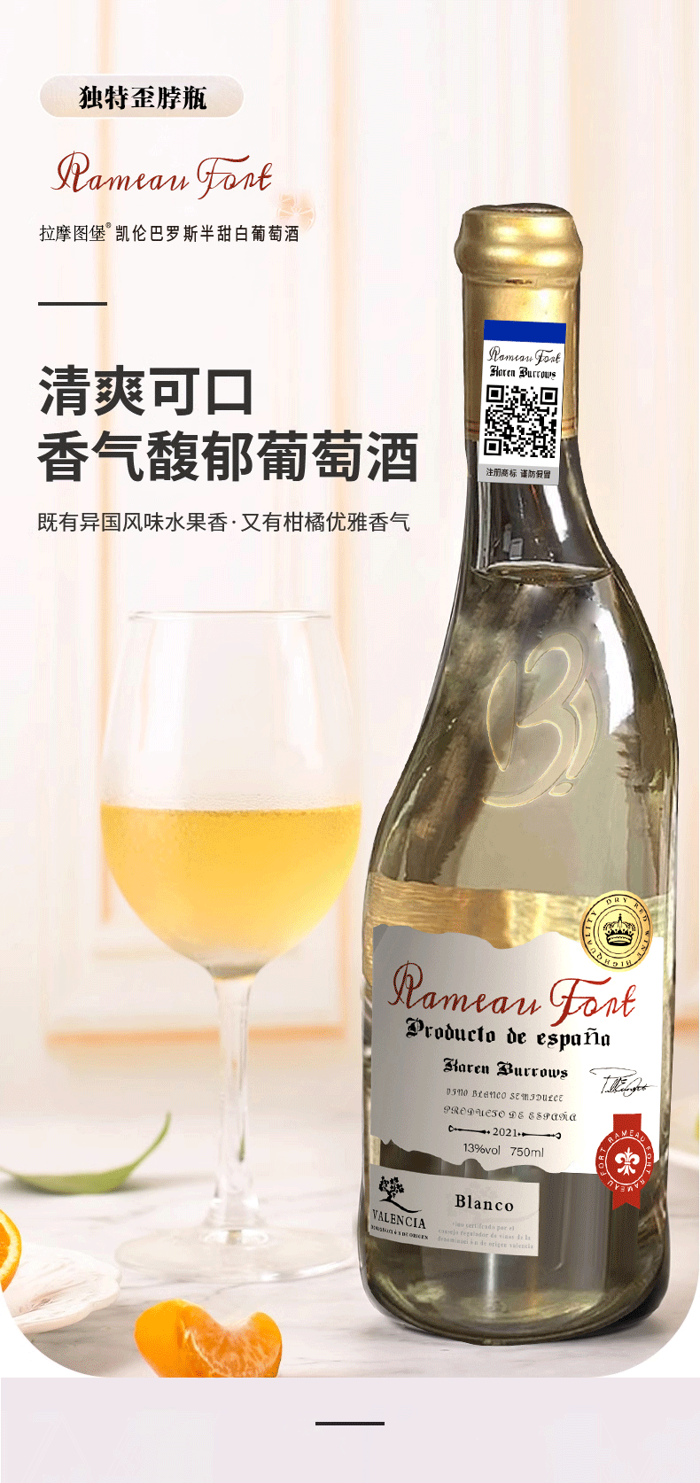 【超值4支装 西班牙原瓶进口 清甜透冰】拉摩图堡·凯伦巴罗斯13%vol半甜白葡萄酒750ml*4支