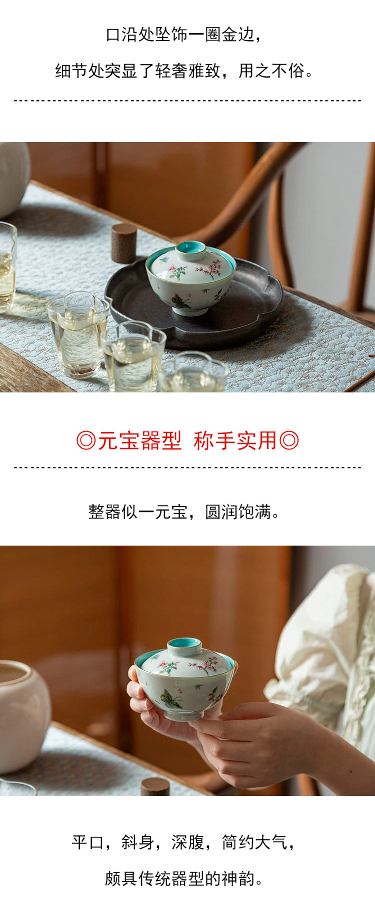 茶香记 粉彩手绘 松石绿花卉 元宝盖碗 轻奢典雅 经典器型