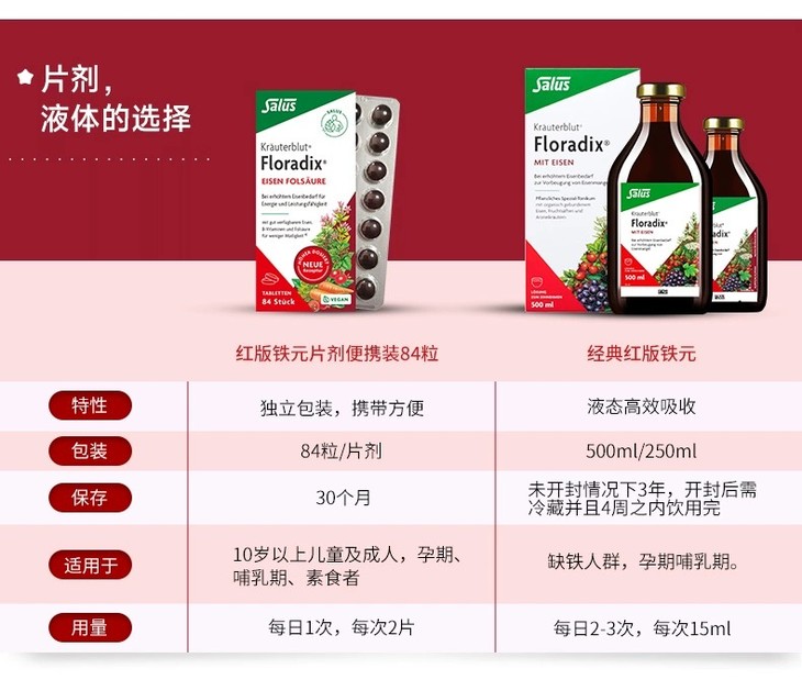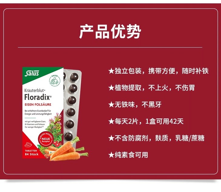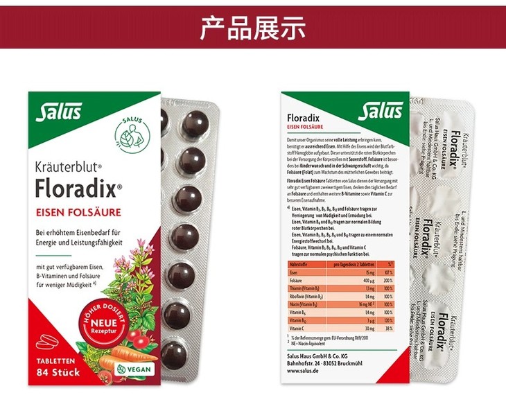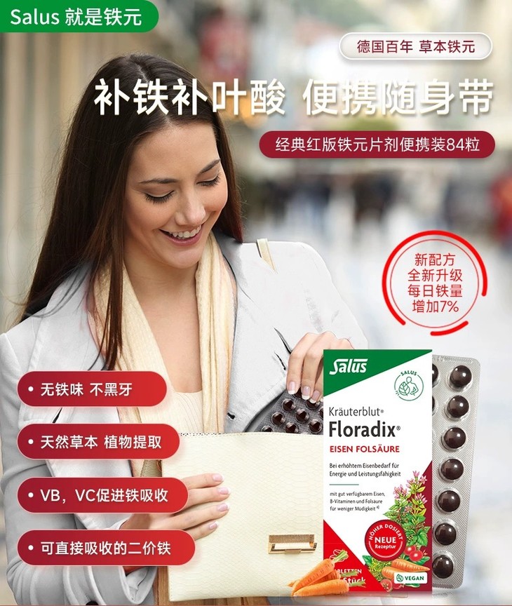 【保税】德国Salus莎露斯原装进口铁元片剂84粒(两种包装随机发货)