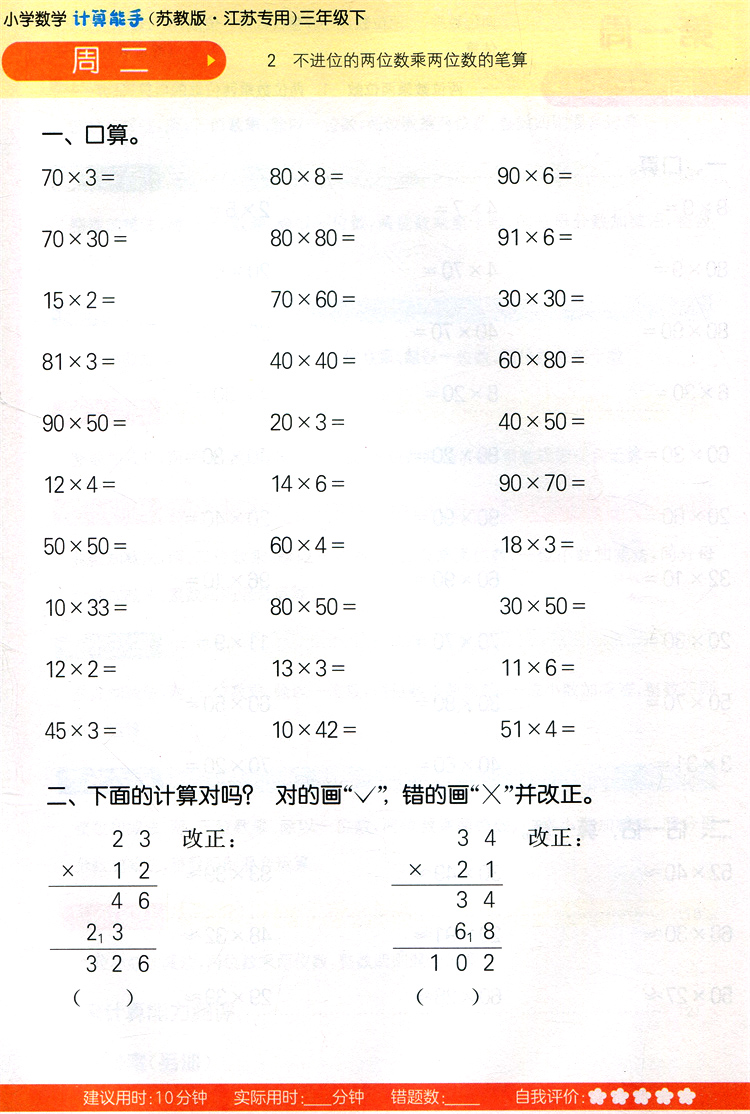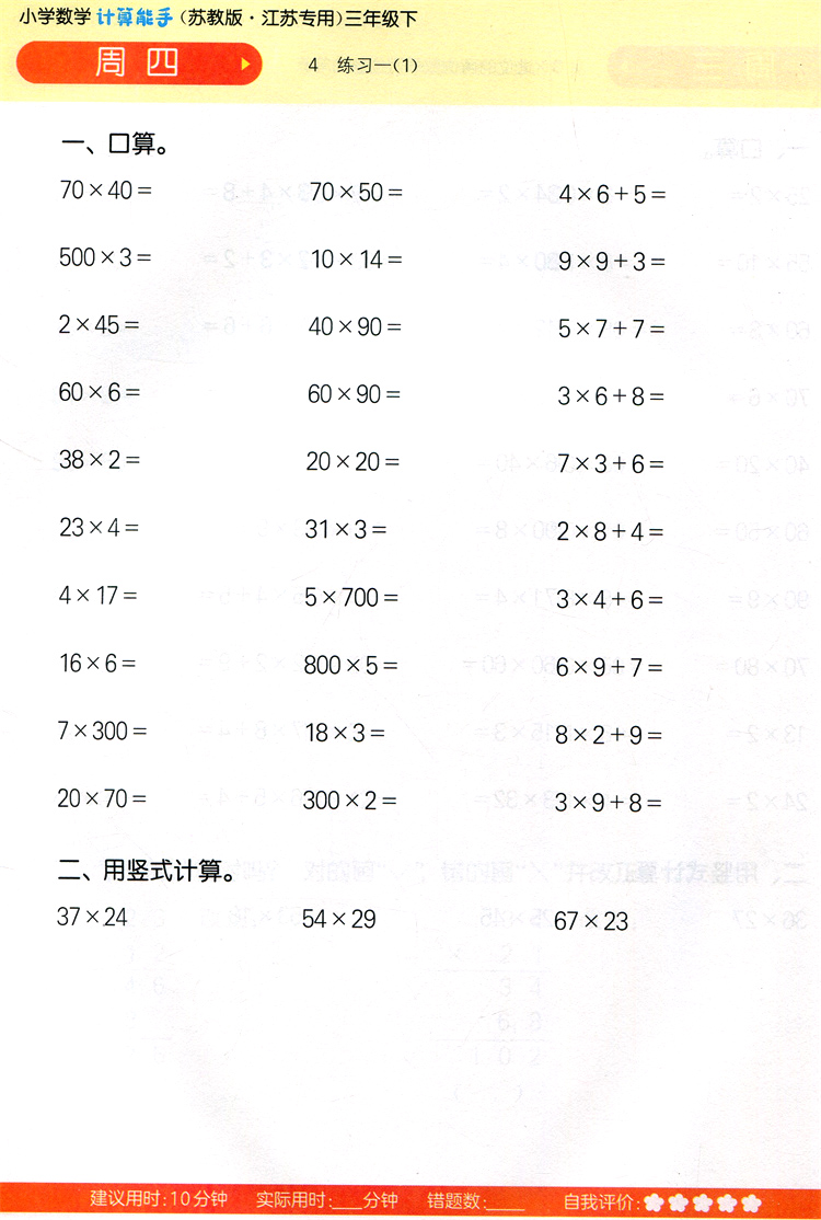 2025年春小学数学计算能手 三年级下册 苏教版3下 口算估算笔算 江苏专用 含答案 朱海峰主编 通城学典 浙江教育出版社