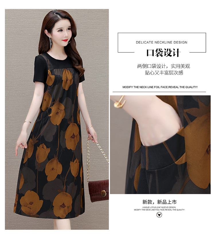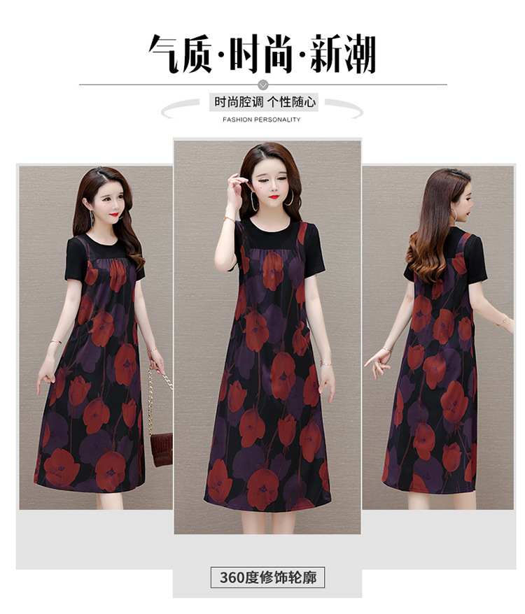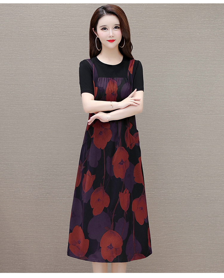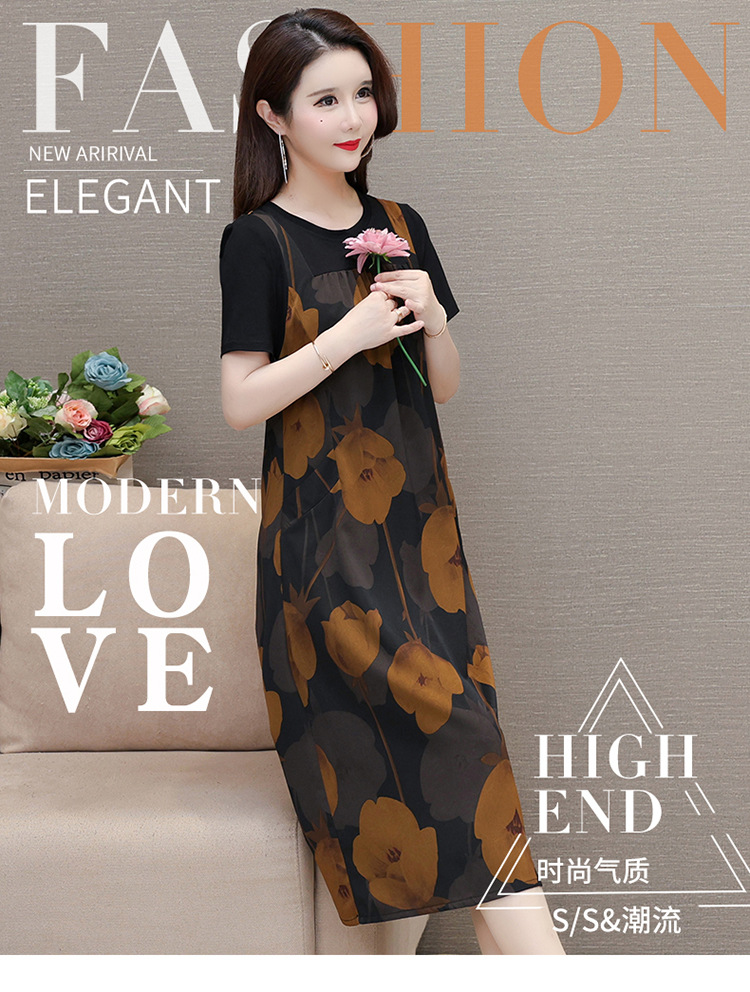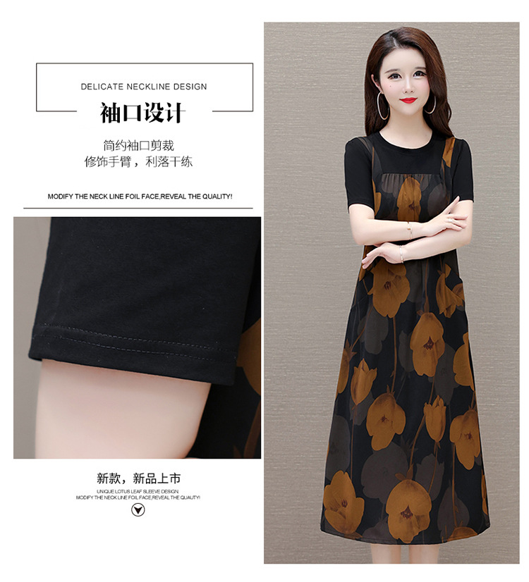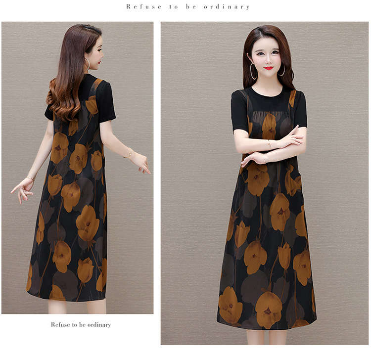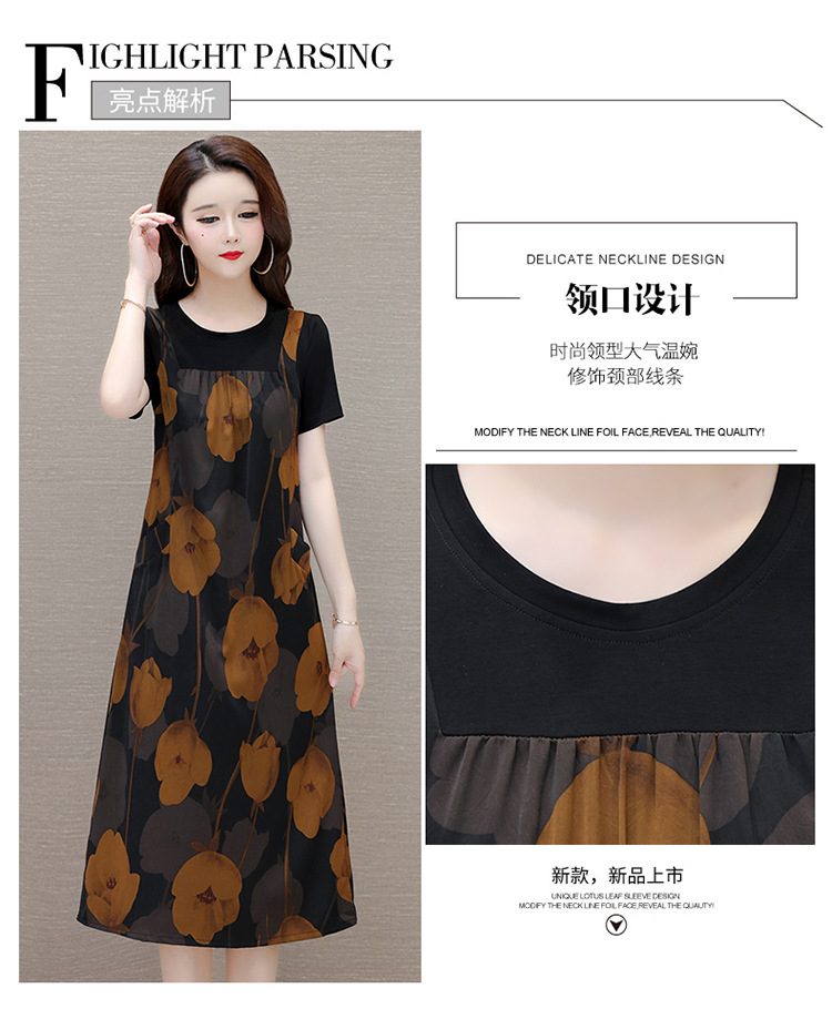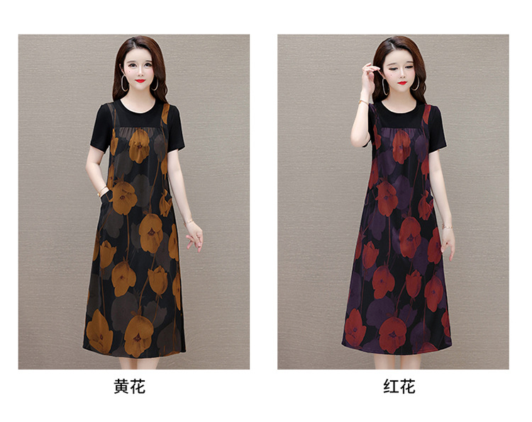 洋气印花中长款,拼结宽松休闲裙QYM- LRX-MJE8846-Y