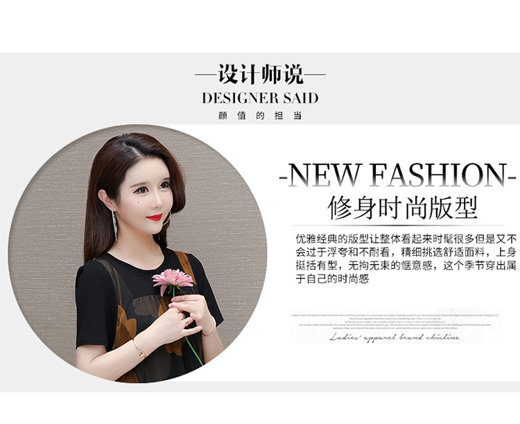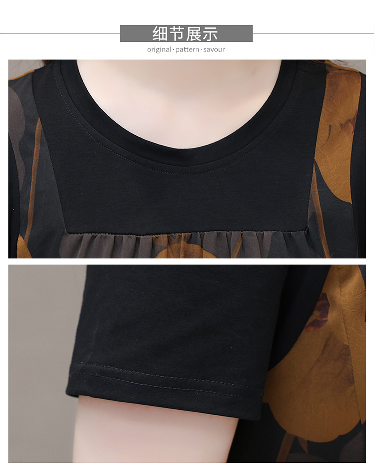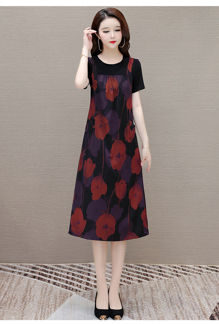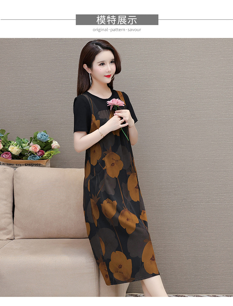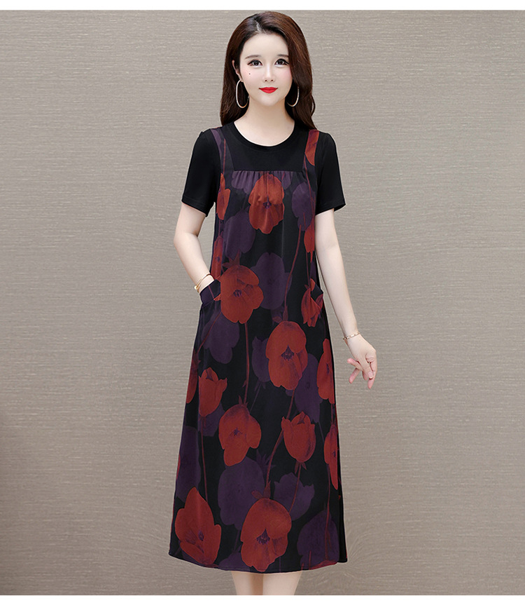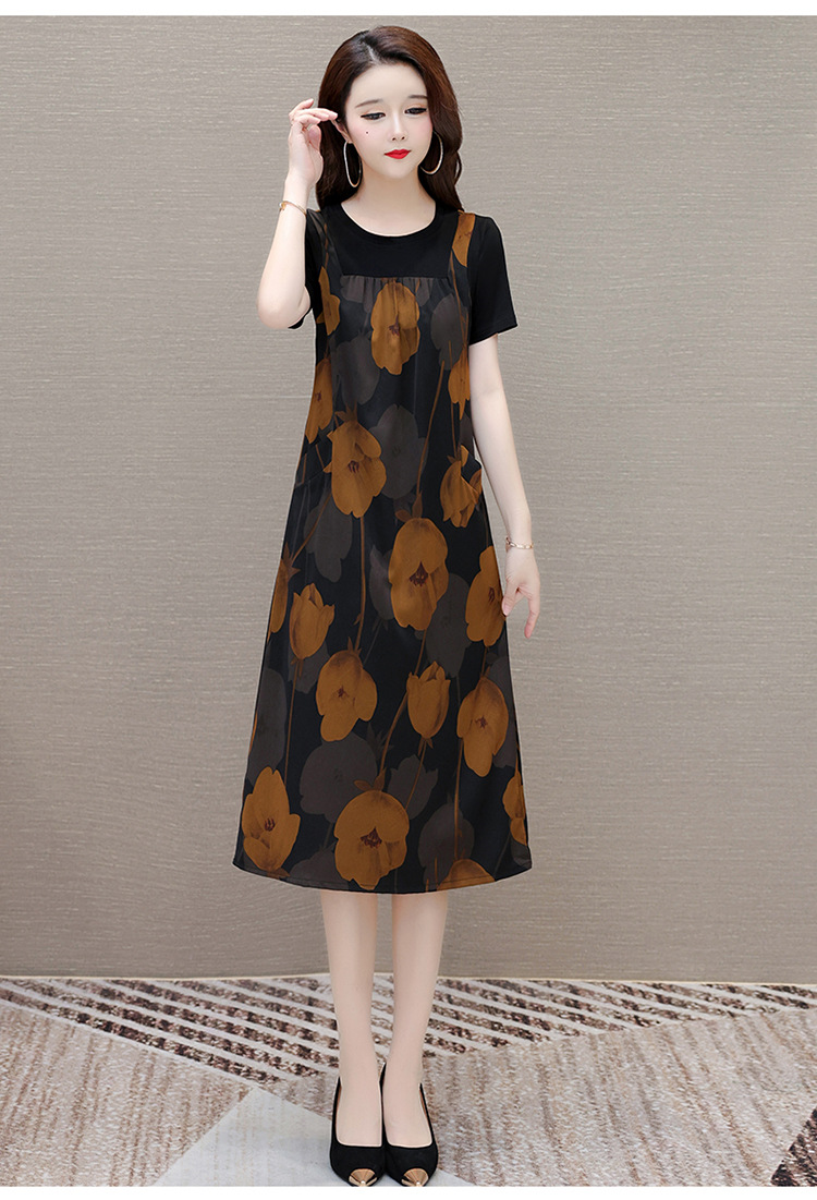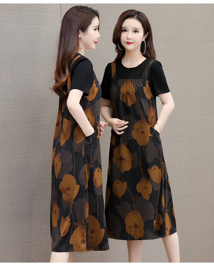 洋气印花中长款,拼结宽松休闲裙QYM- LRX-MJE8846-Y