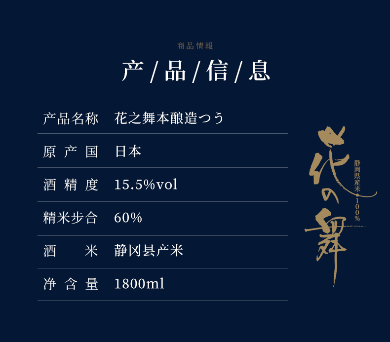 日本花之舞辛口本酿造清酒1800ml/220016 清爽口感甘辛平衡