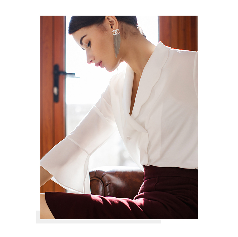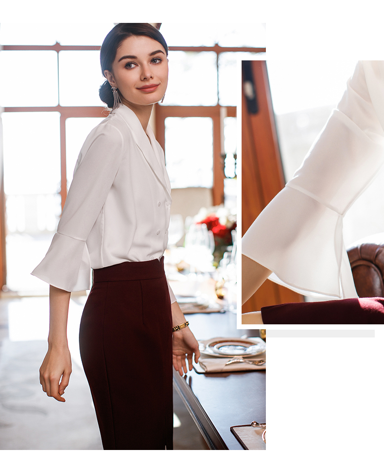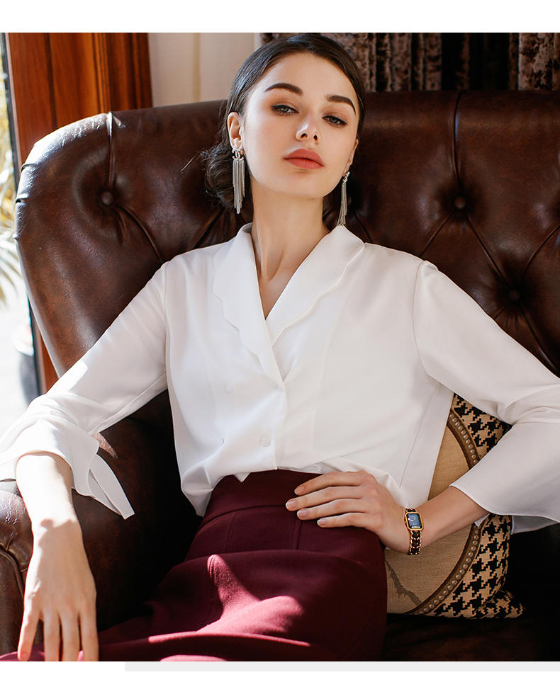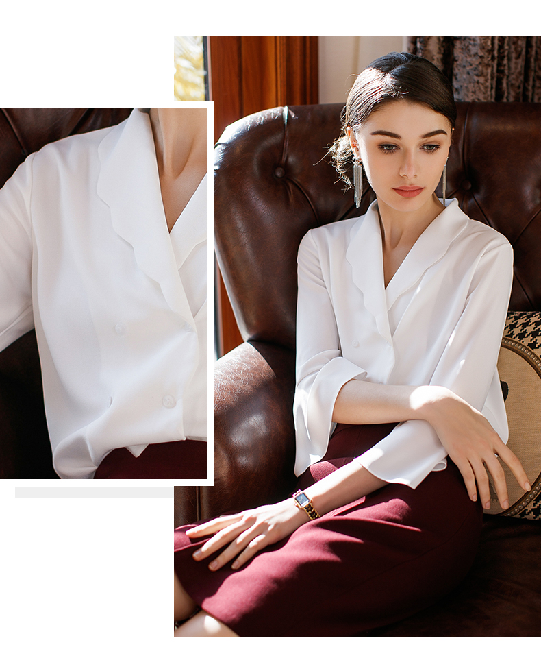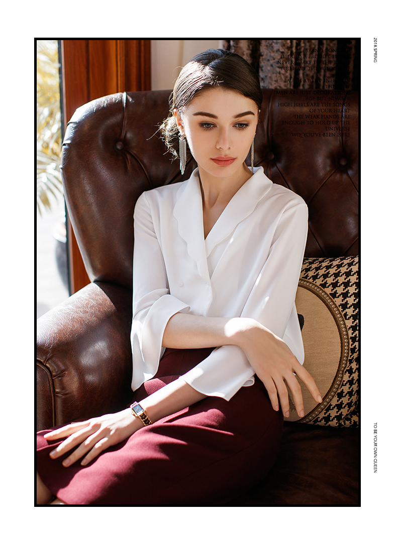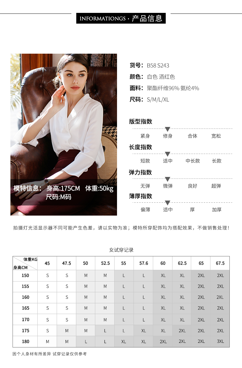 IWY/时尚职业装女式衬衫气质白色V领长袖气质酒红色半裙套装B58+S243
